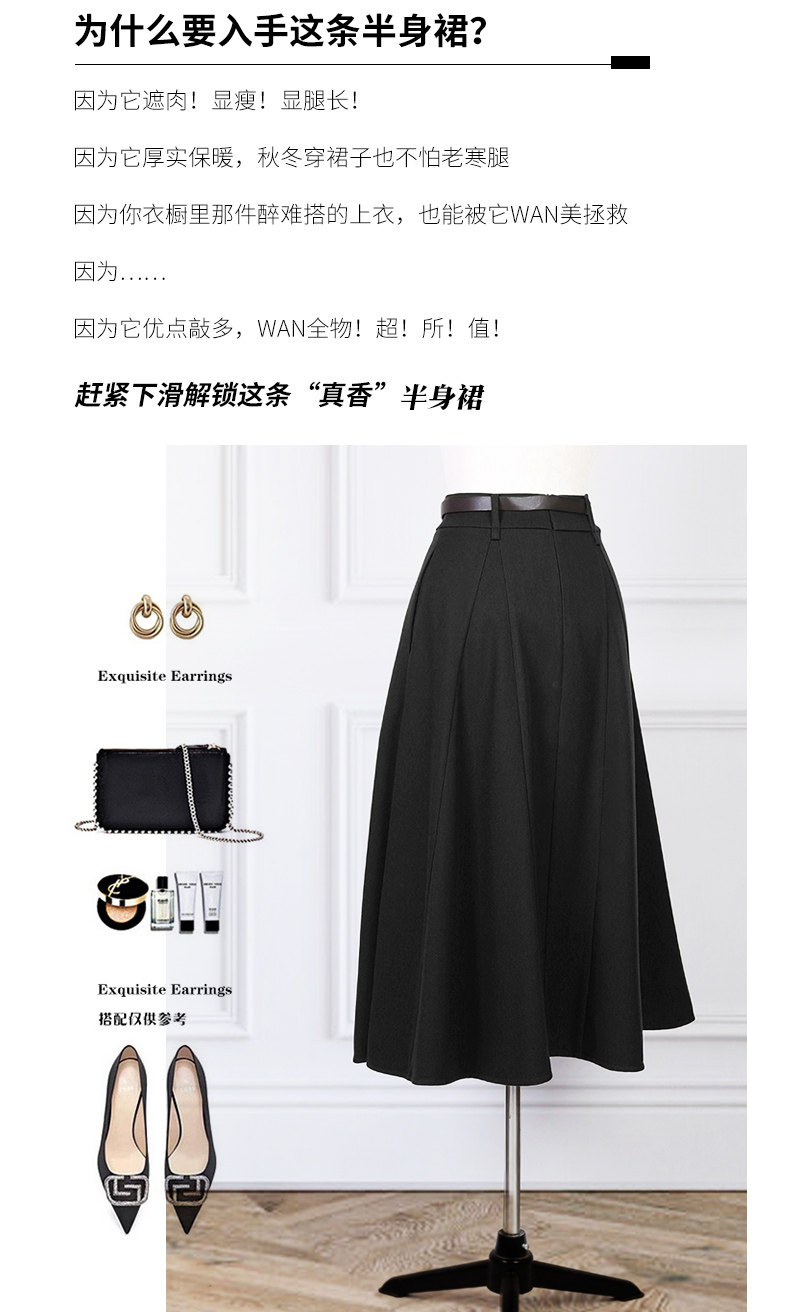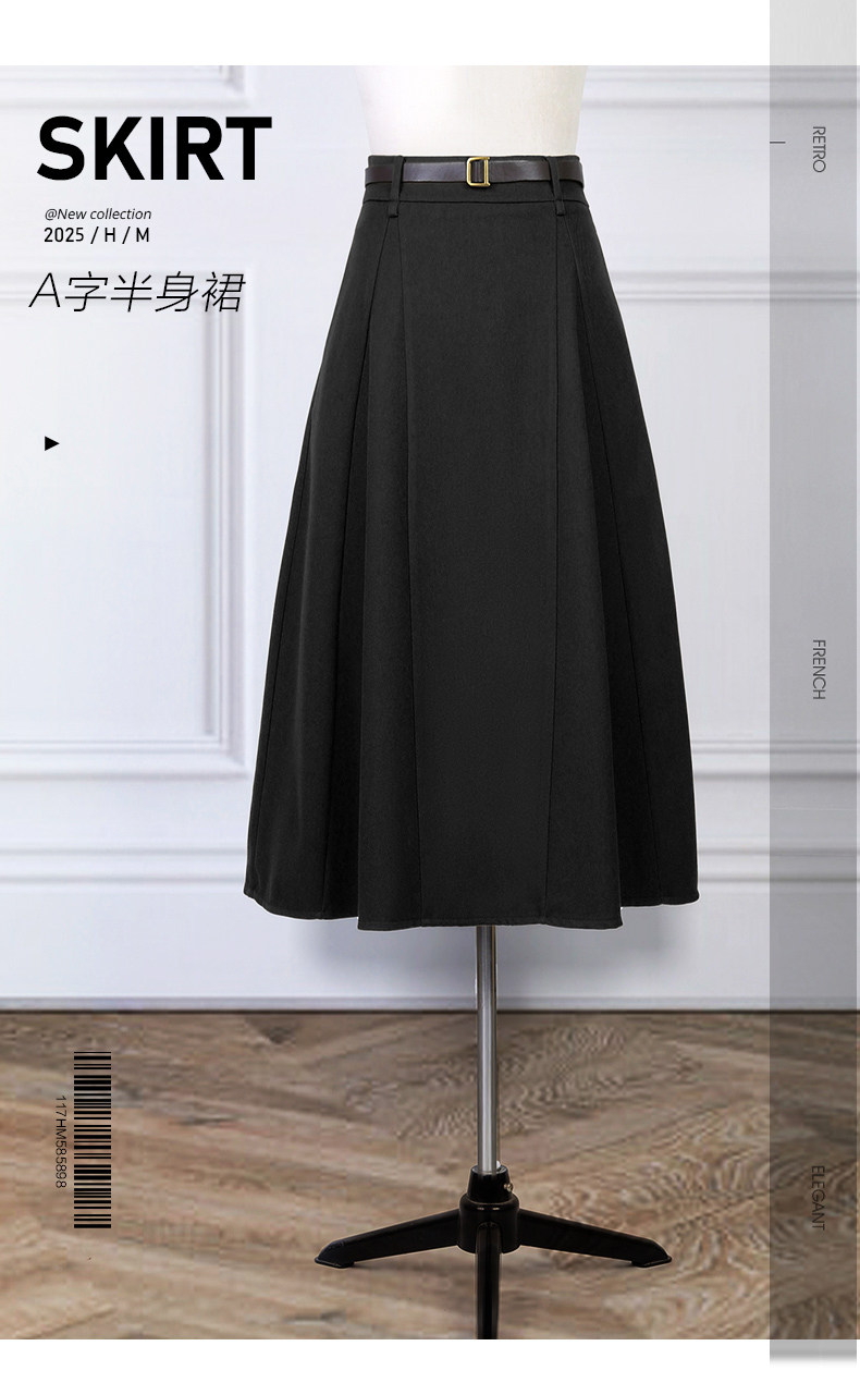 傘裙半身裙女法式赫本風高腰黑色半裙西裝a字遮胯長裙春夏高級感