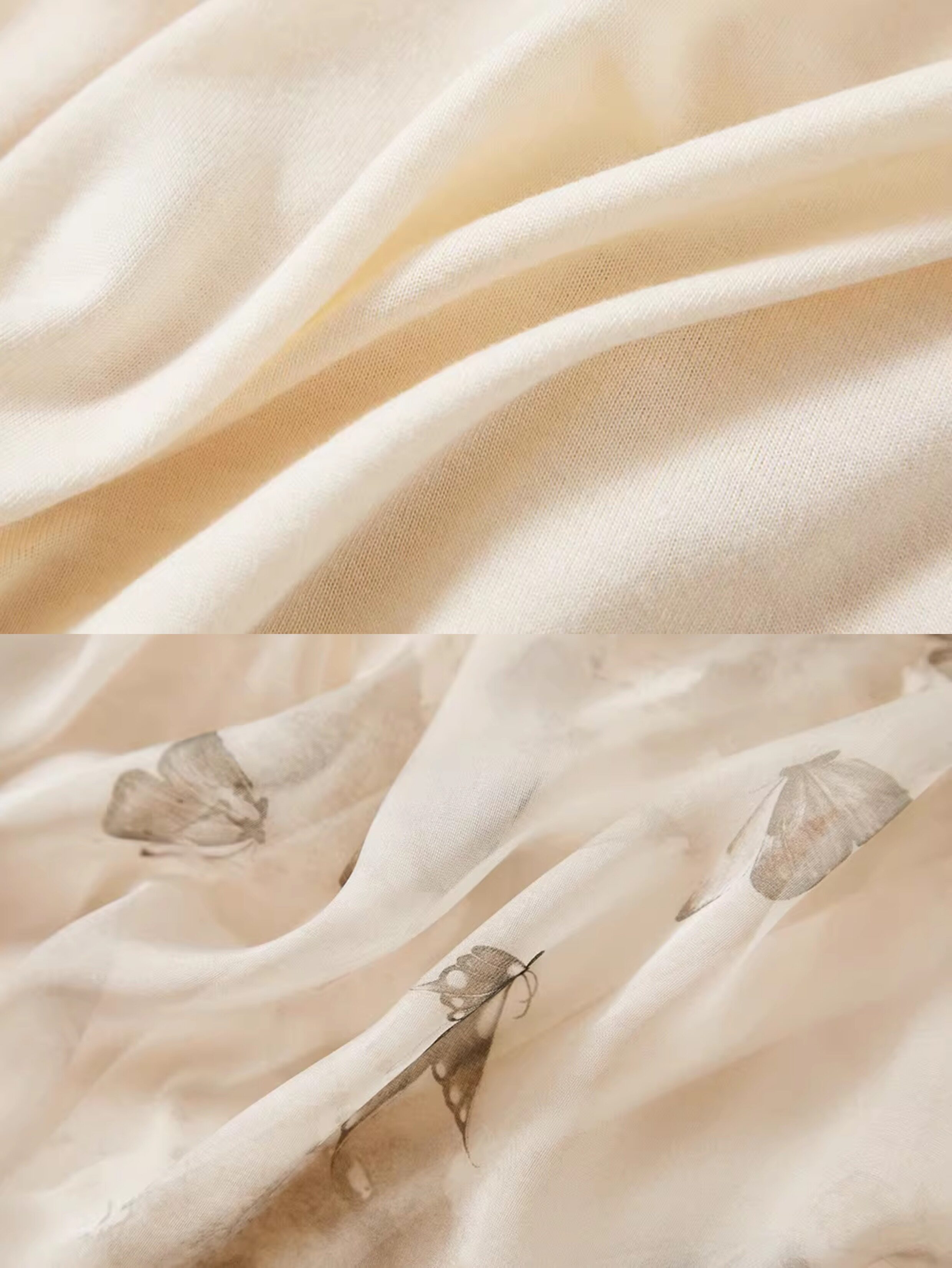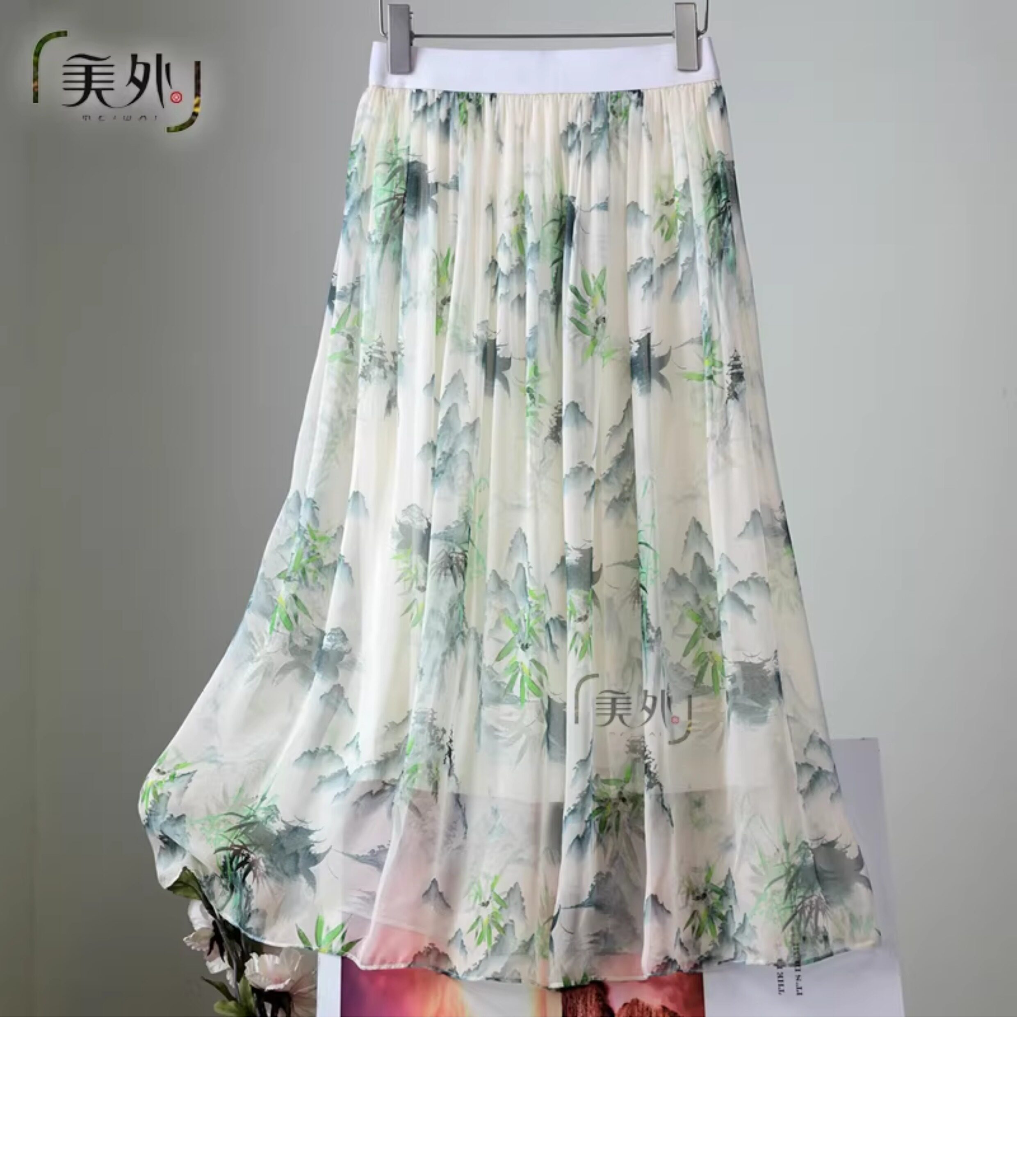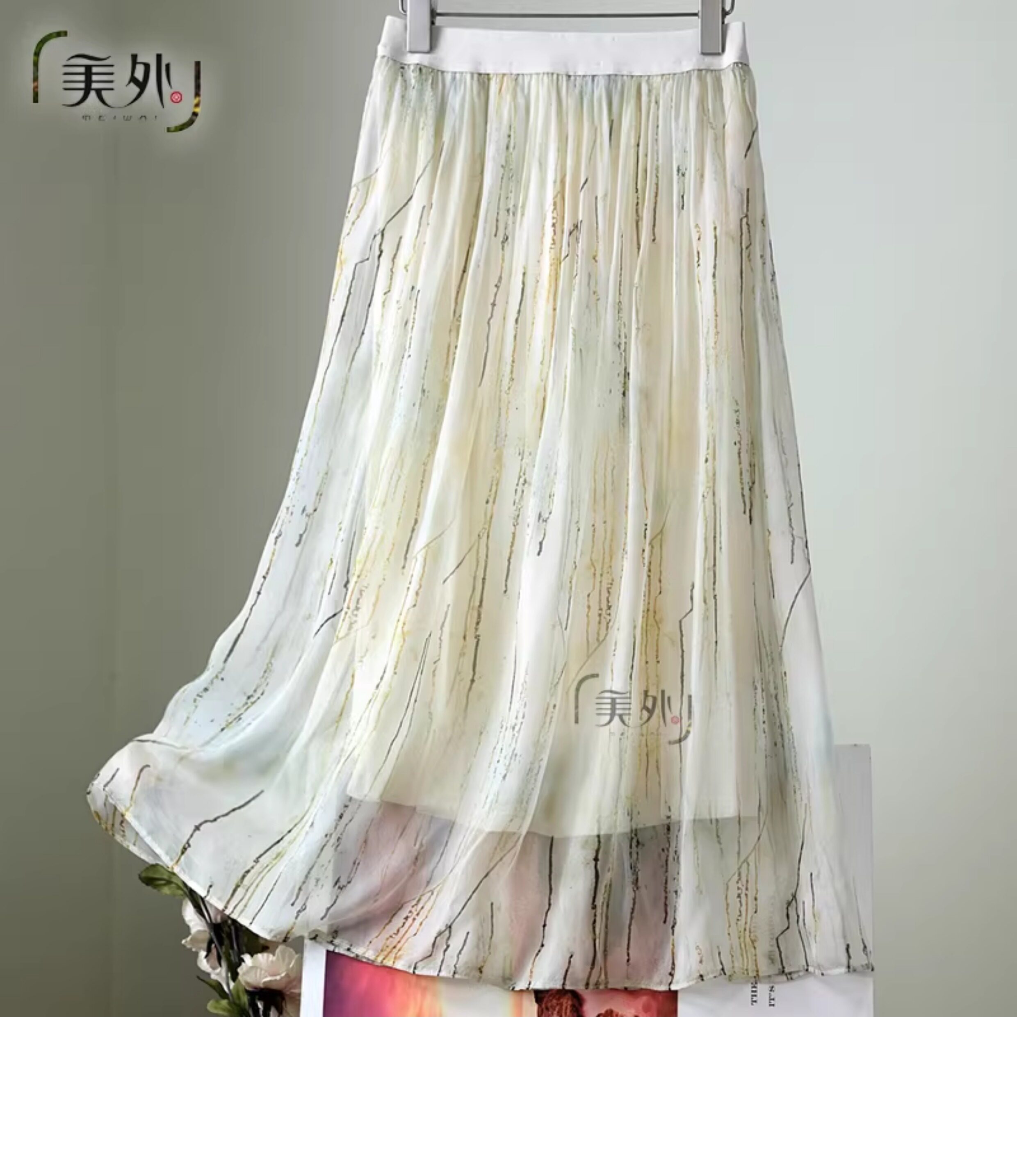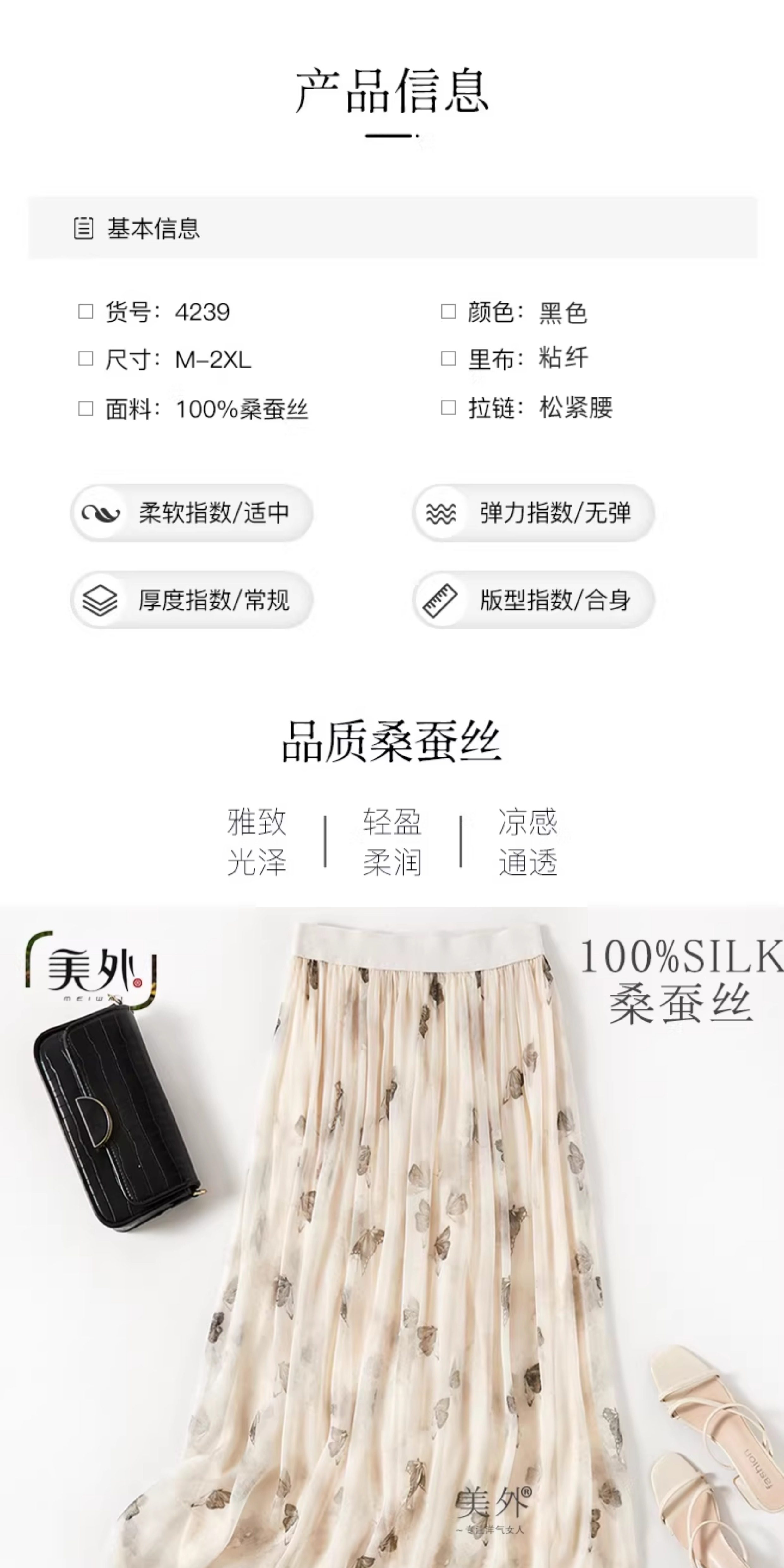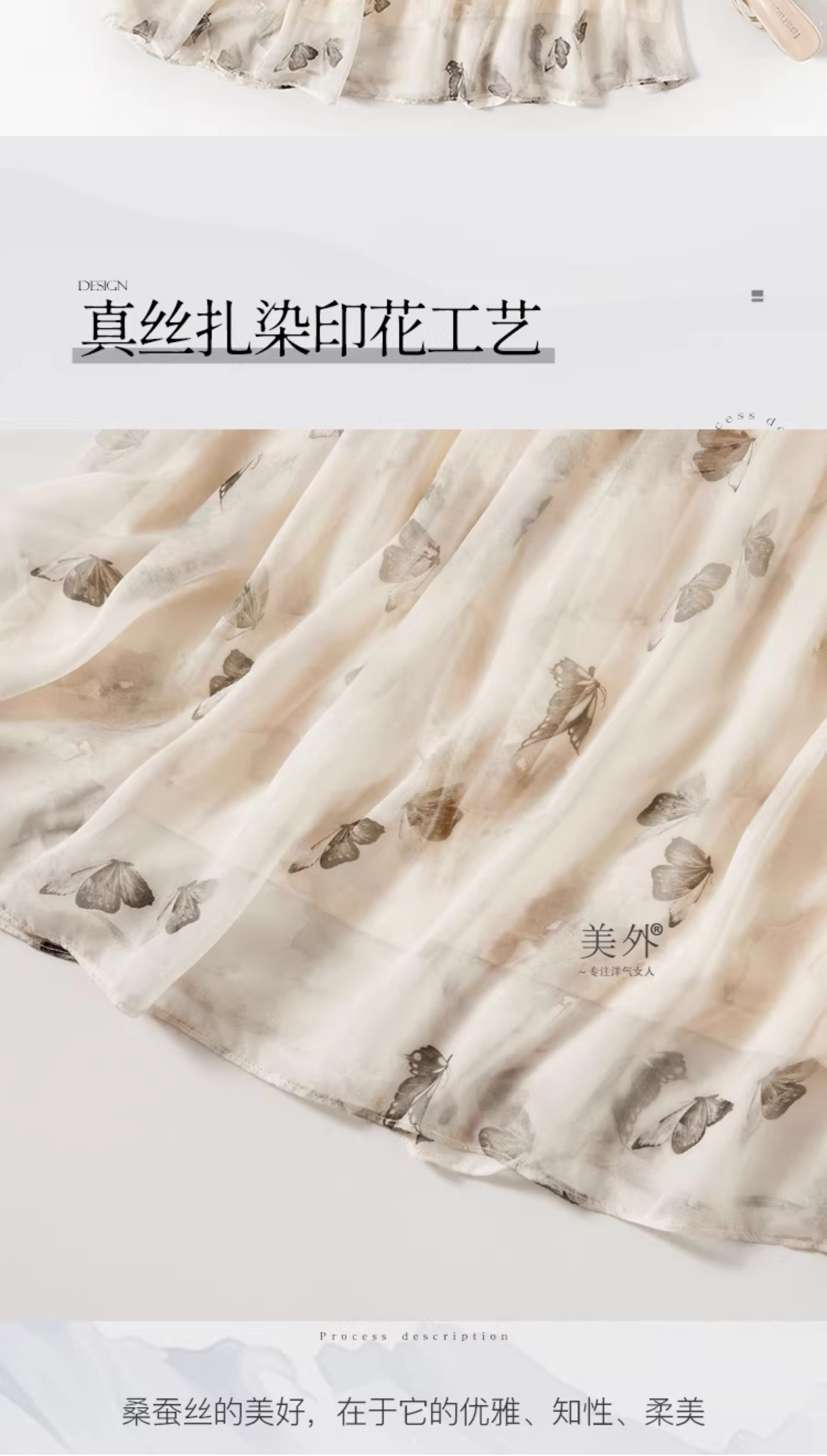新款真絲半身裙女春夏季蝴蝶碎花高腰顯瘦遮肉桑蠶絲中長A字裙