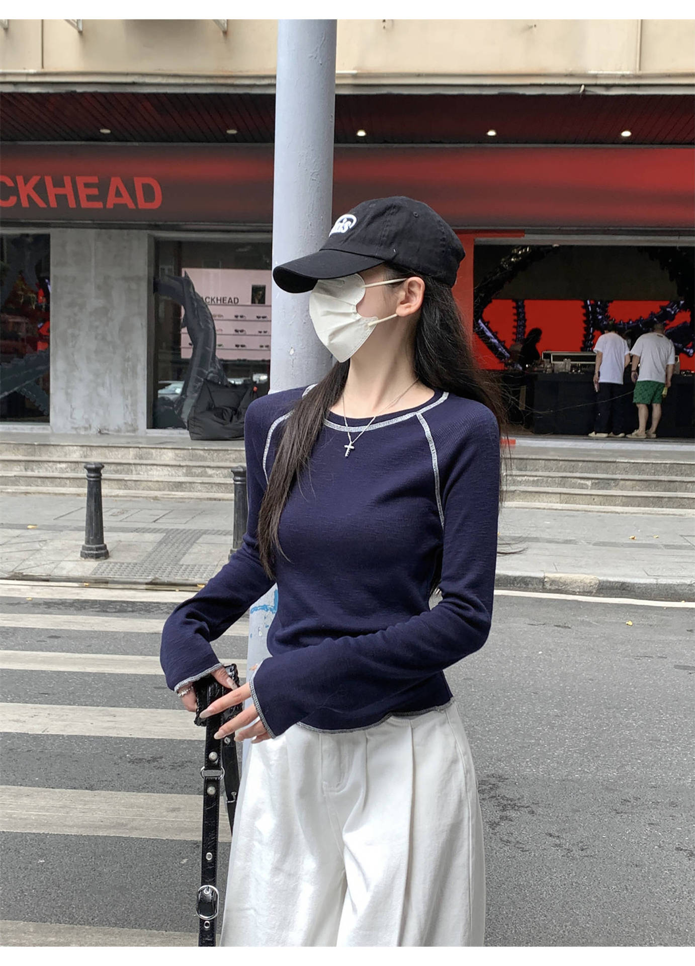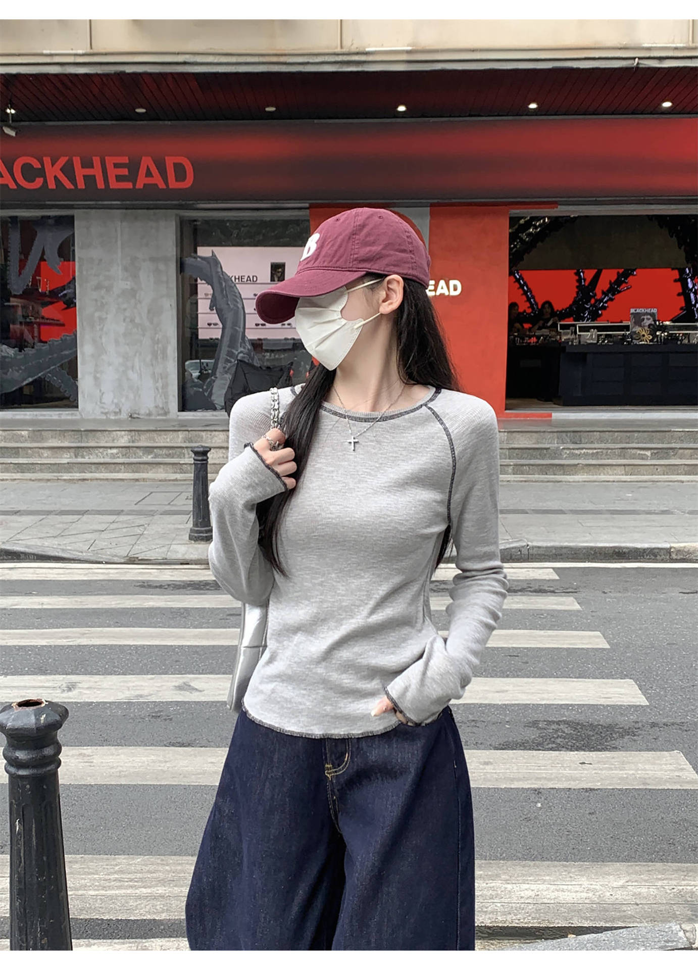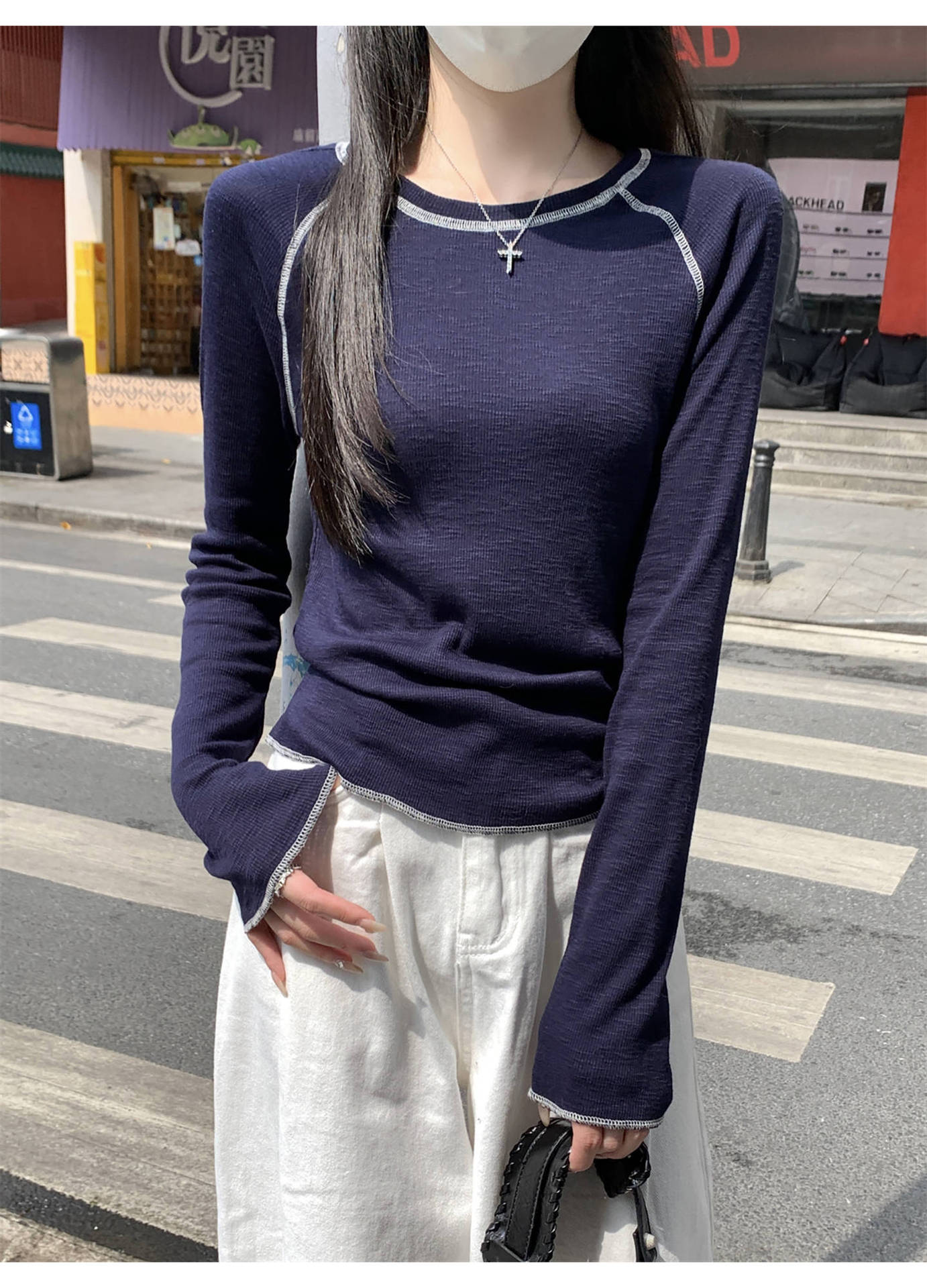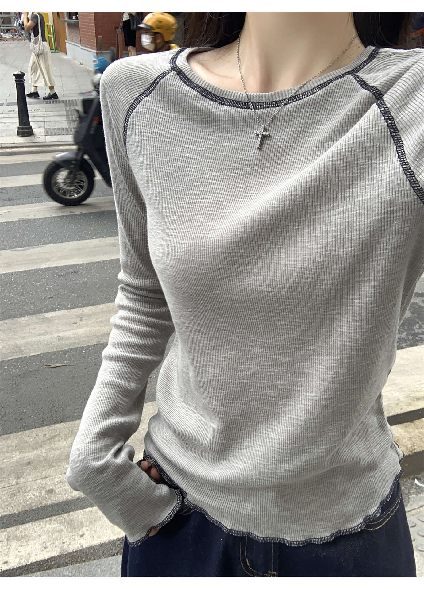 韓版氣質修身圓領插肩反線設計感長袖T恤女春秋季2025打底衫上衣