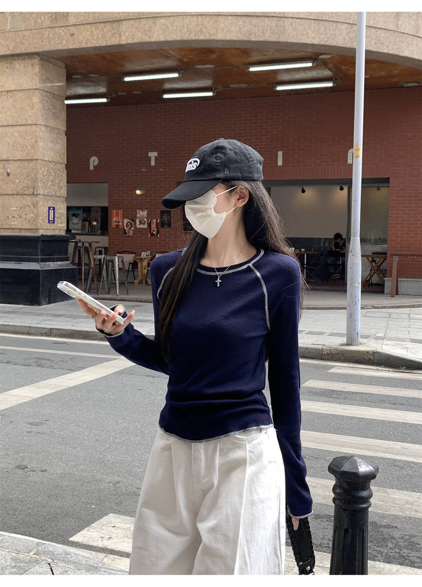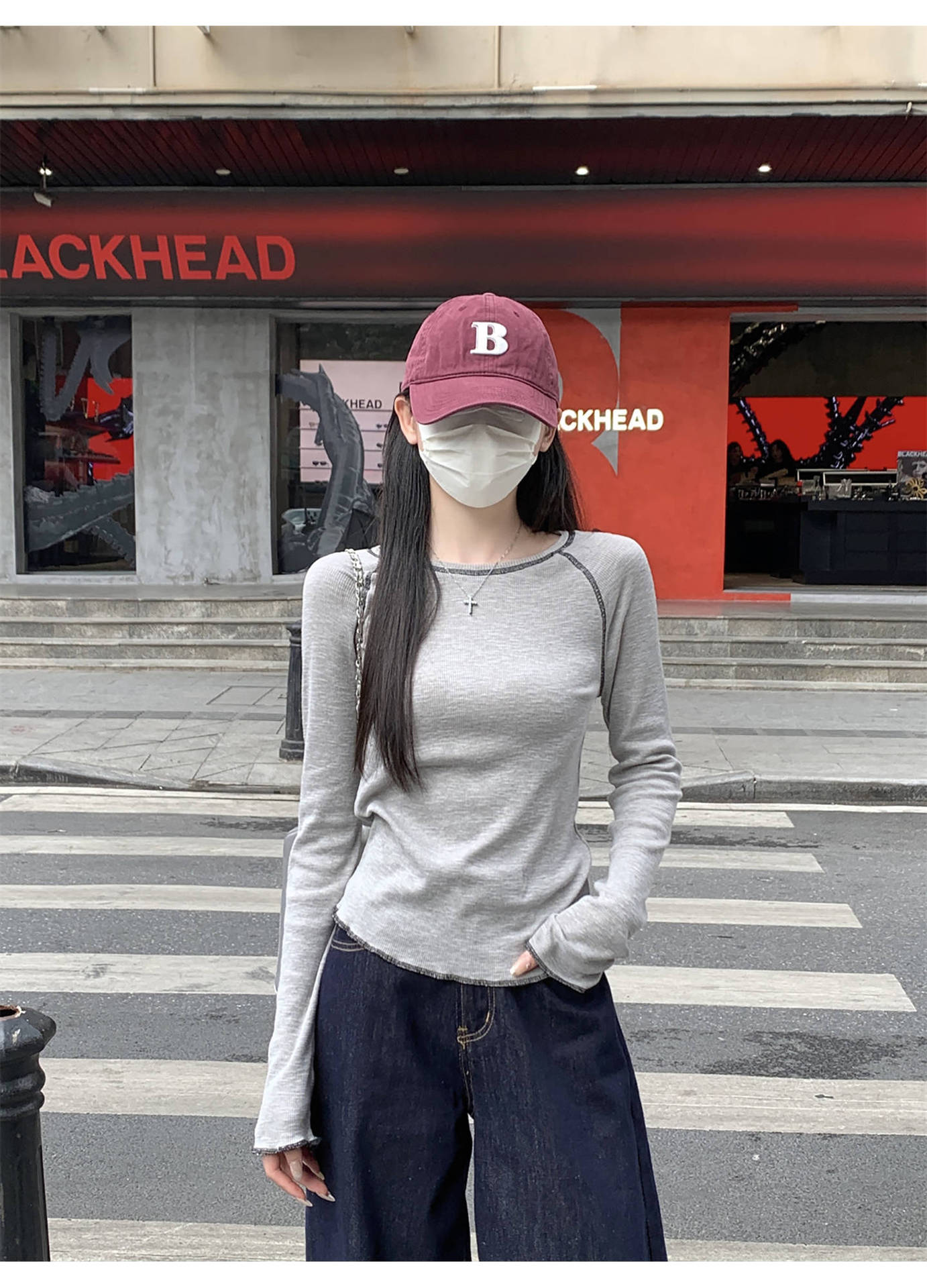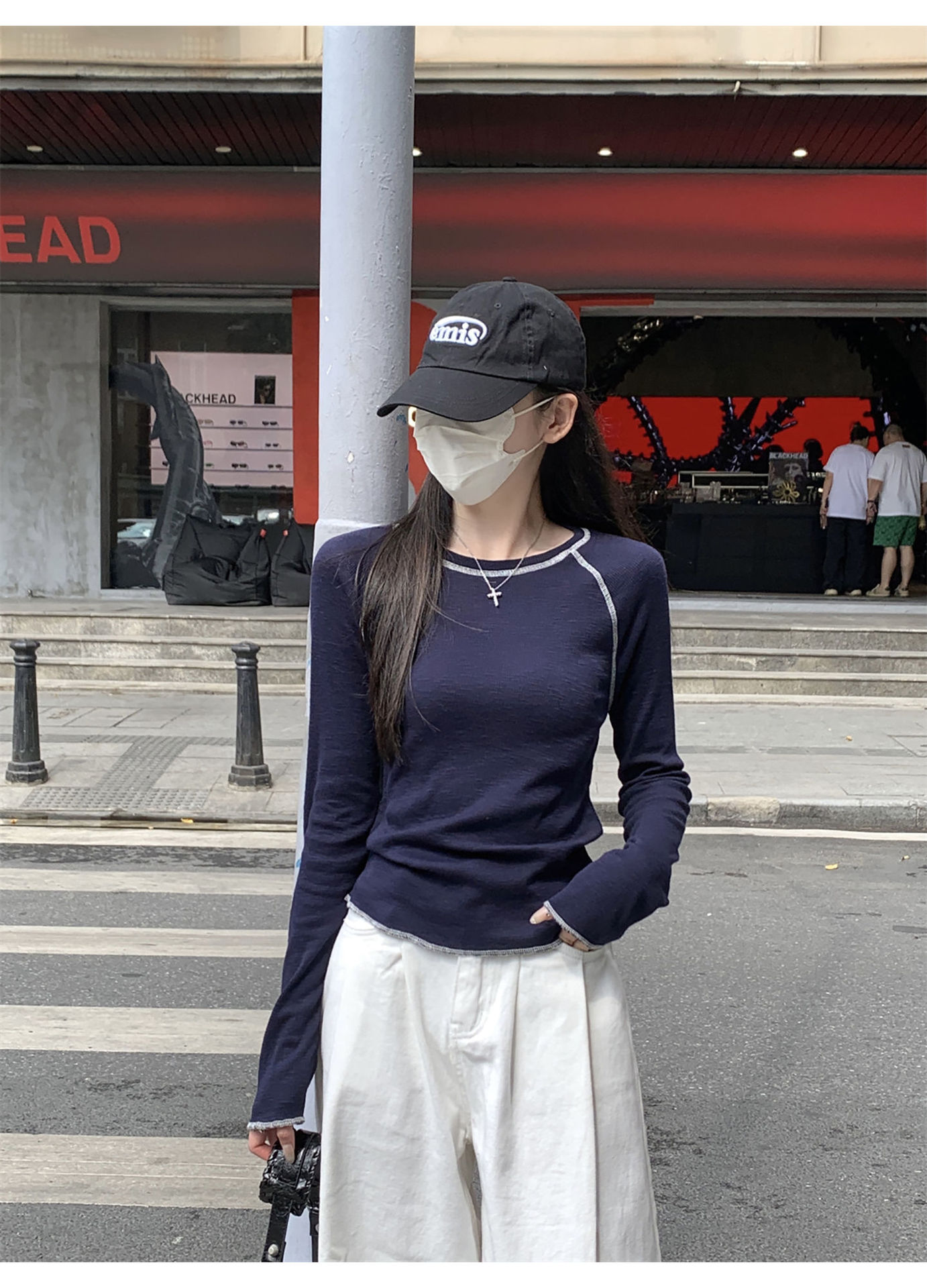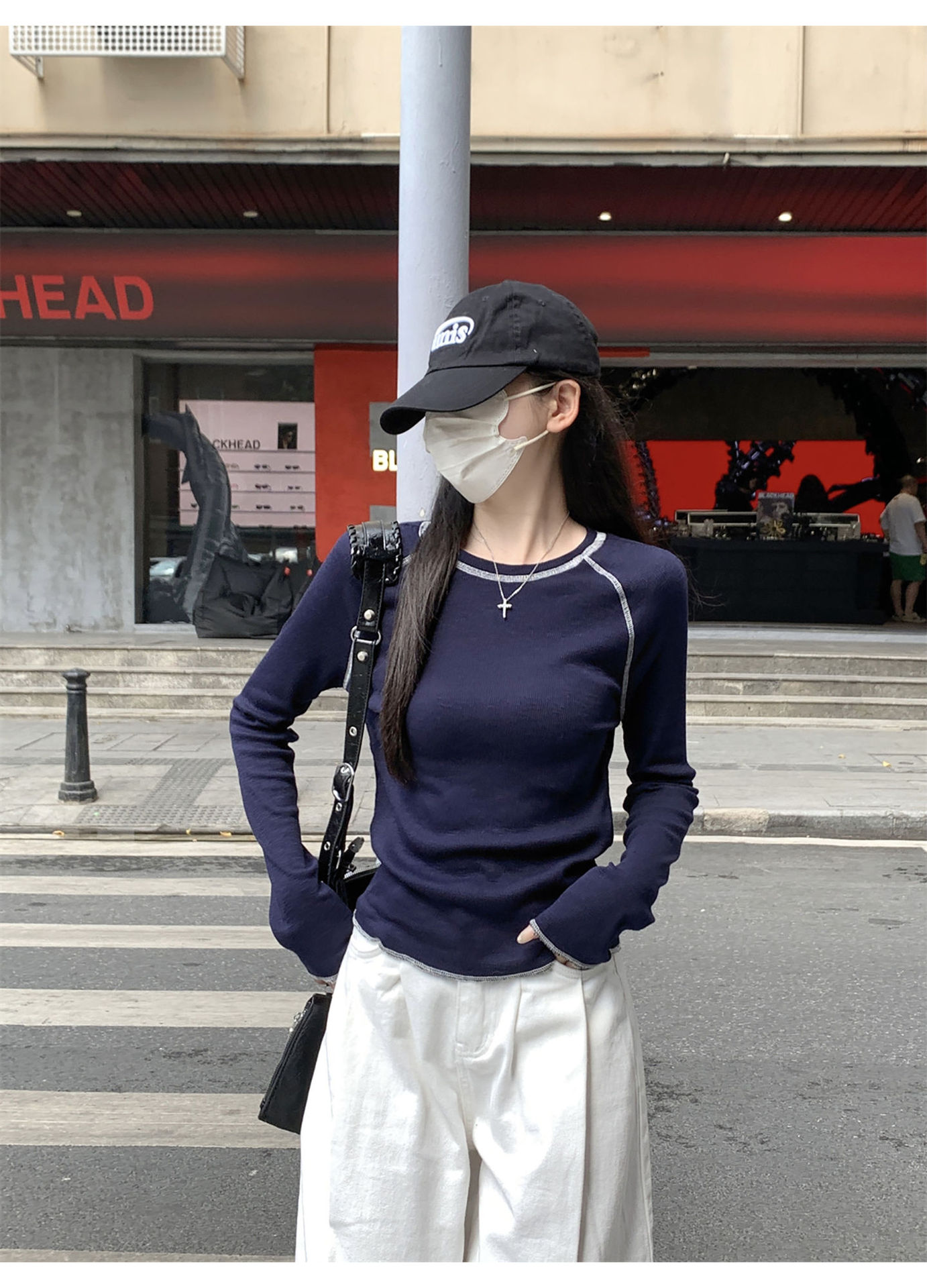 韓版氣質修身圓領插肩反線設計感長袖T恤女春秋季2025打底衫上衣