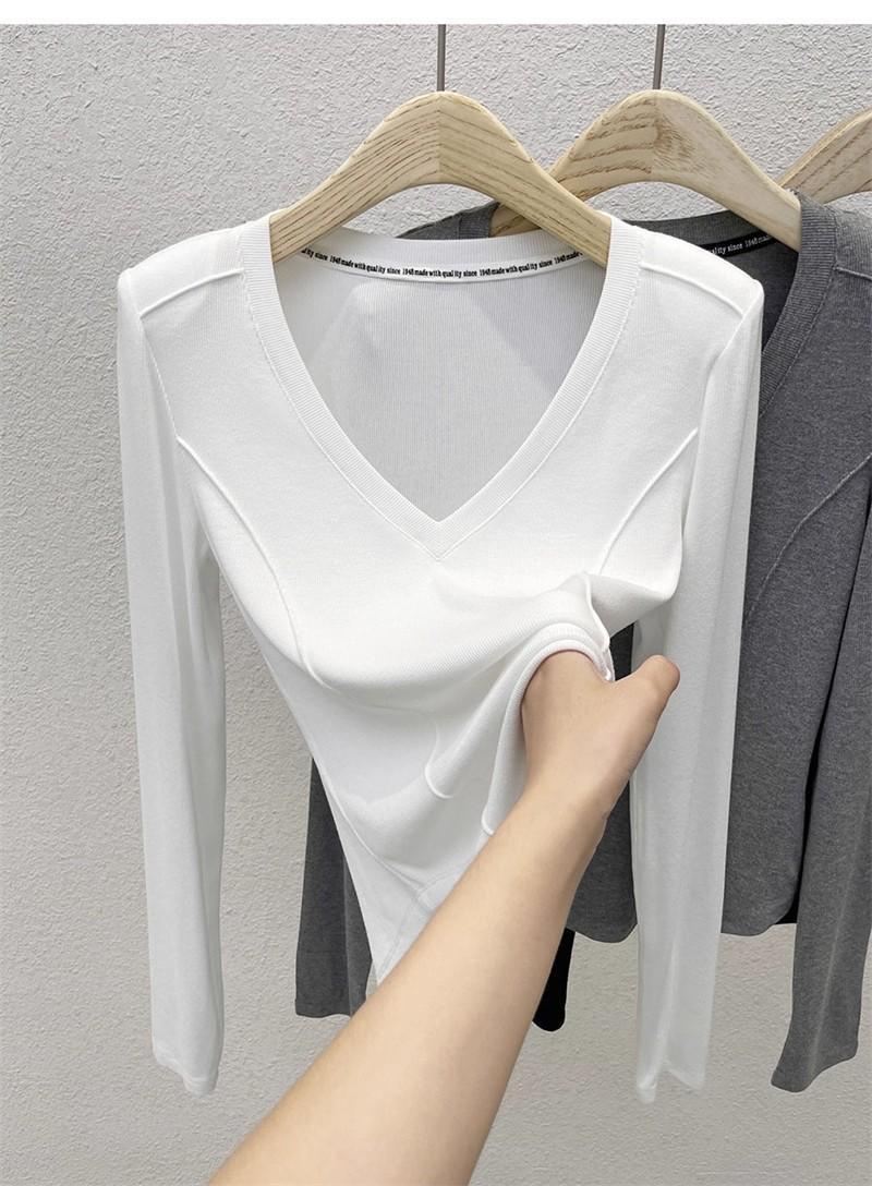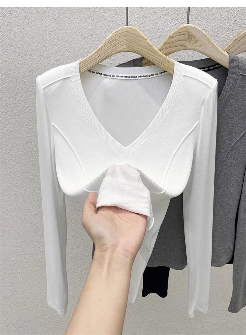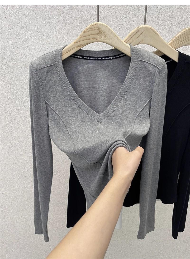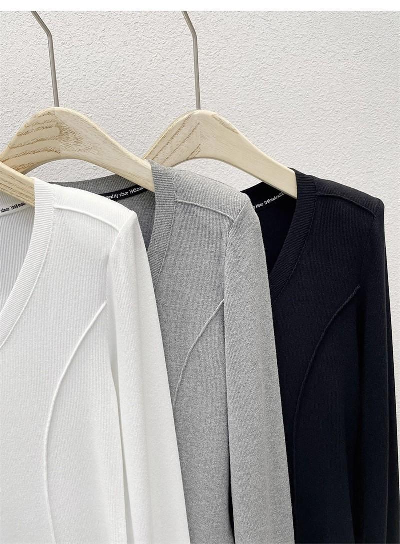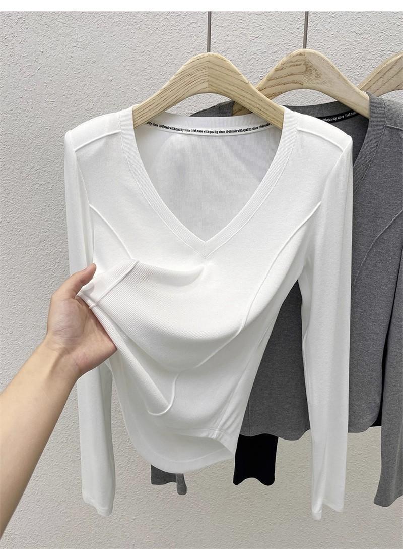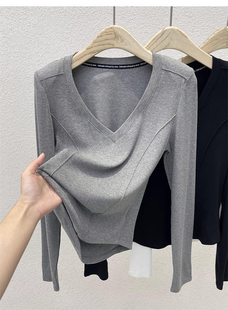 秋冬款v領設計領純棉長袖t恤女早秋寬松休閒百搭防曬罩衫打底上衣