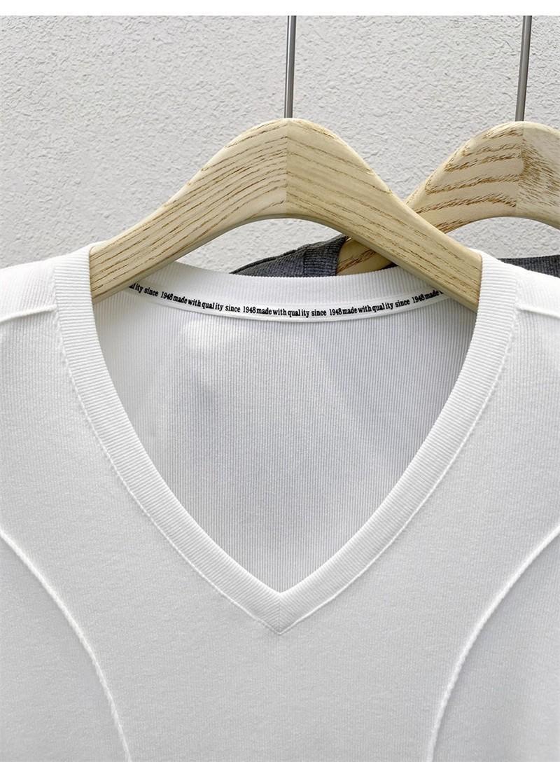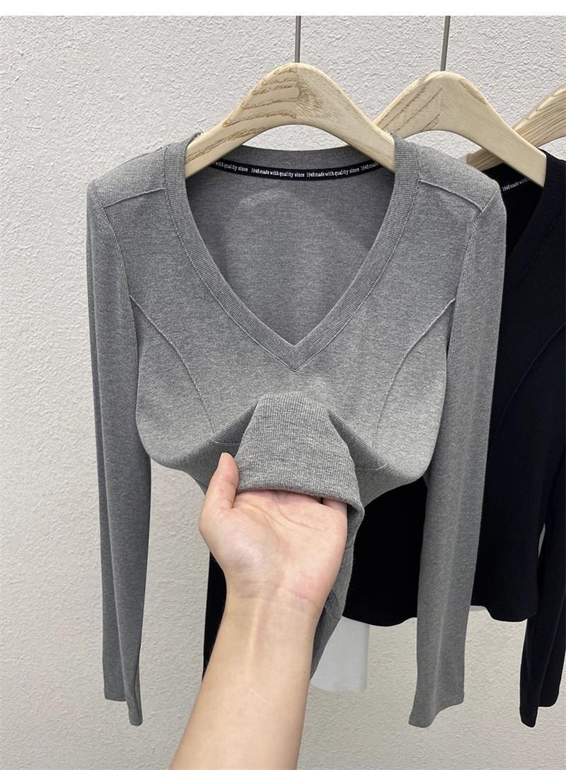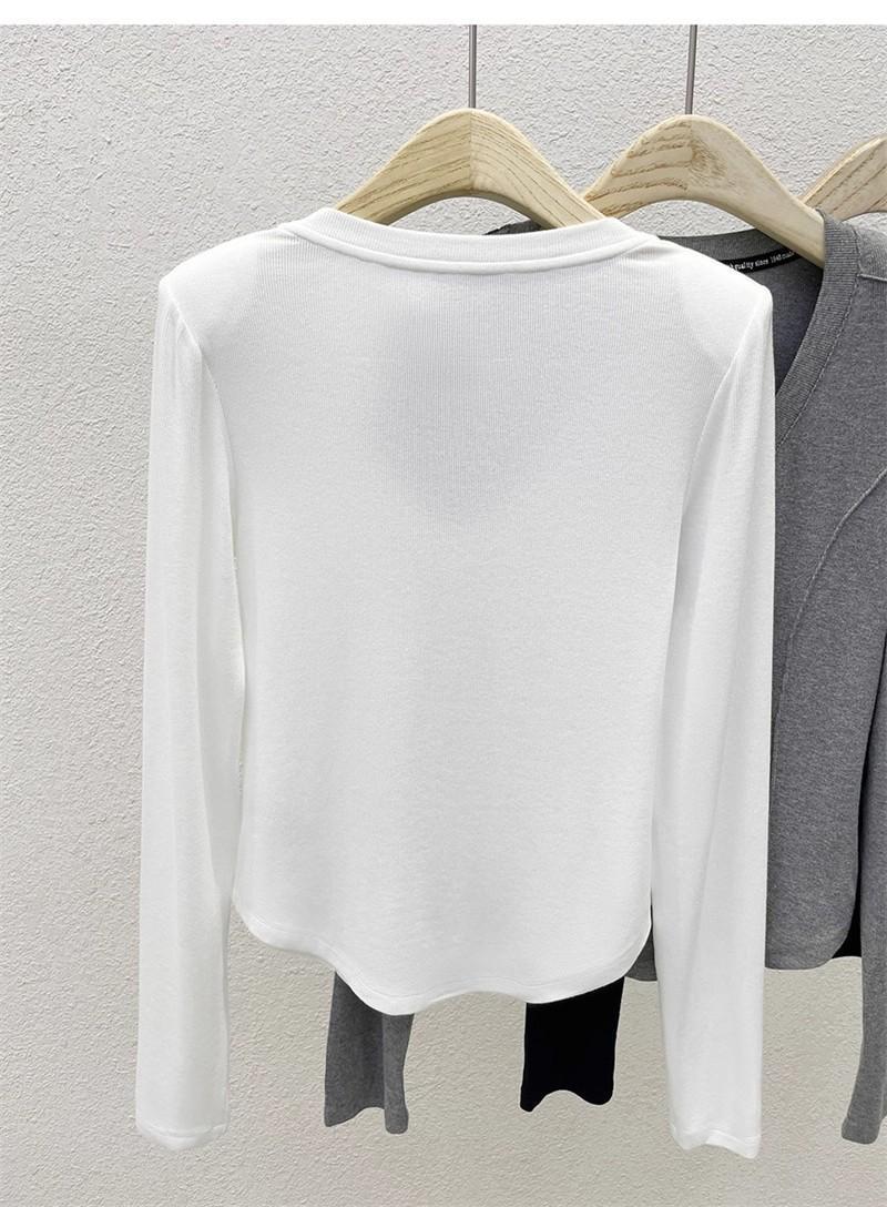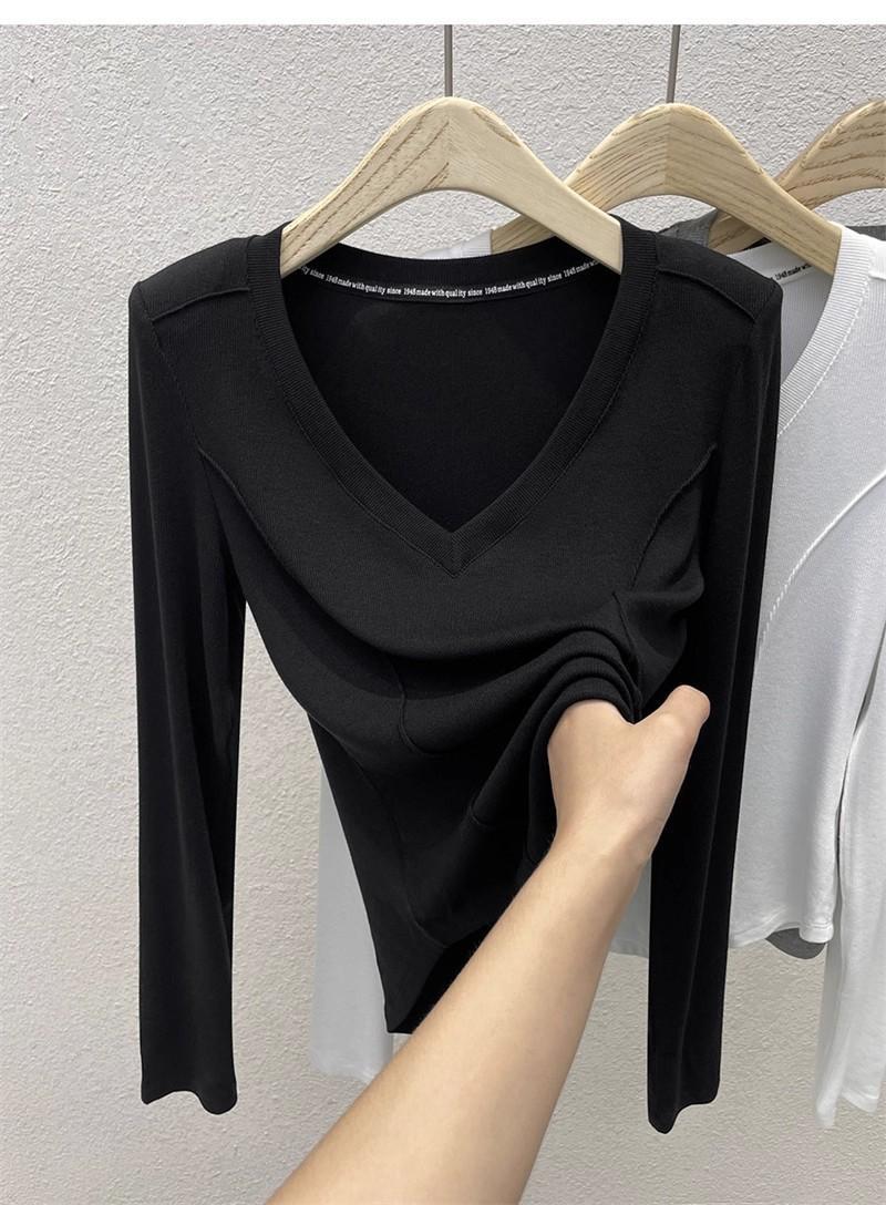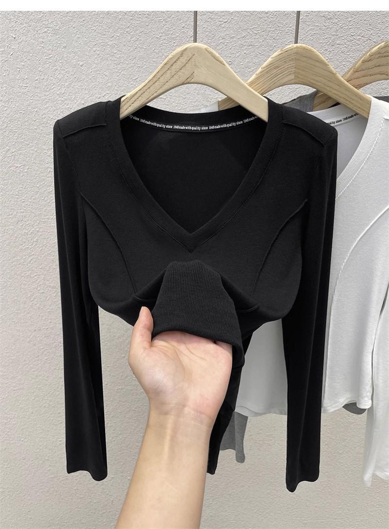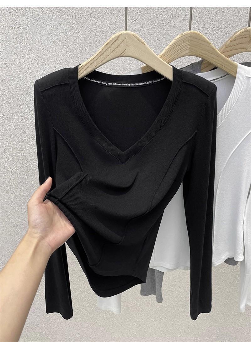 秋冬款v領設計領純棉長袖t恤女早秋寬松休閒百搭防曬罩衫打底上衣