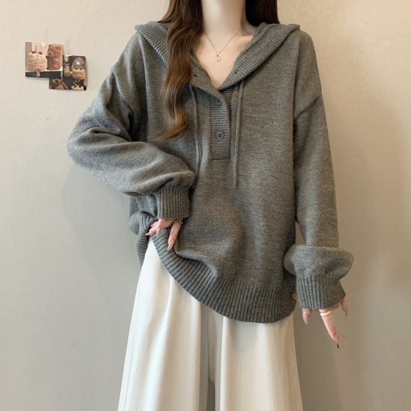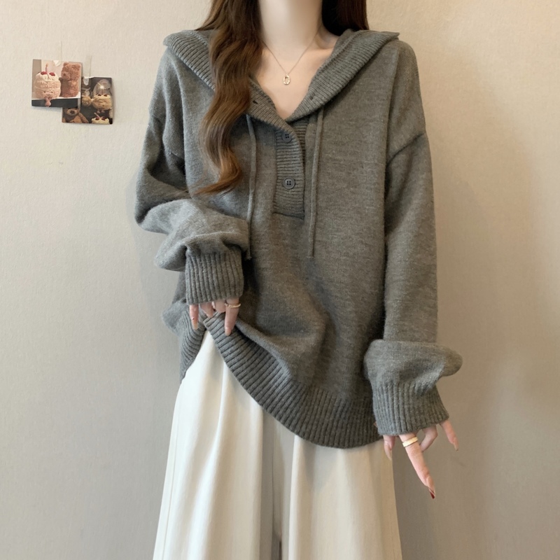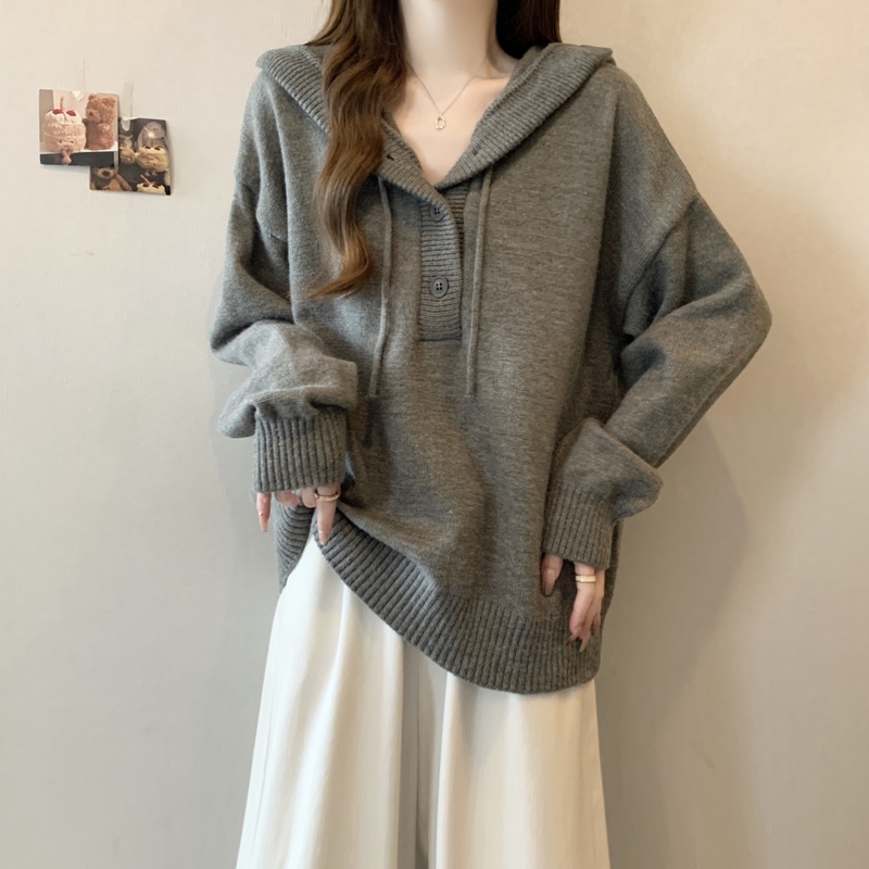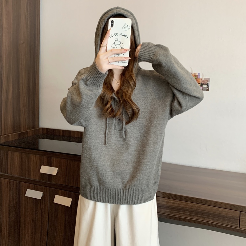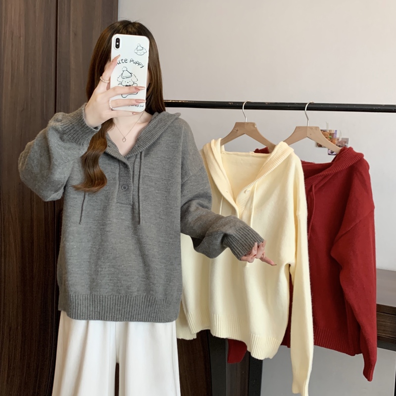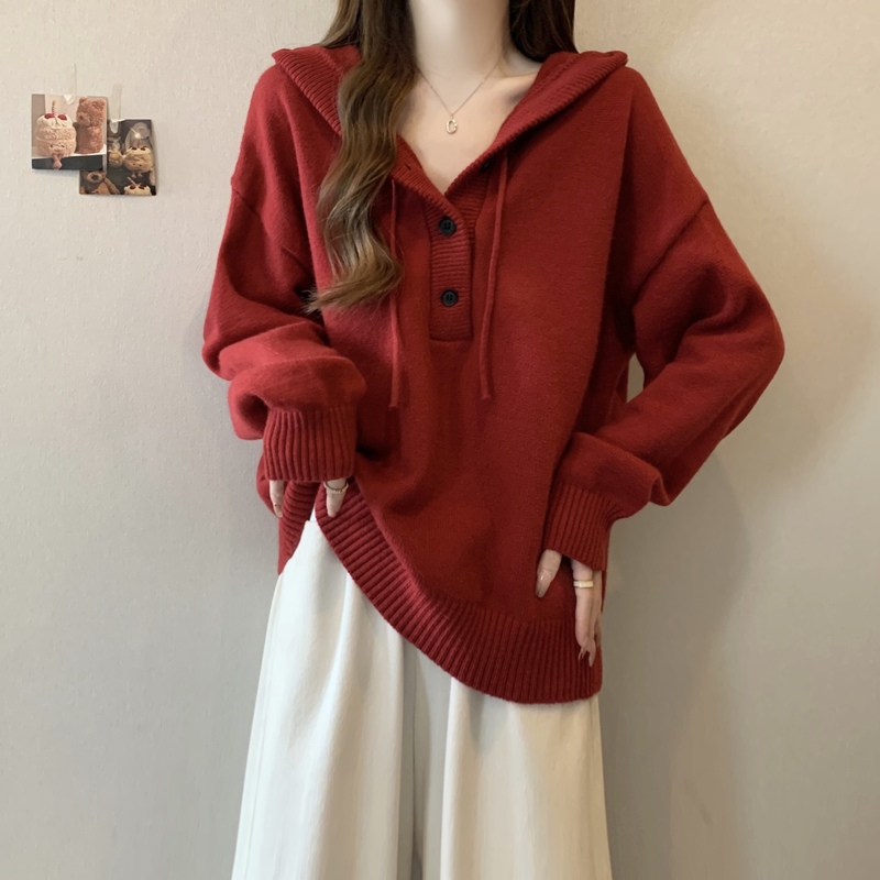 新年聖誕紅色加厚慵懶風連帽針織毛衣女大碼寬松顯瘦衛衣上衣外套