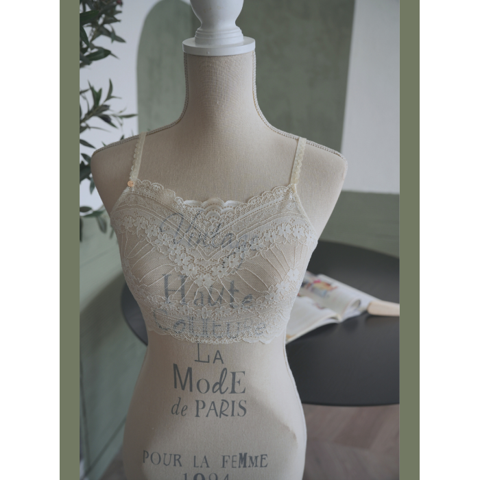 美出新高度~~淡米色蕾絲防走光吊帶抹胸輕薄背心別致浪漫田園復古