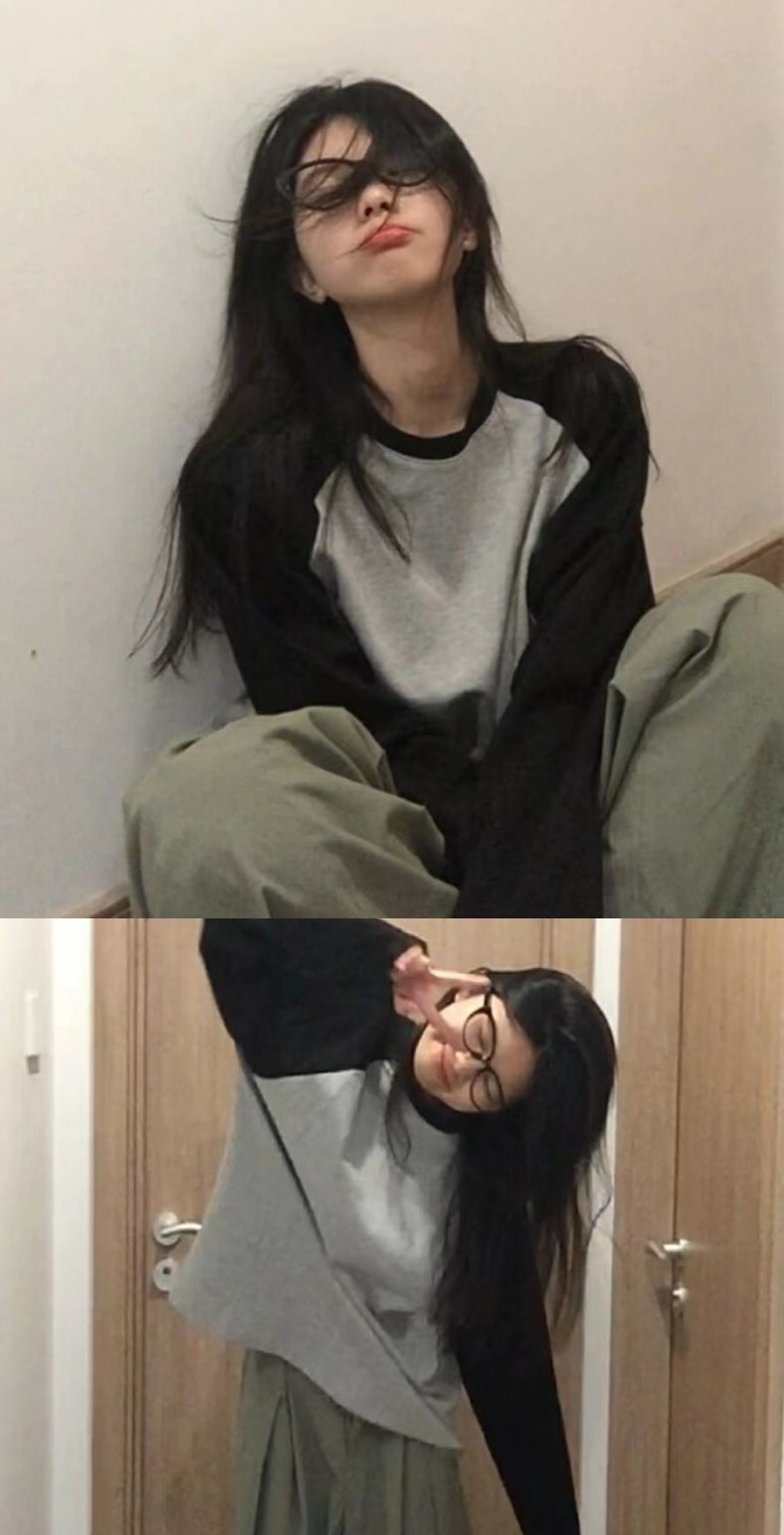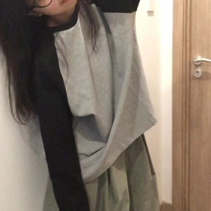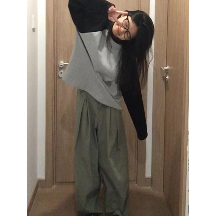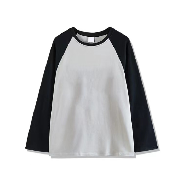 美式復古黑灰色插肩撞色長袖t恤女裝春秋季2025新款內搭寬松上衣