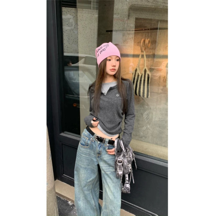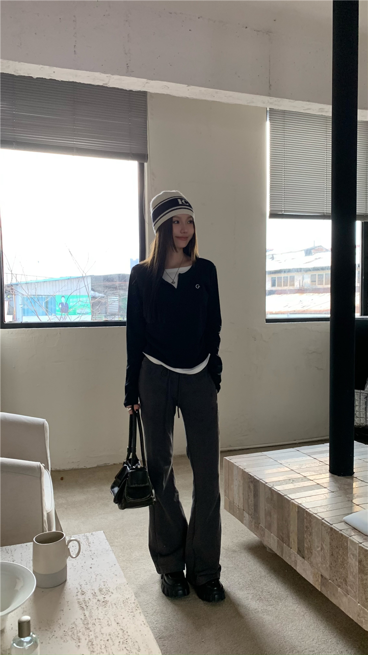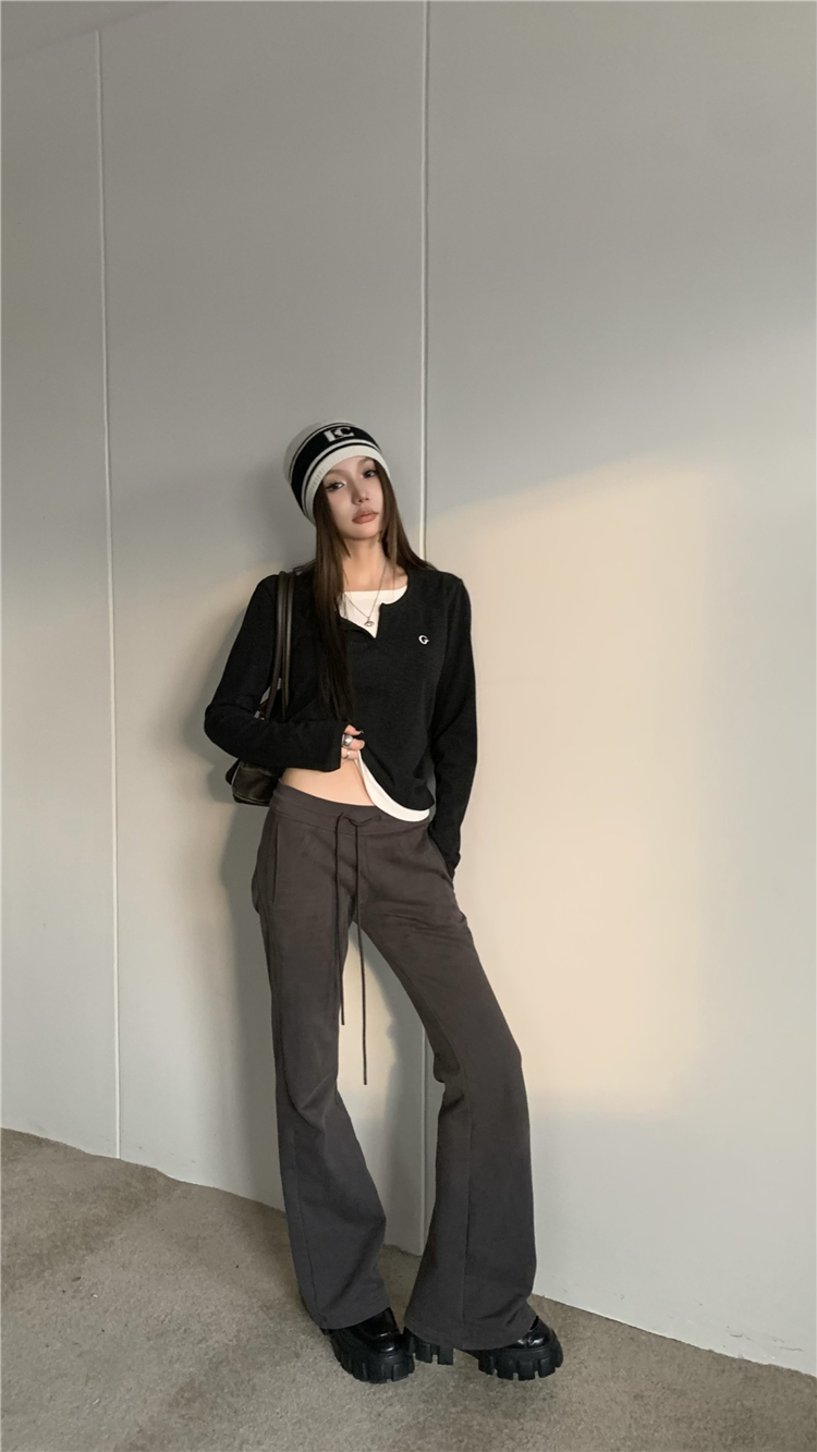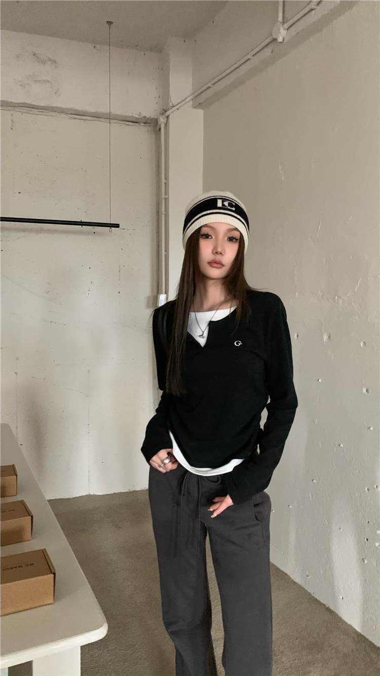 PPHOME甜欲學姐~假兩件設計百搭長袖T恤秋冬內搭修身顯瘦打底上衣