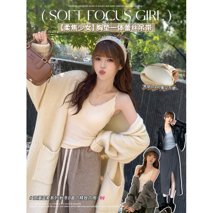 蘇三三蕾絲吊帶帶胸墊女內搭v領白色打底背心2025新款外穿小上衣