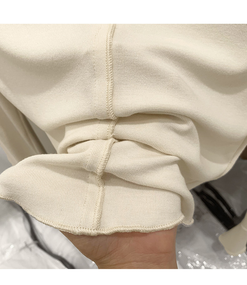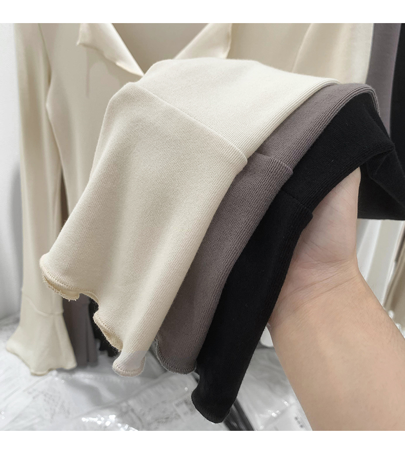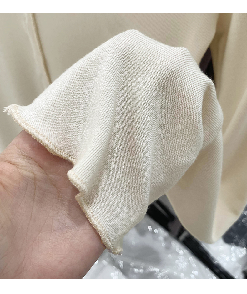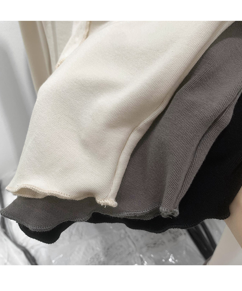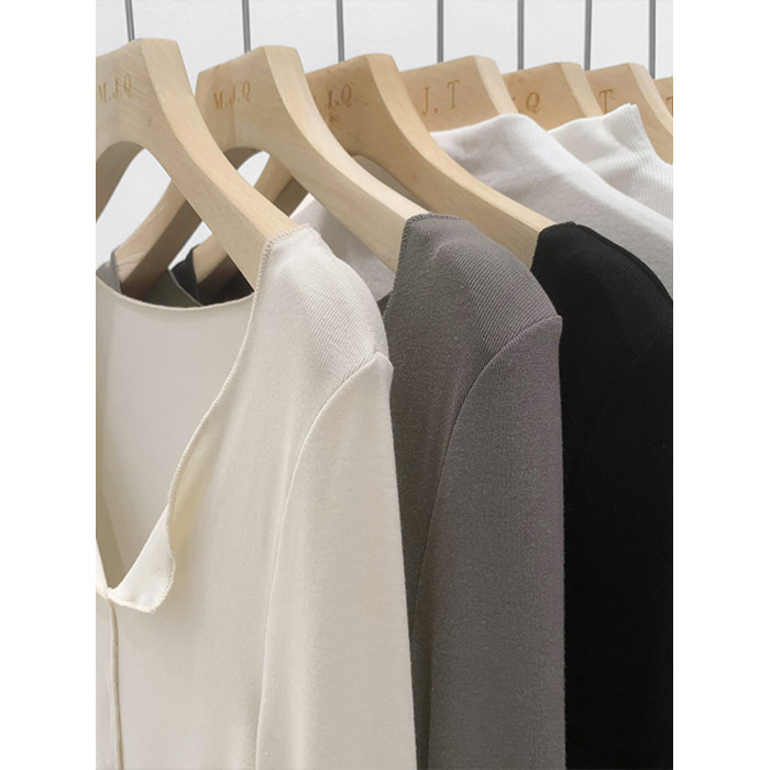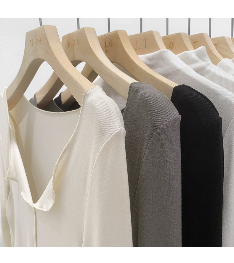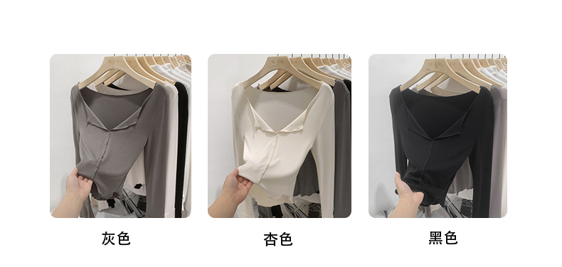 軟糯V領純欲正肩長袖t恤女春秋修身甜辣風chic木耳邊開叉白色上衣