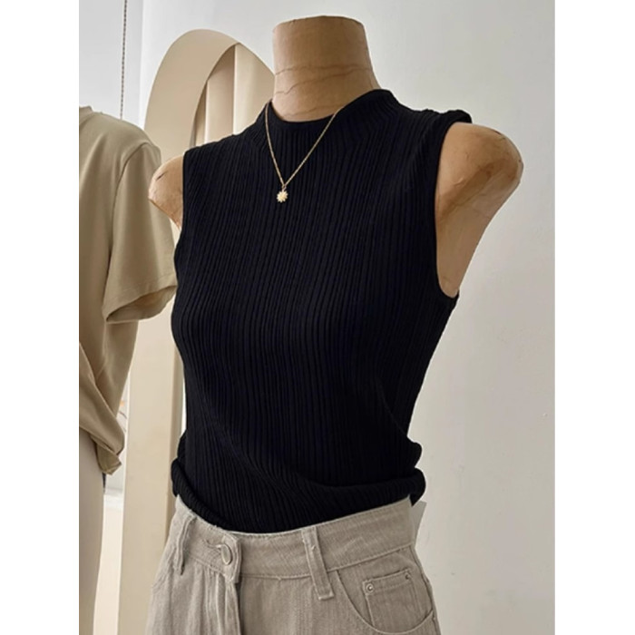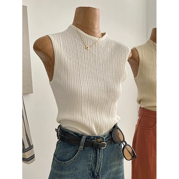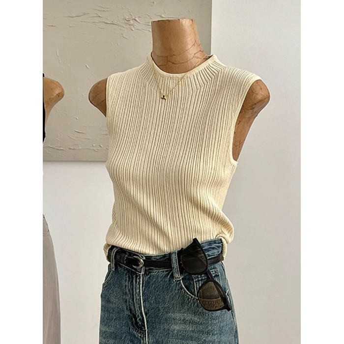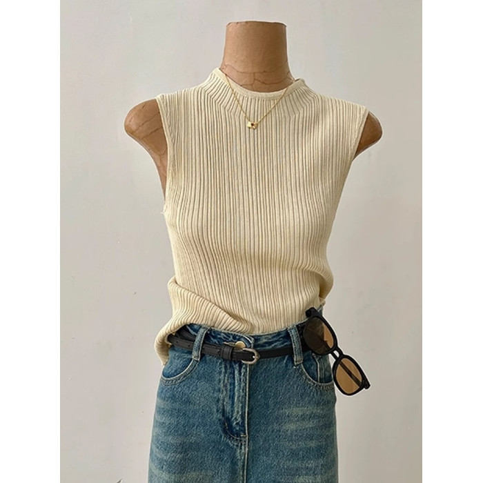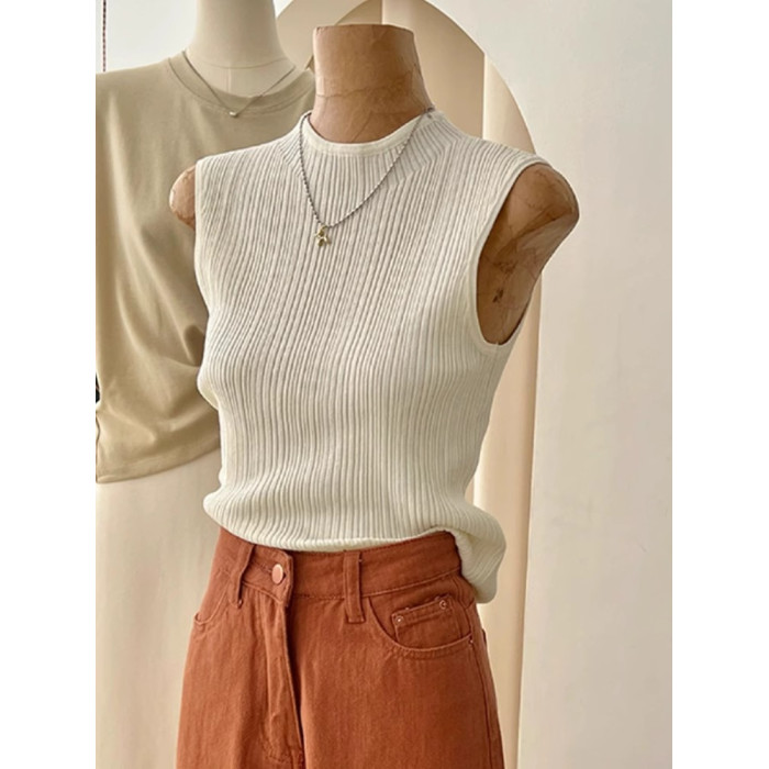 法式高級感冰絲針織背心女夏季薄款修身顯瘦西裝內搭打底無袖上衣