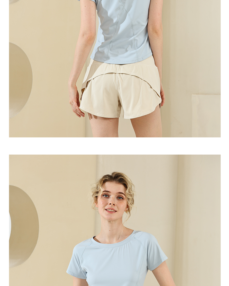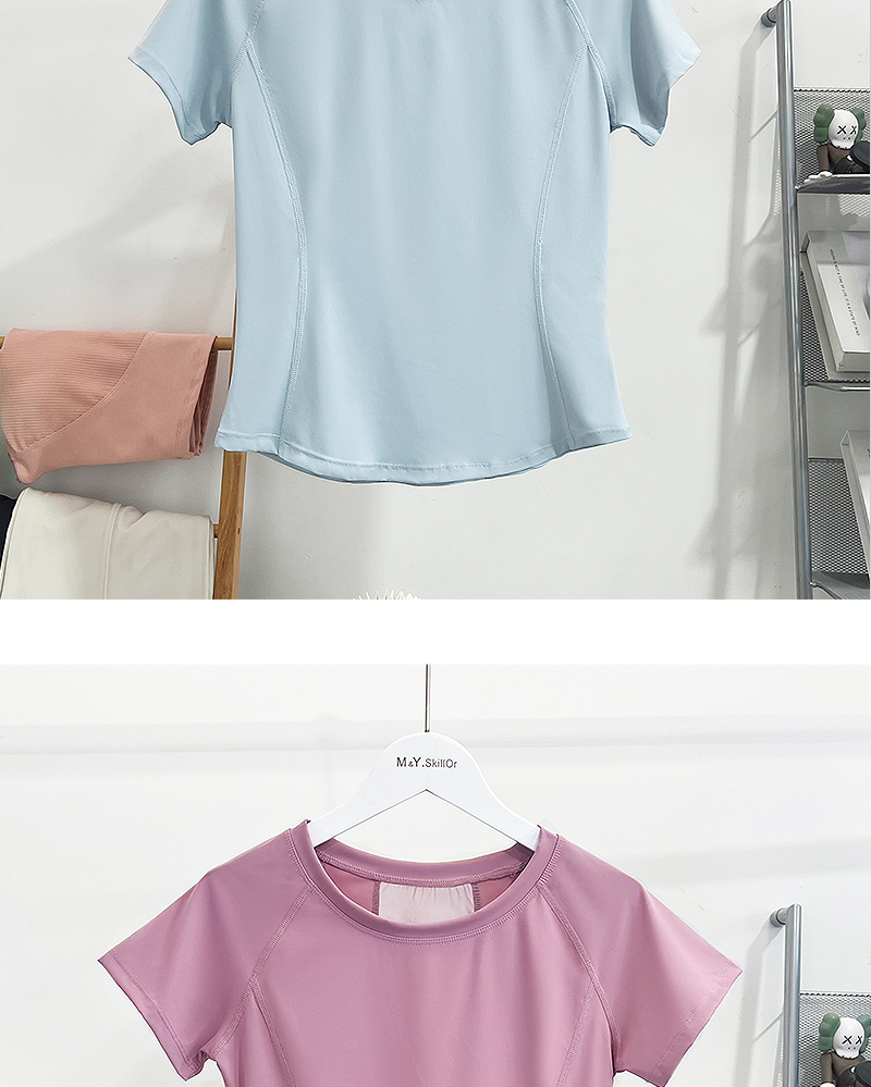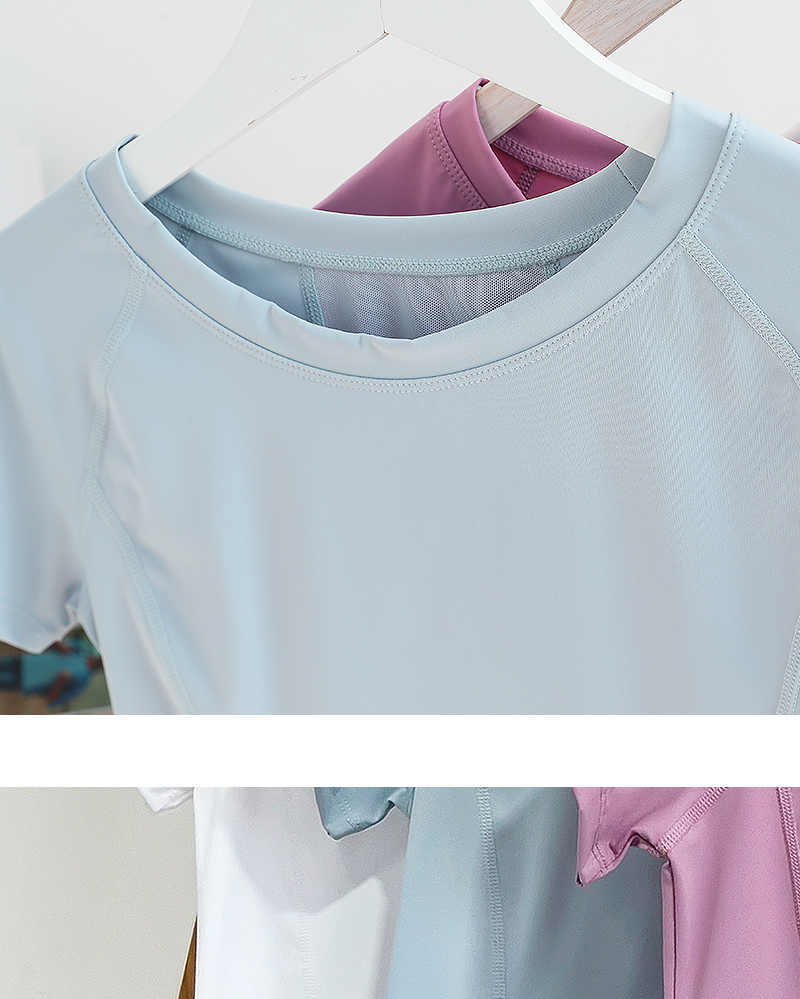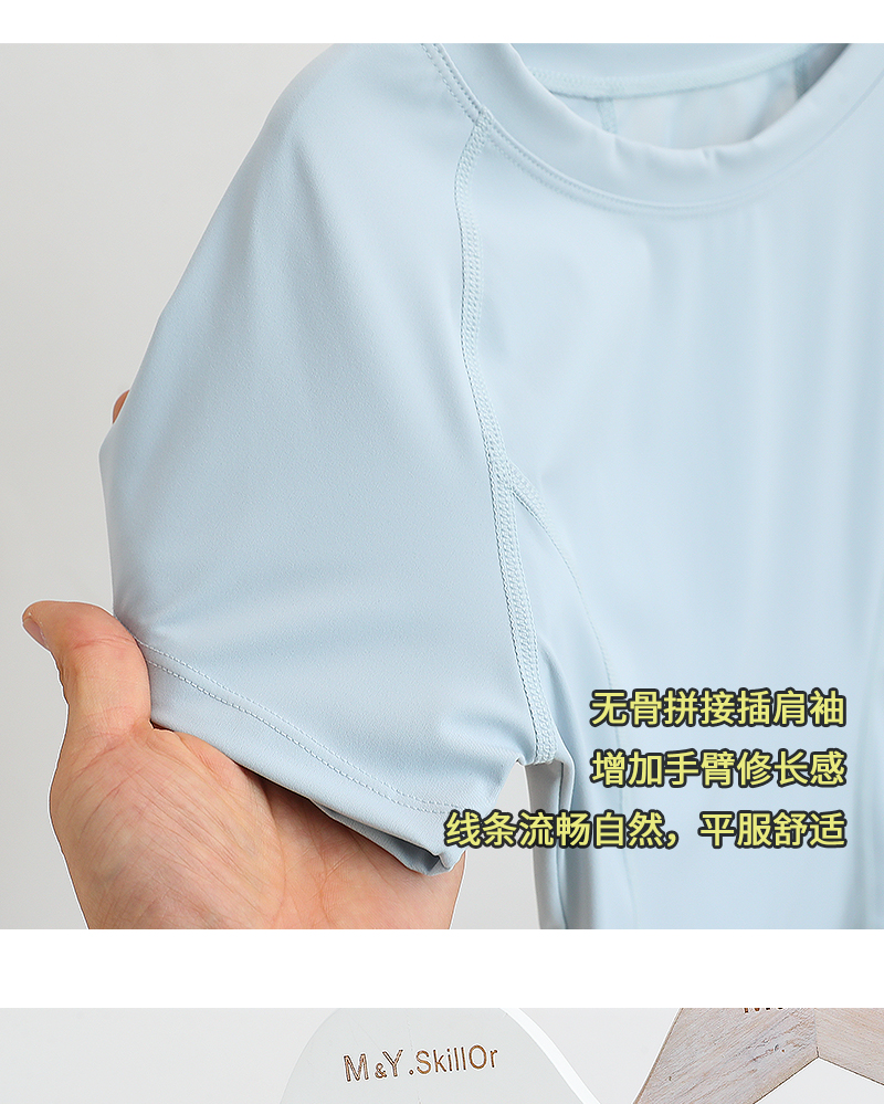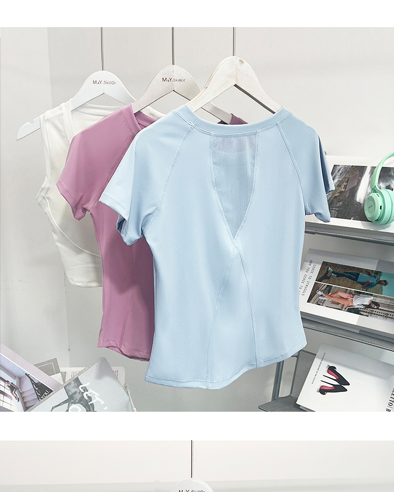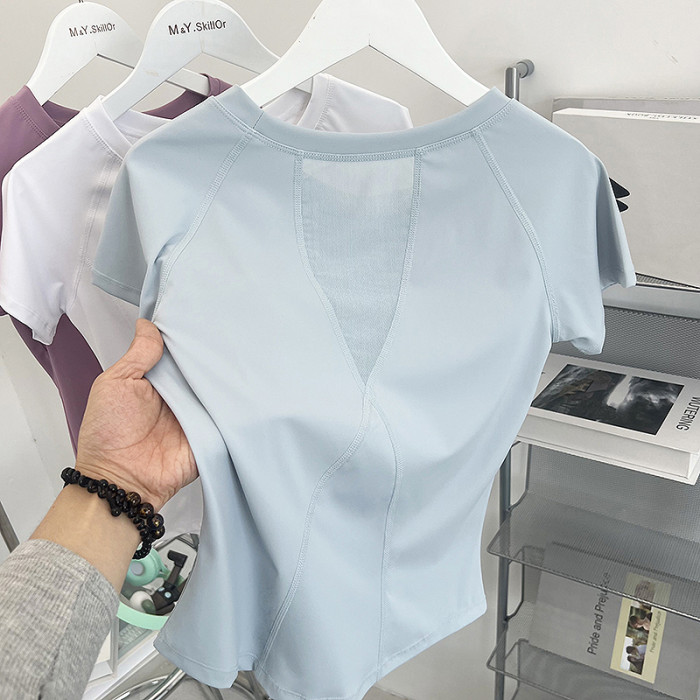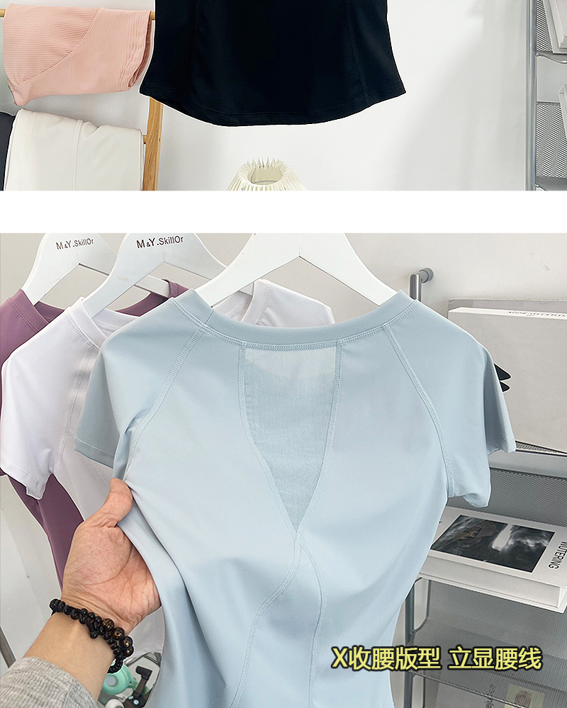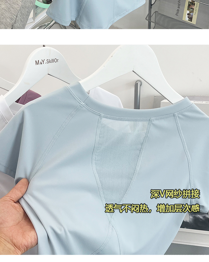 必入款!後X型網紗拼接性感圓領百搭短袖24夏日透氣插肩短款上衣