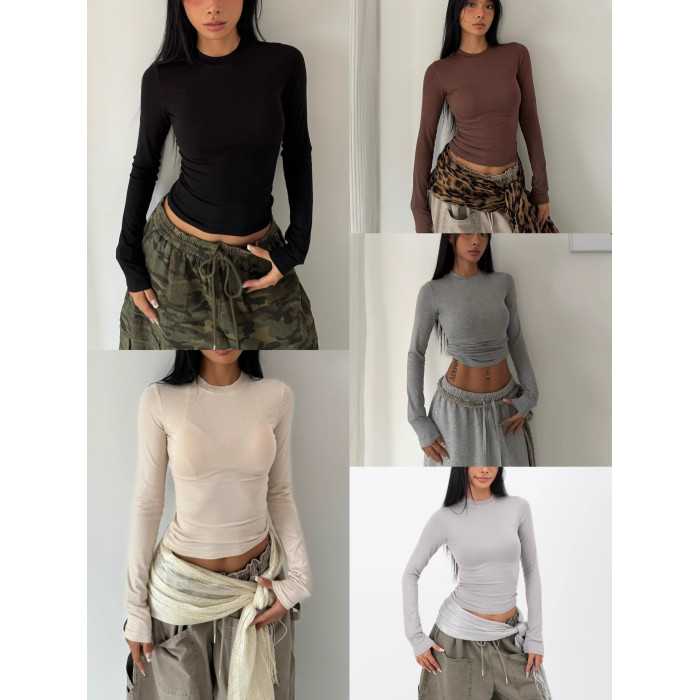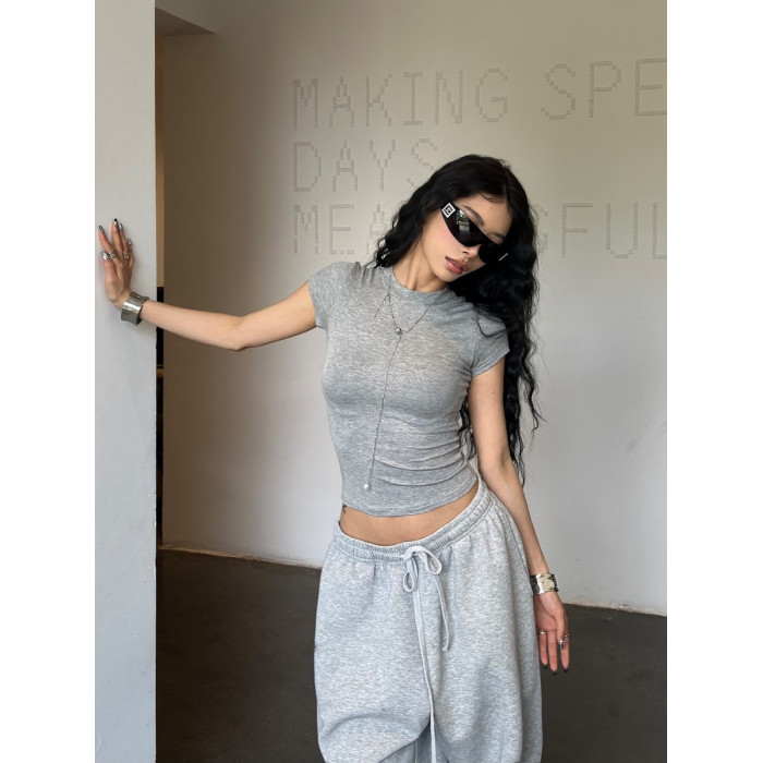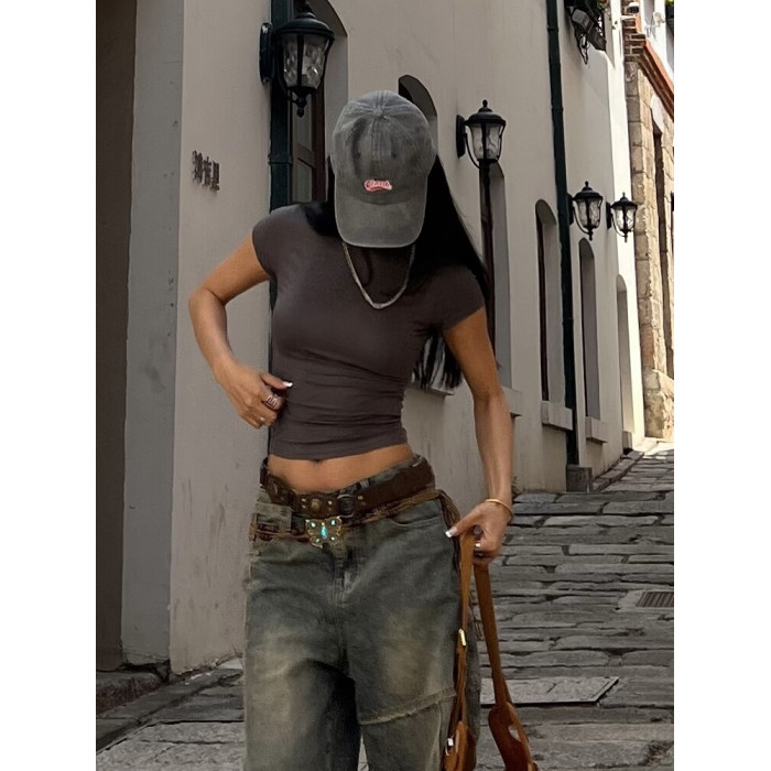 BLINGGIRLS辣妹純色百搭顯瘦高彈柔軟零束縛感緊身短袖上衣