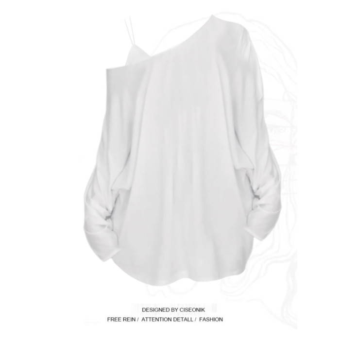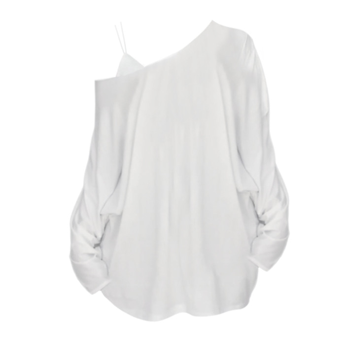 大碼胖妹妹純欲風露肩長袖防曬T恤女夏季薄款蝙蝠袖寬松罩衫上衣