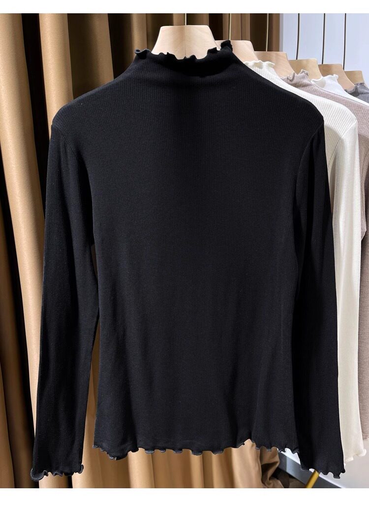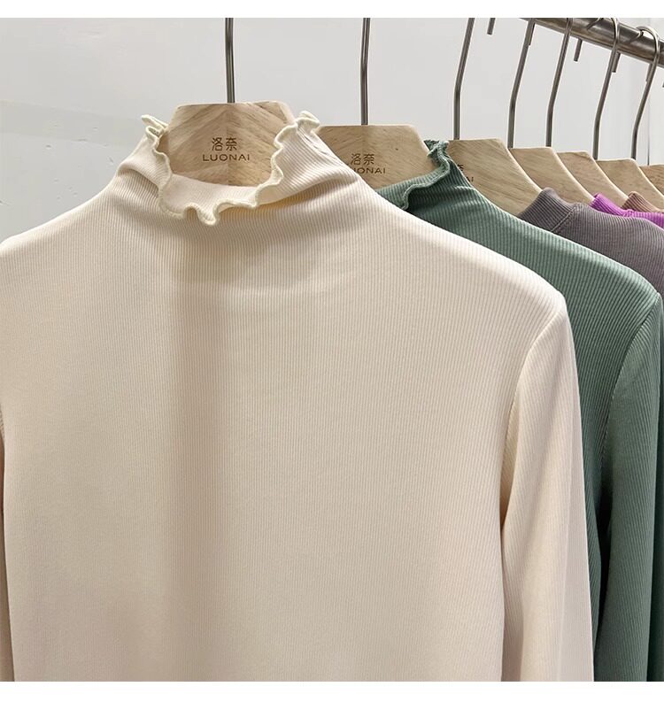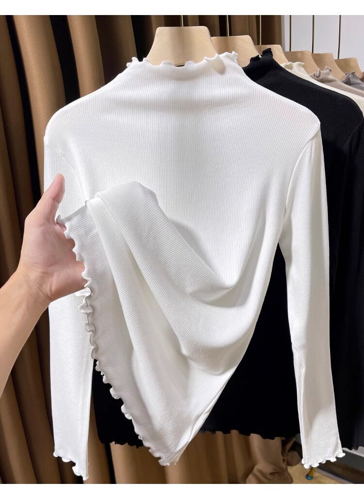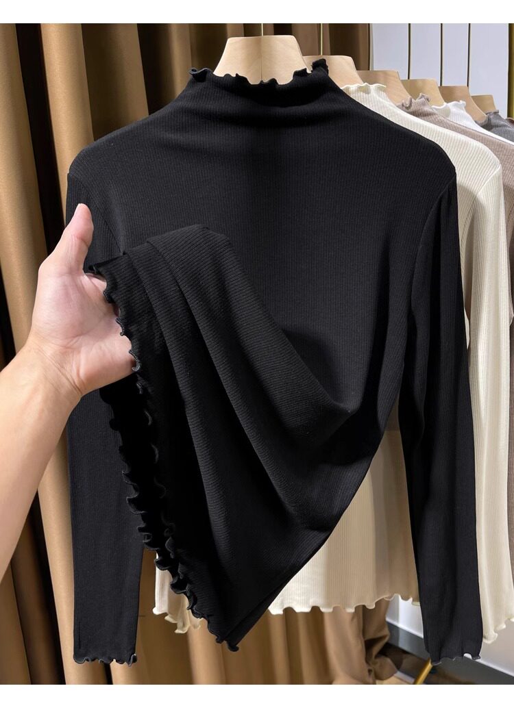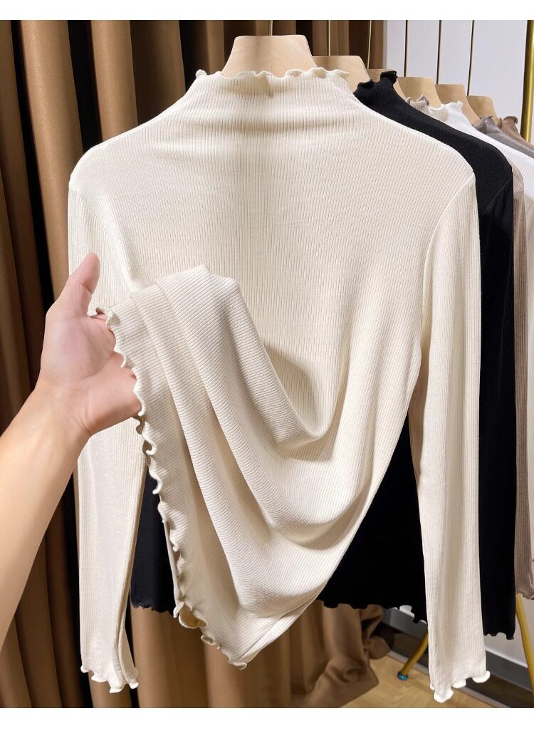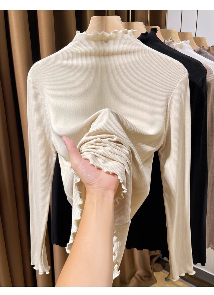 半高領木耳邊長袖打底衫女2025秋季新款莫代爾螺紋內搭修身上衣女