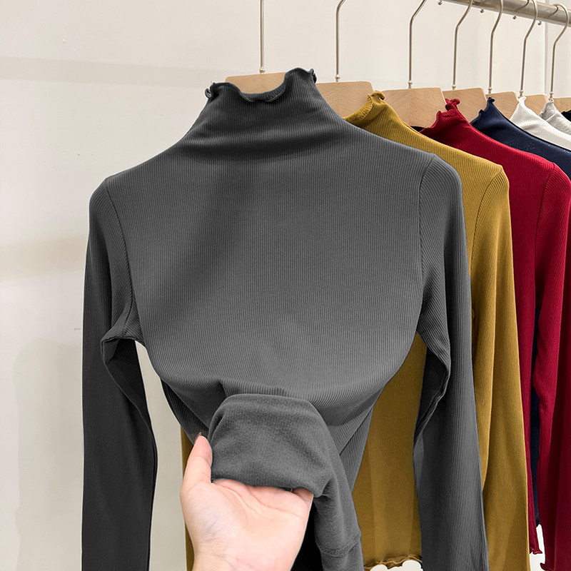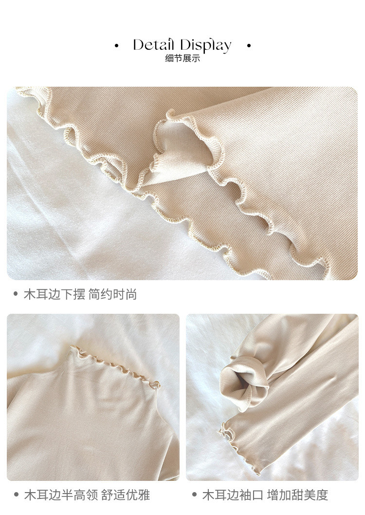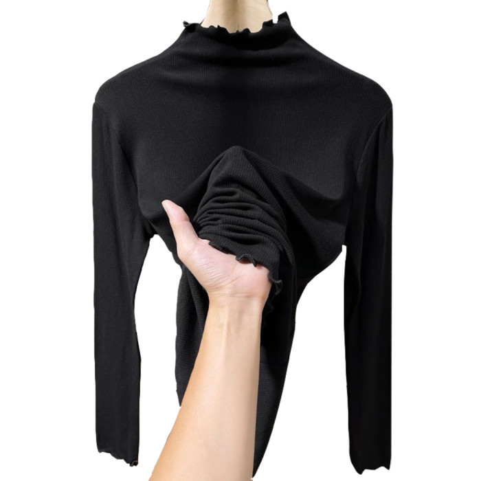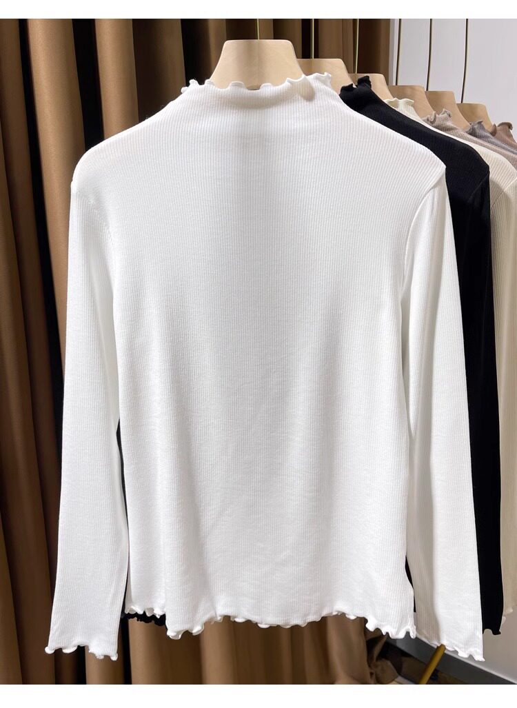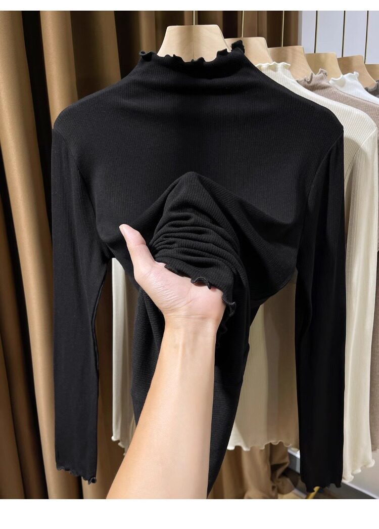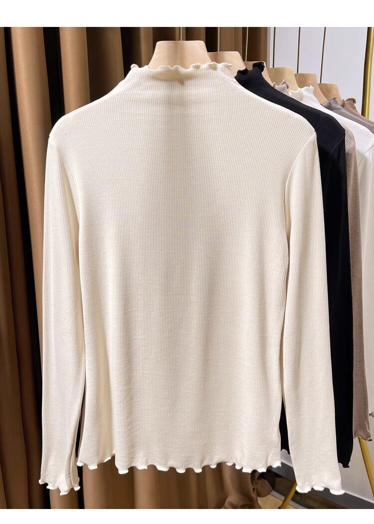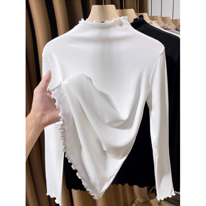 半高領木耳邊長袖打底衫女2025秋季新款莫代爾螺紋內搭修身上衣女