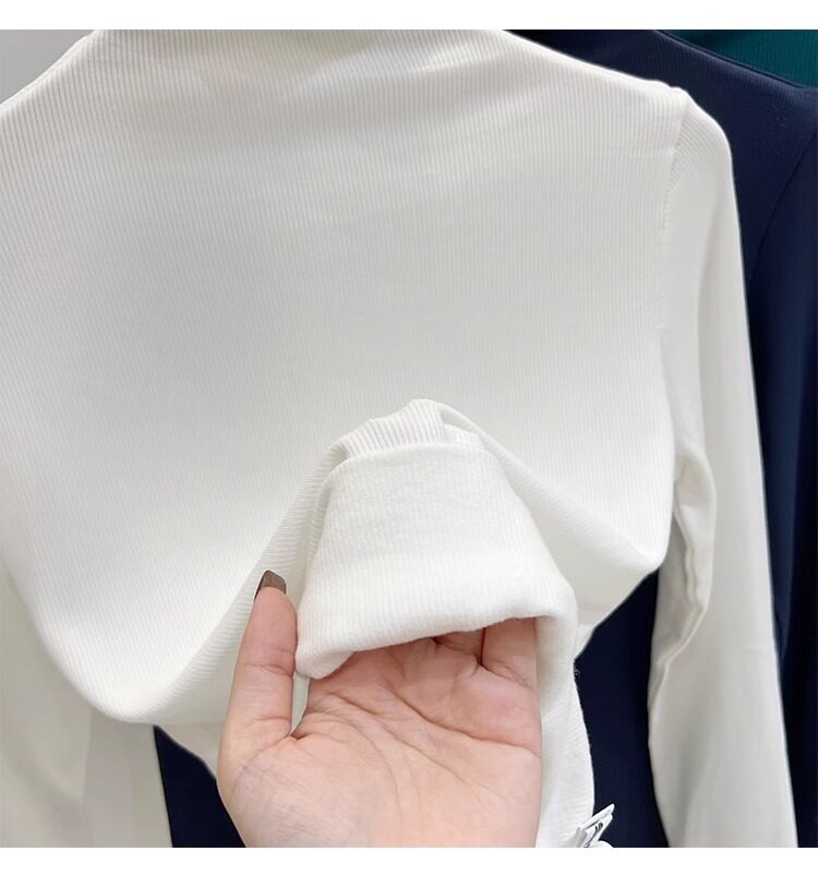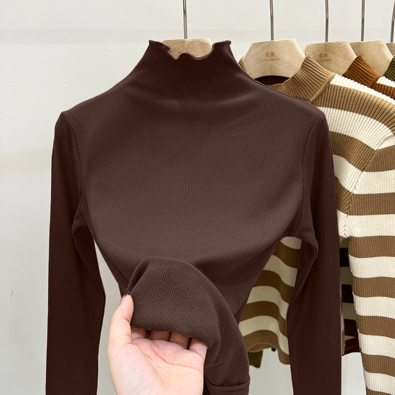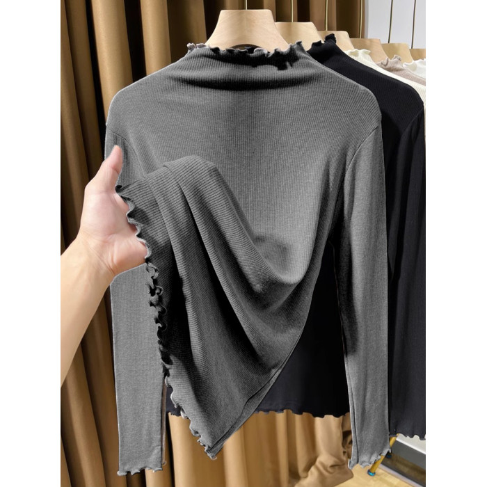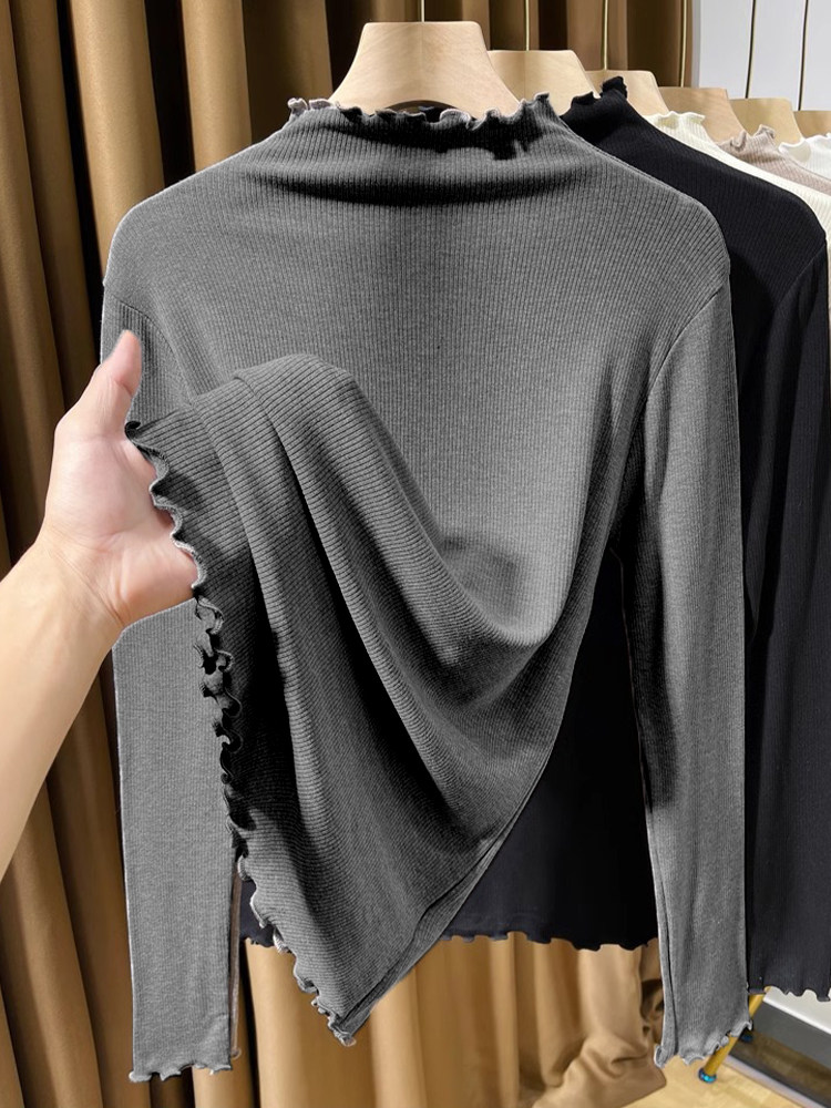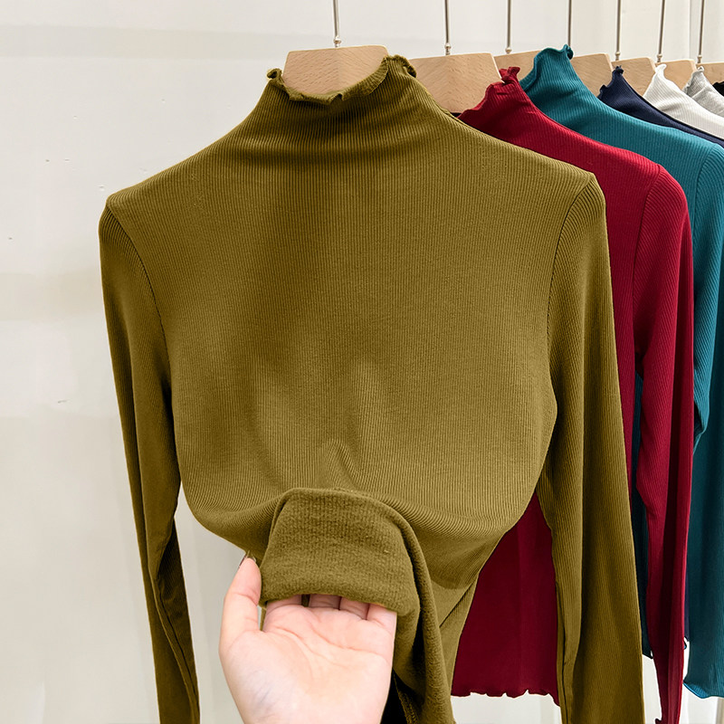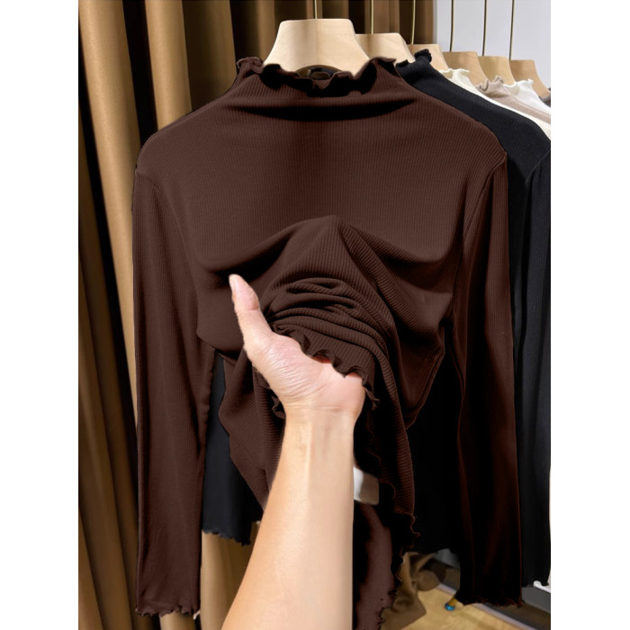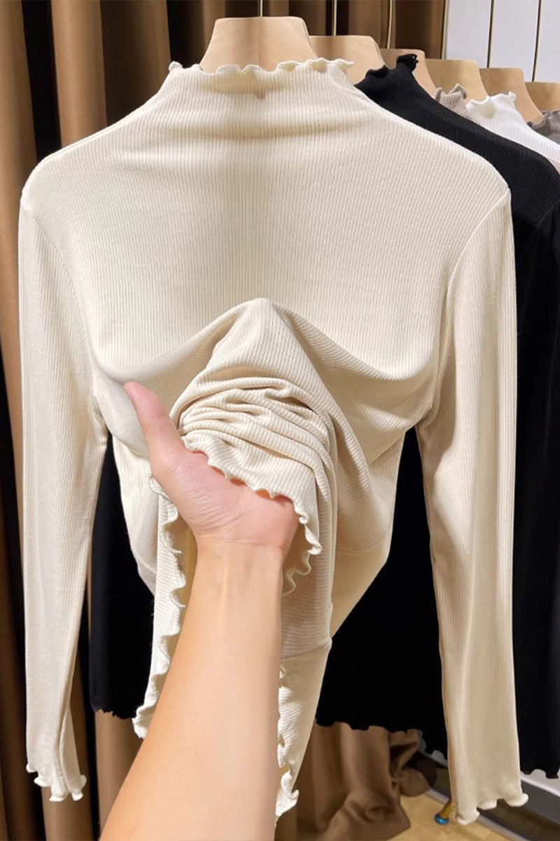半高領木耳邊長袖打底衫女2025秋季新款莫代爾螺紋內搭修身上衣女