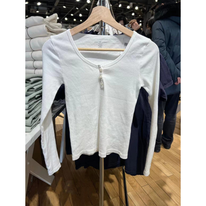 Brandy BM zellytop三粒釦長袖修身T恤女bm純色基礎款打底衫上衣
