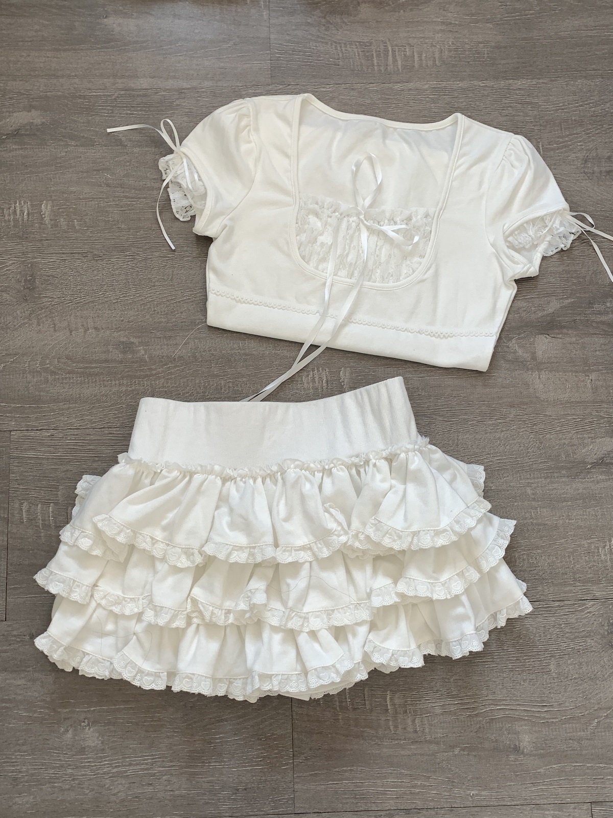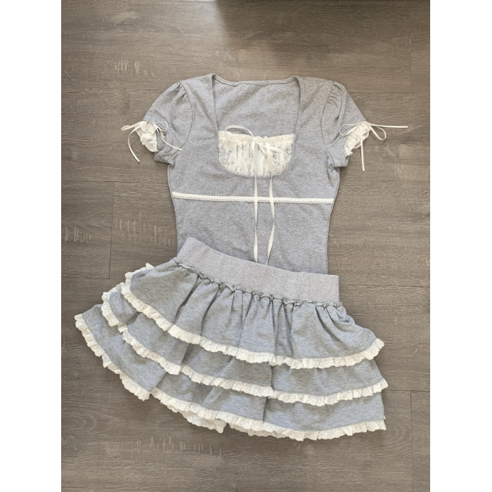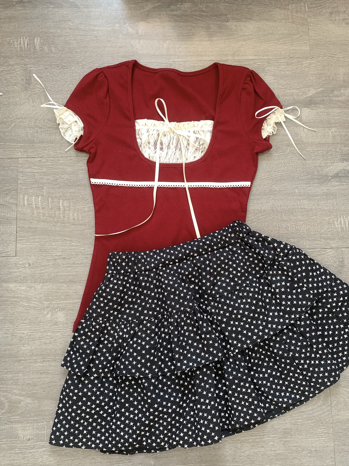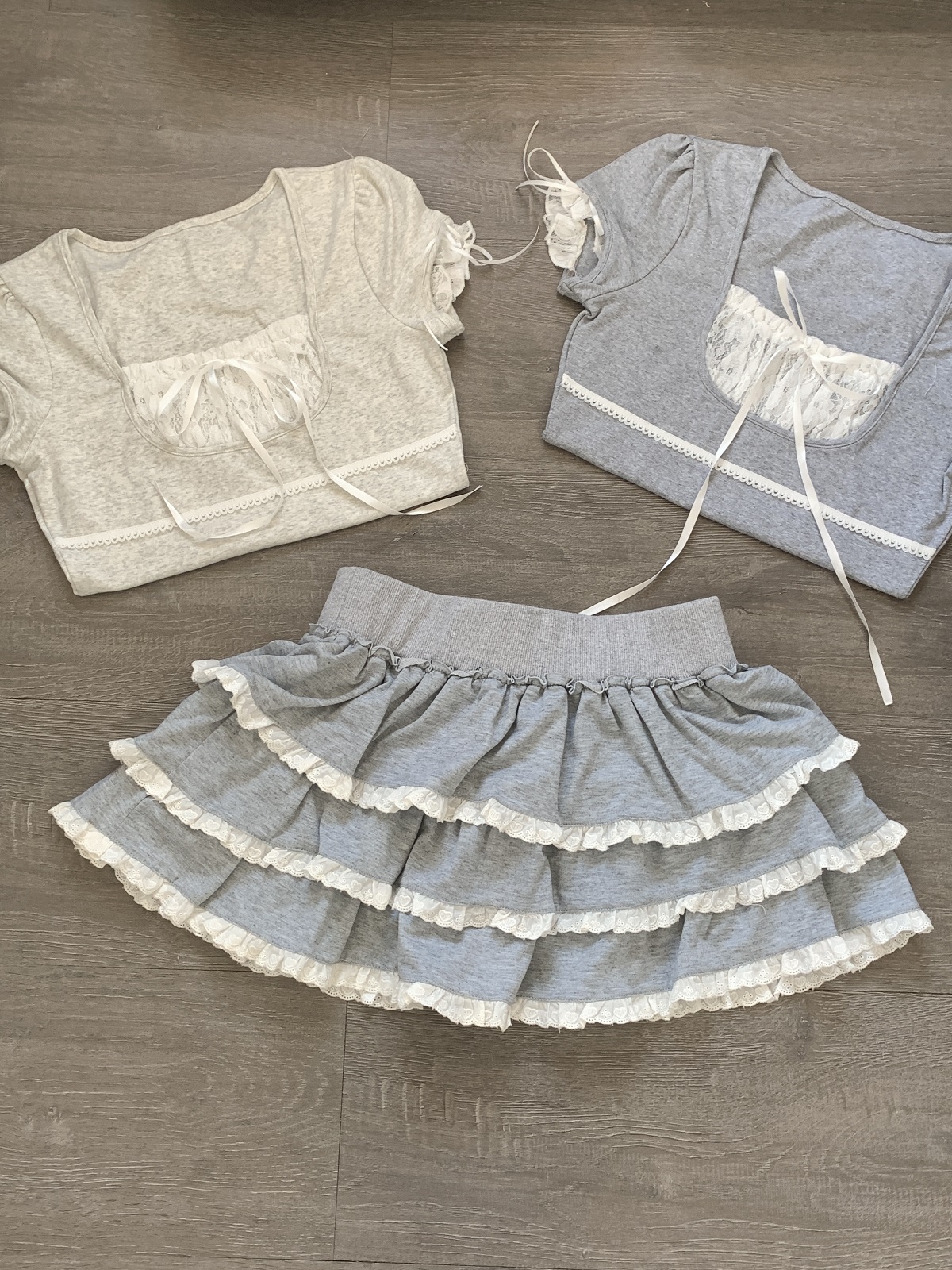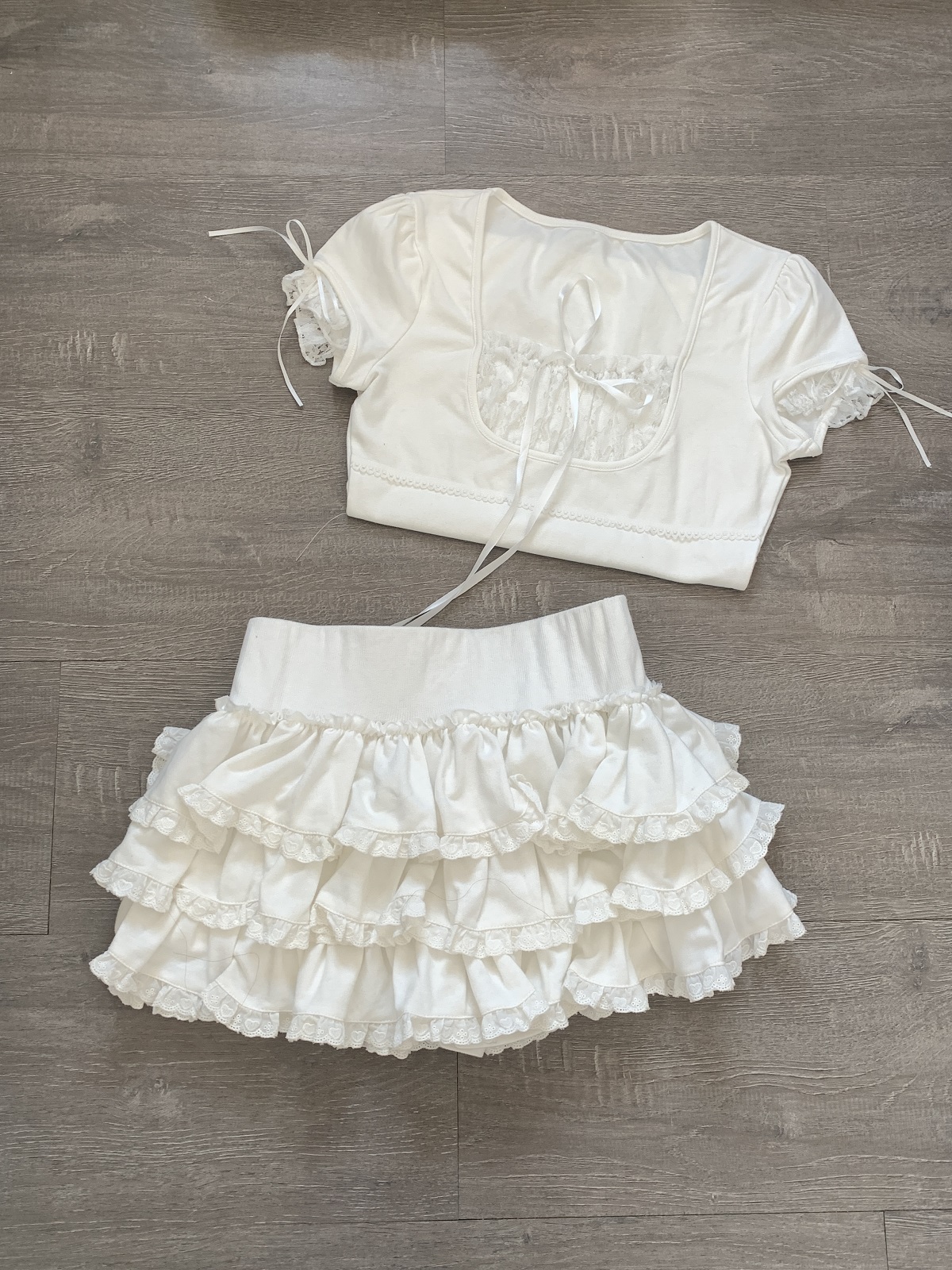 夏季新款顯瘦U領花邊芭蕾風T恤女設計感小衆甜妹短袖純棉上衣女