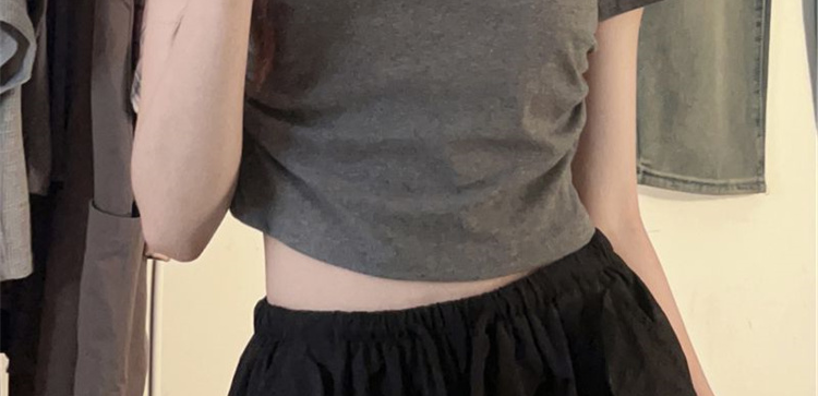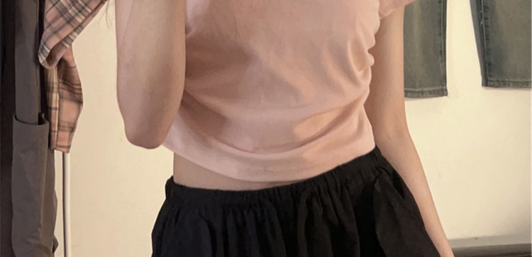 不規則正肩短袖T恤女夏季甜酷辣妹短款修身高腰顯瘦甜辣jazz上衣
