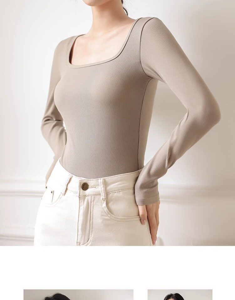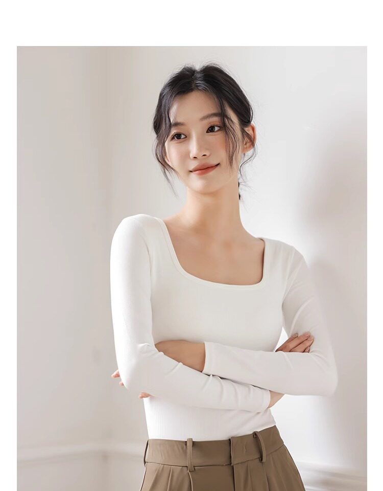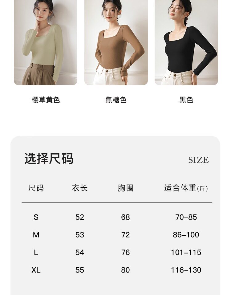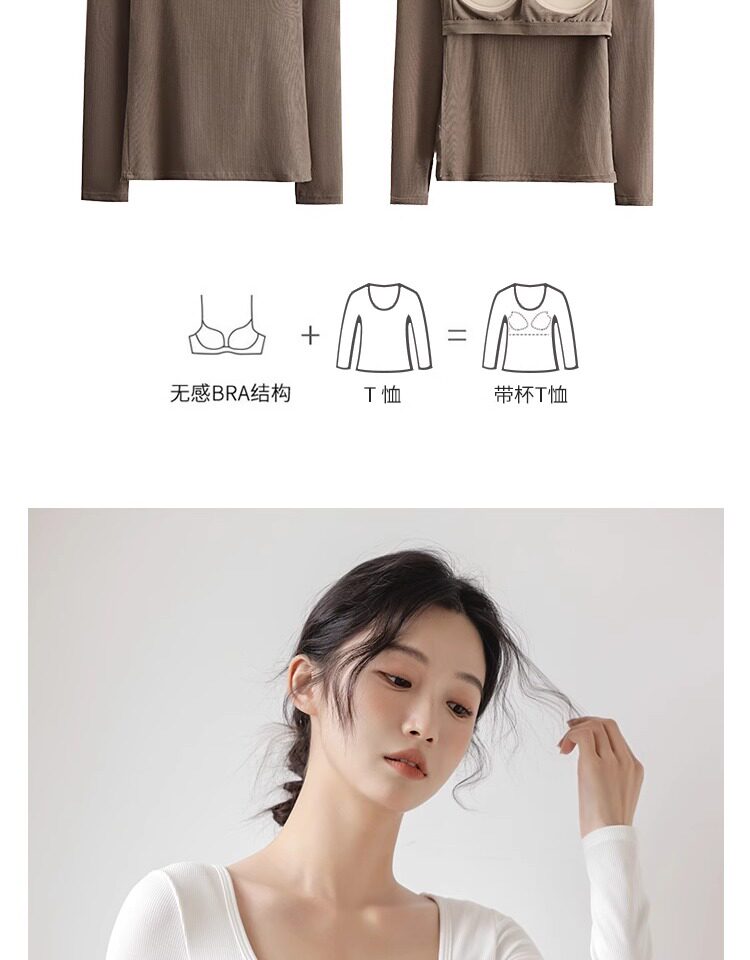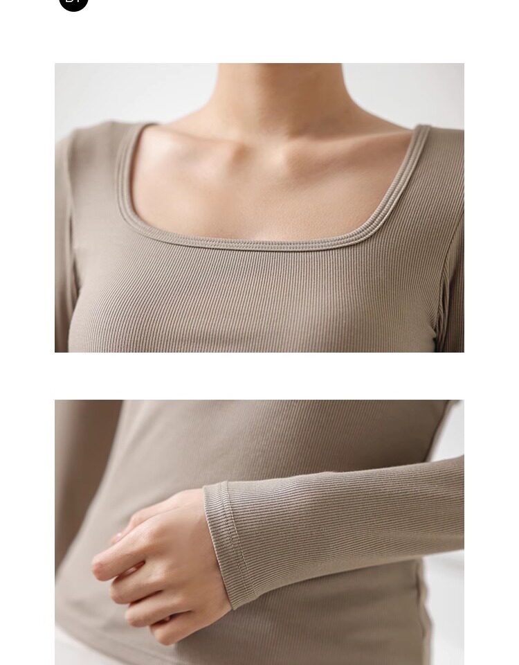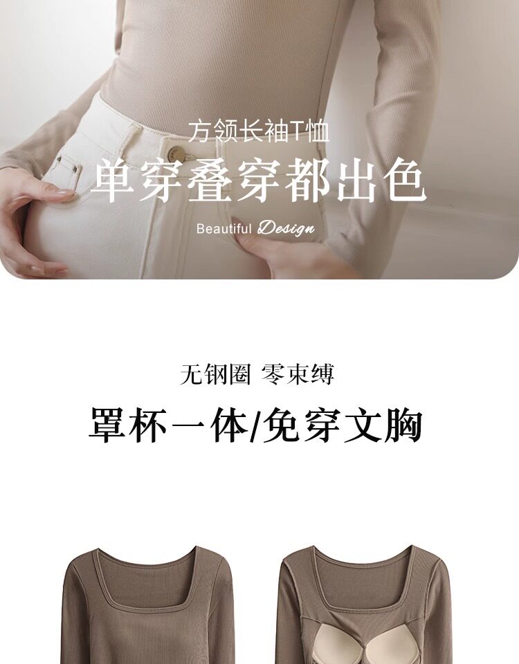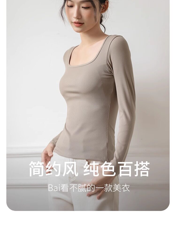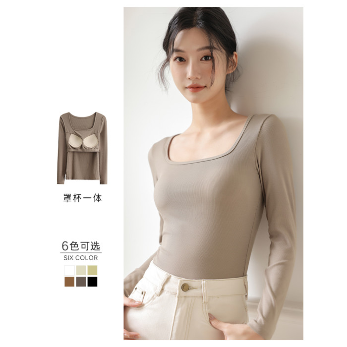 方領長袖帶胸墊T恤女秋冬2025年新款內搭打底衫免穿文胸針織上衣