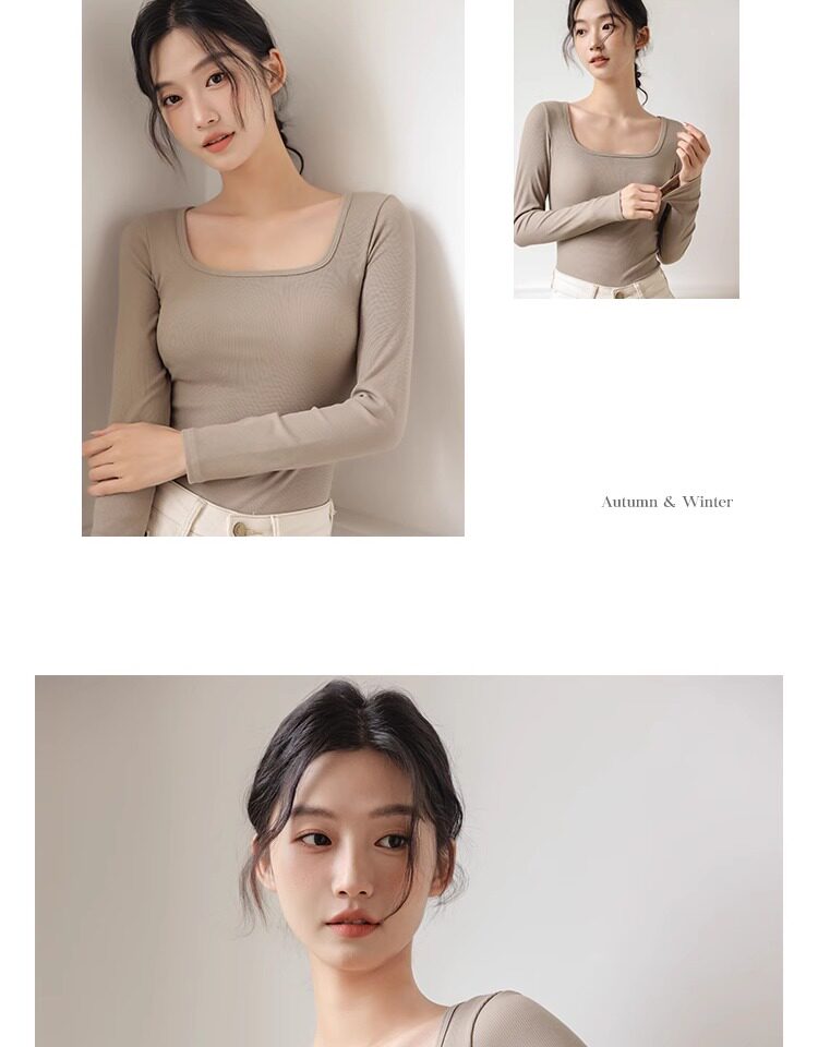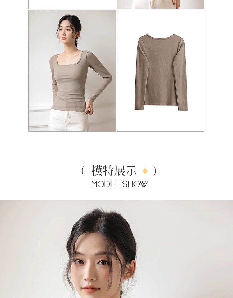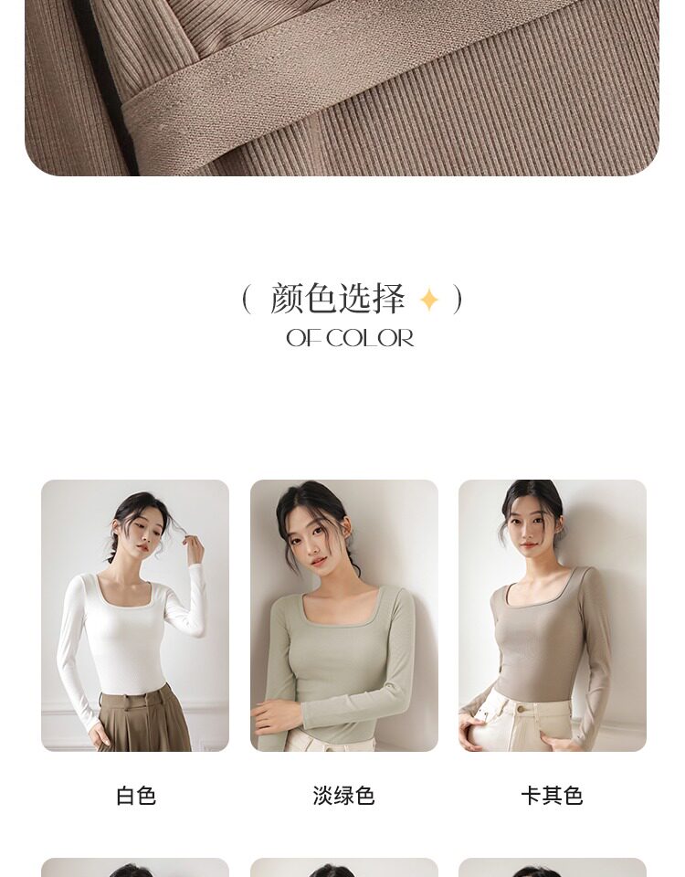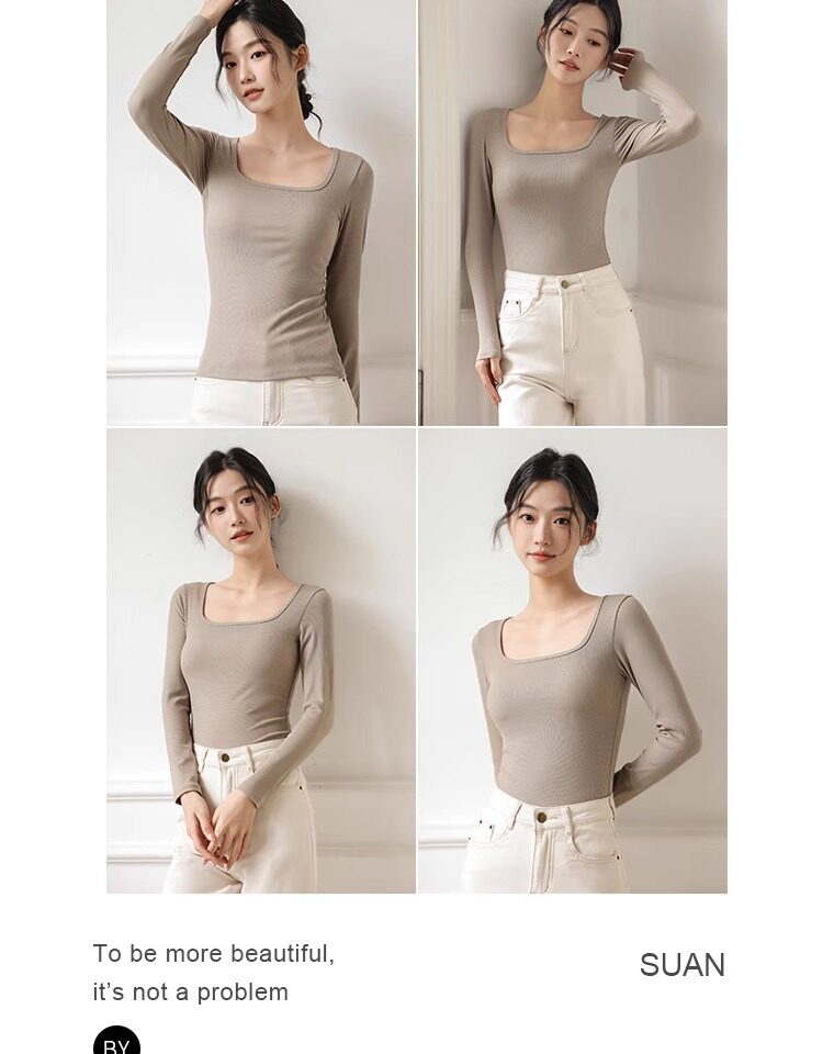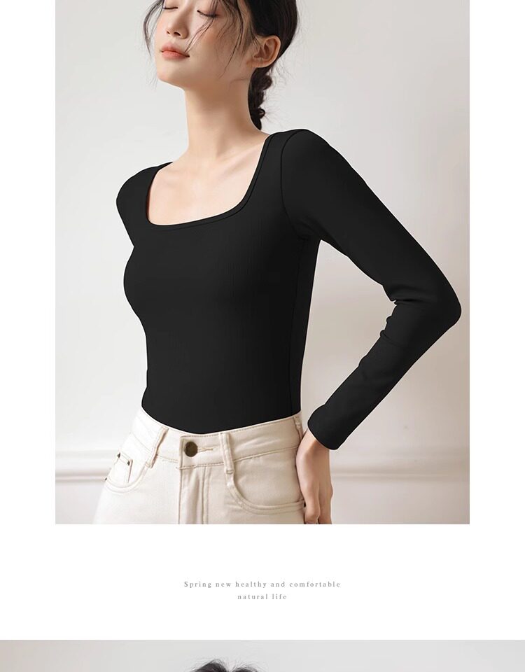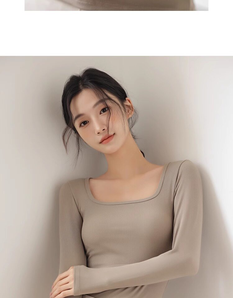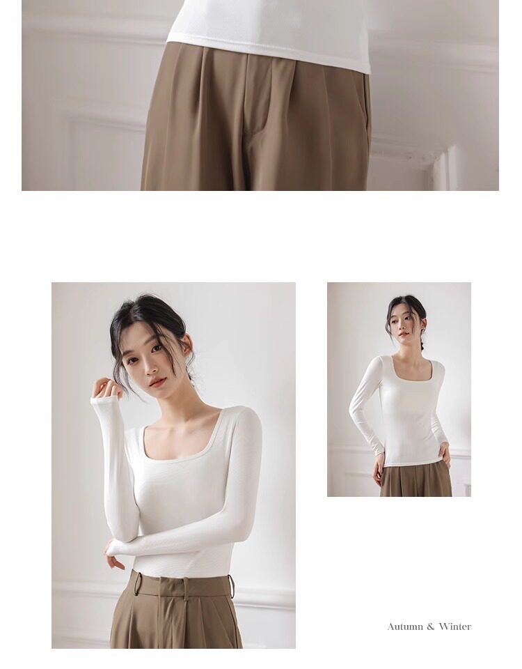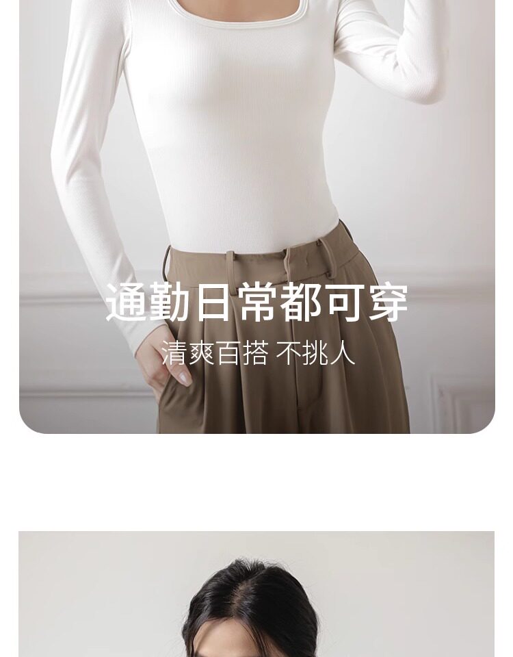 方領長袖帶胸墊T恤女秋冬2025年新款內搭打底衫免穿文胸針織上衣