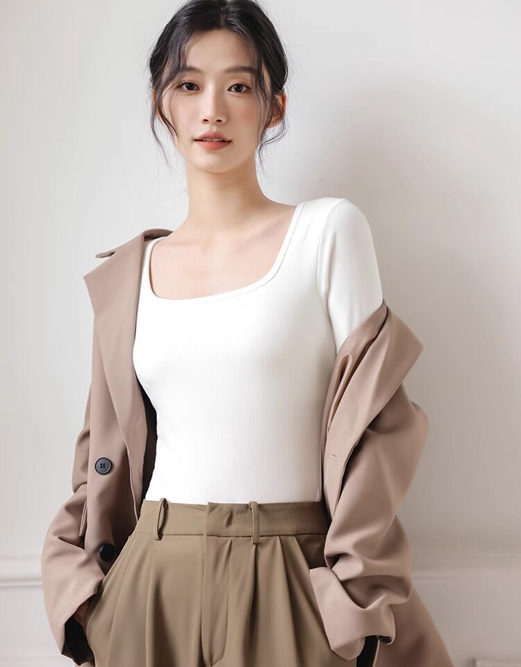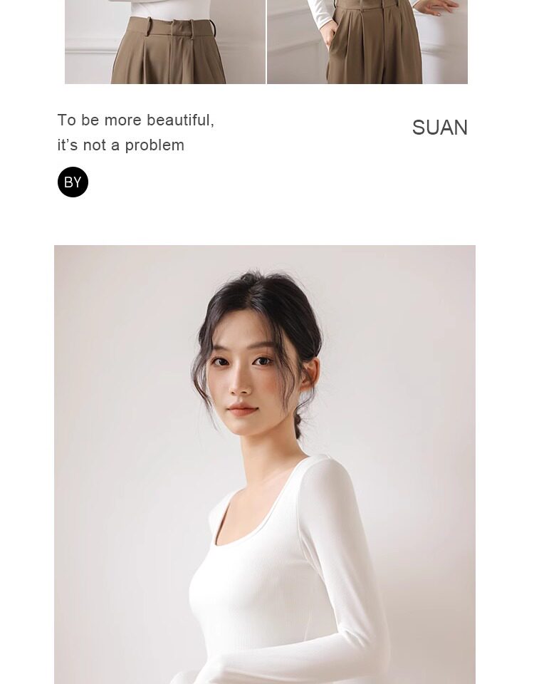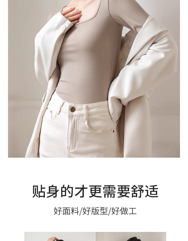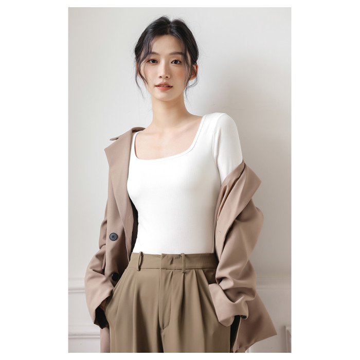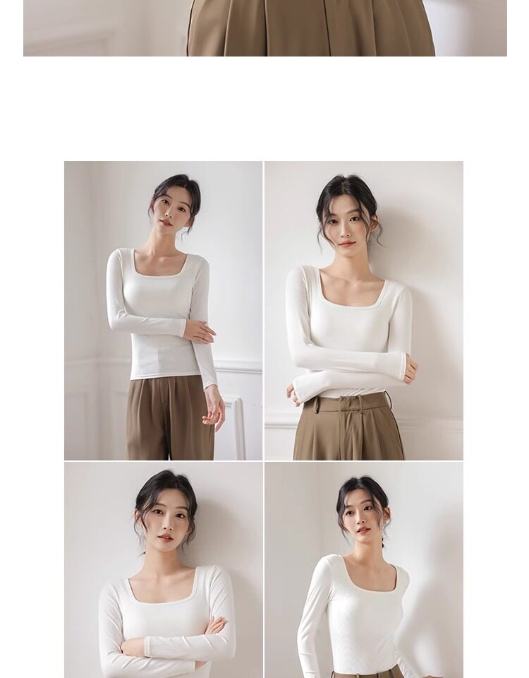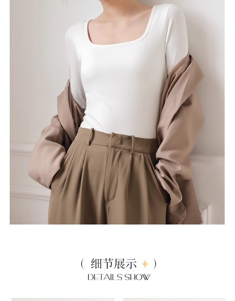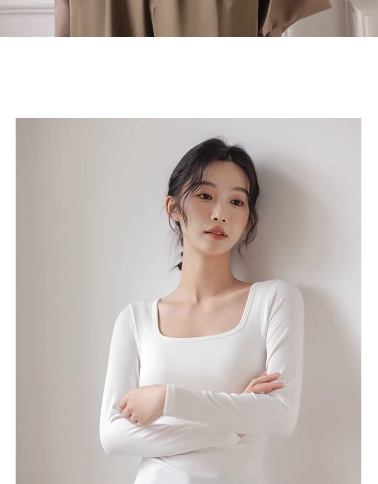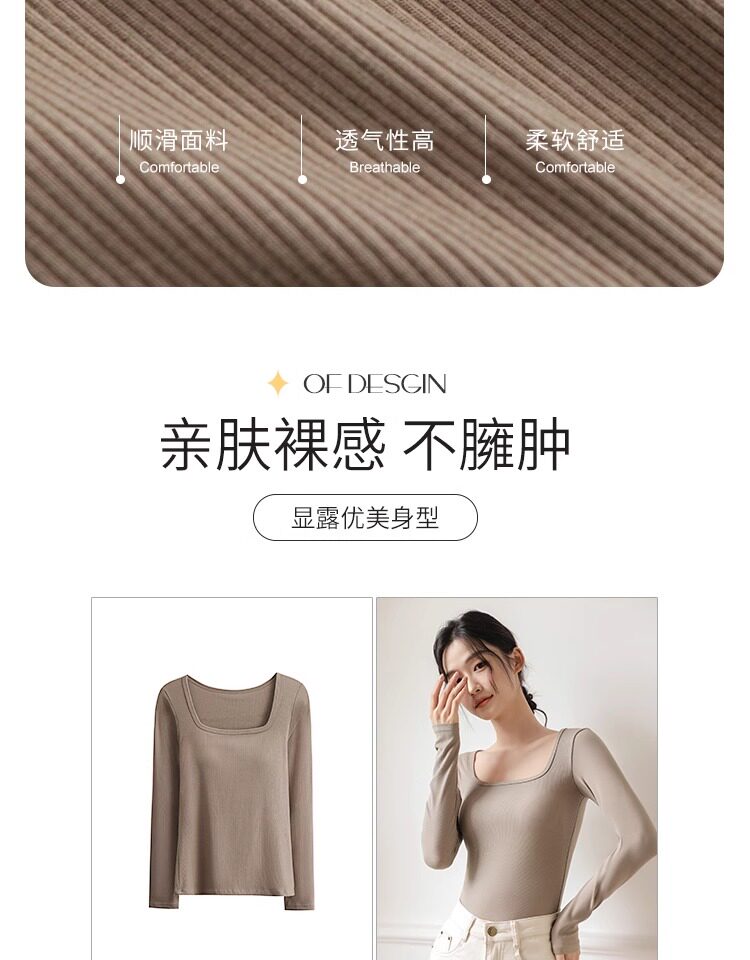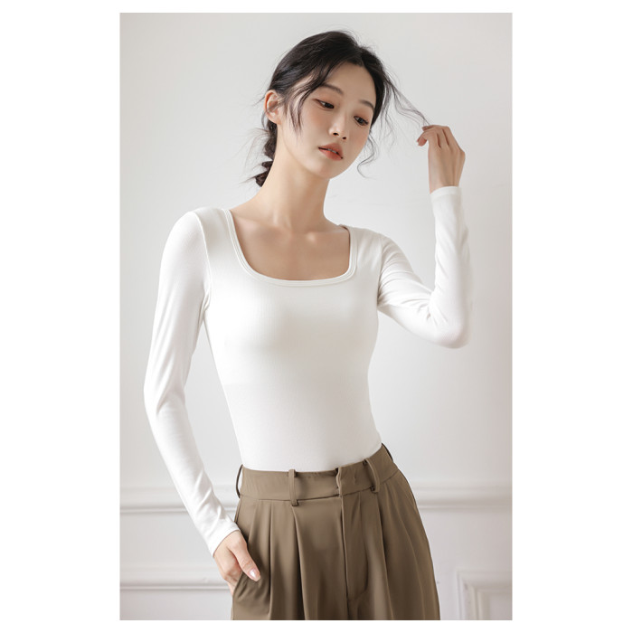 方領長袖帶胸墊T恤女秋冬2025年新款內搭打底衫免穿文胸針織上衣