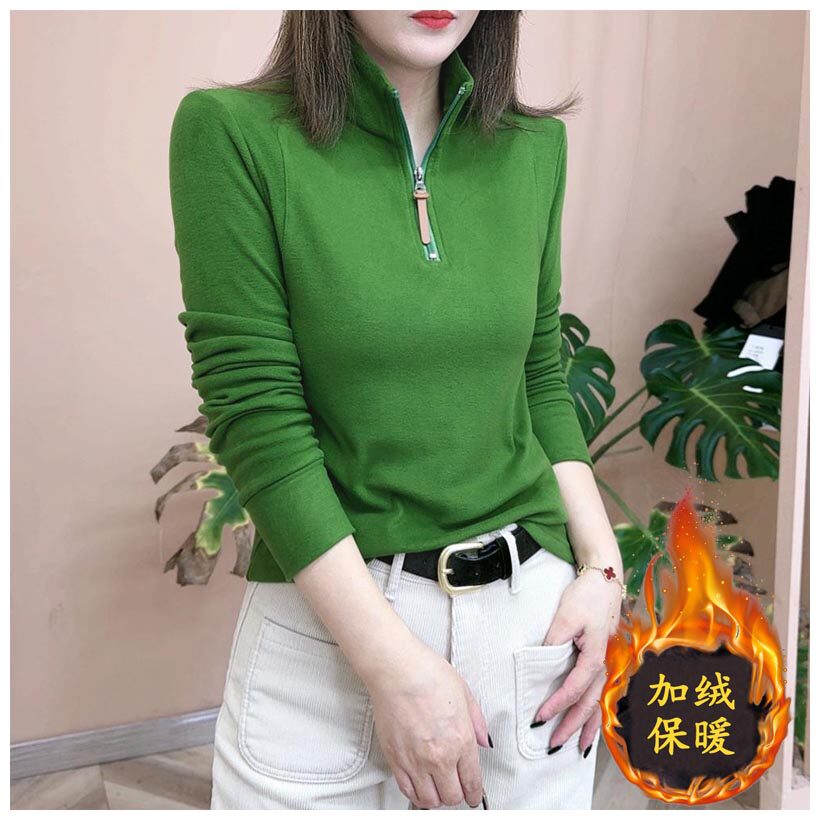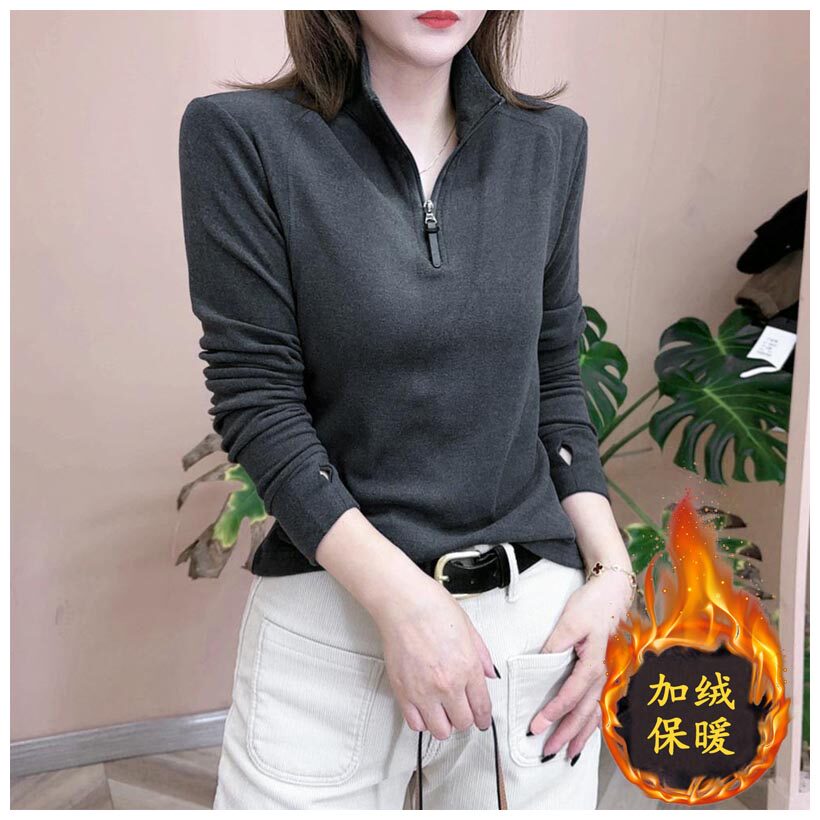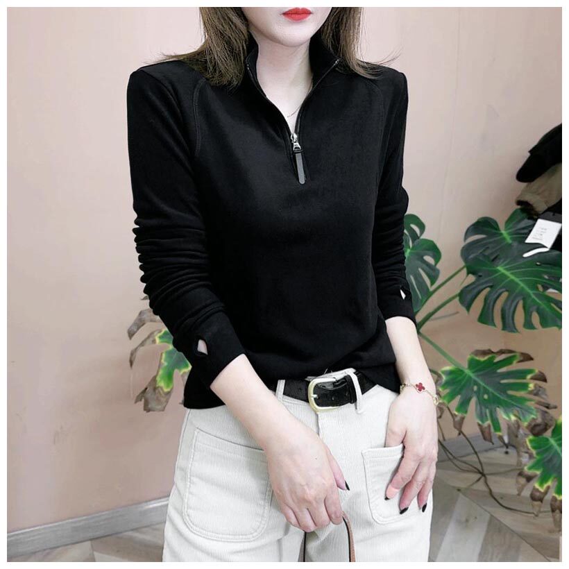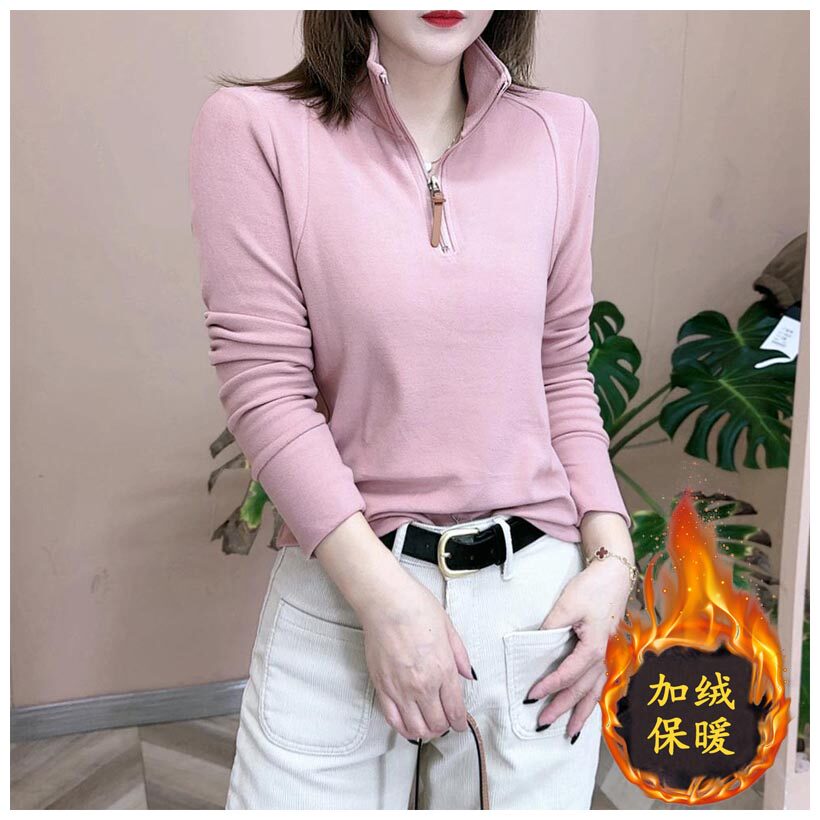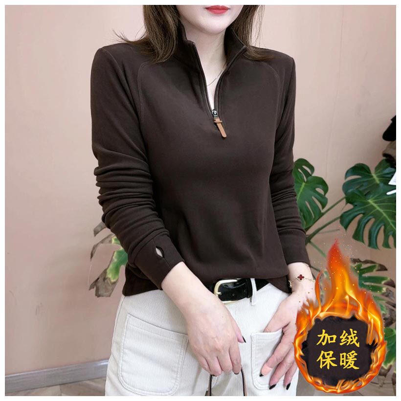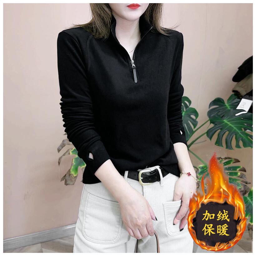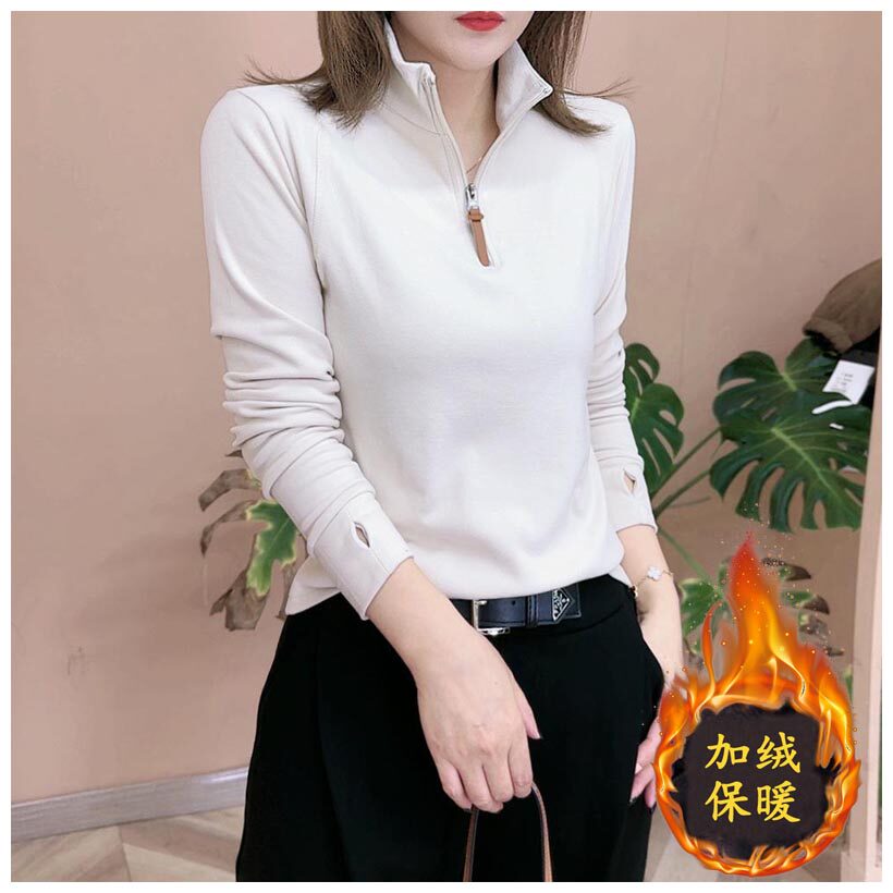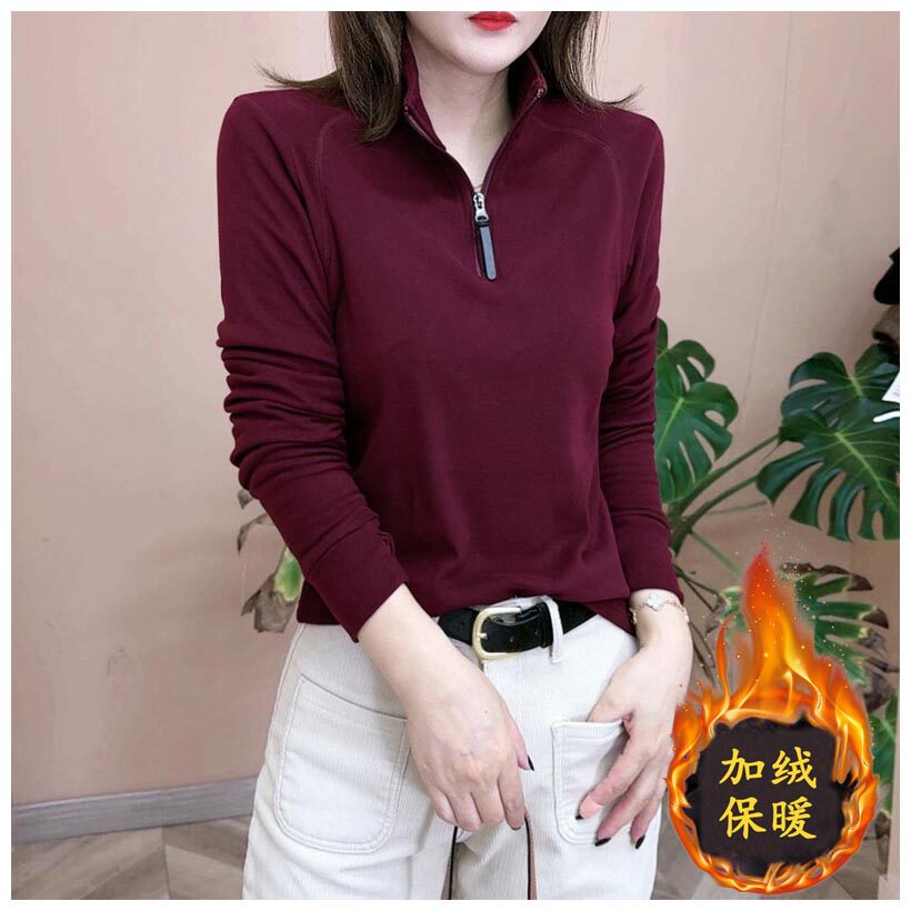 2025秋冬季新品時尚雙面德絨打底衫長袖T恤純色立領女士減齡上衣