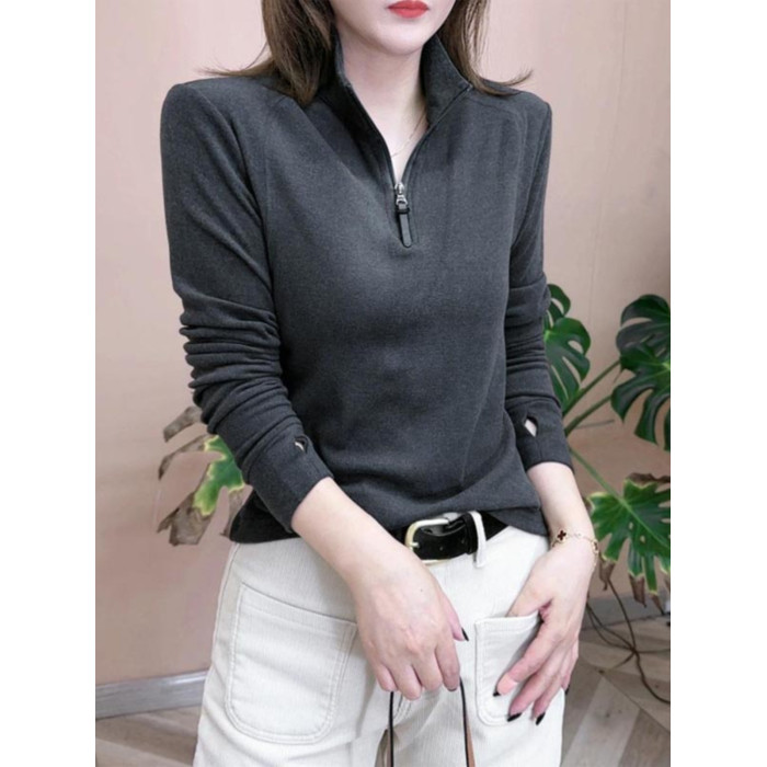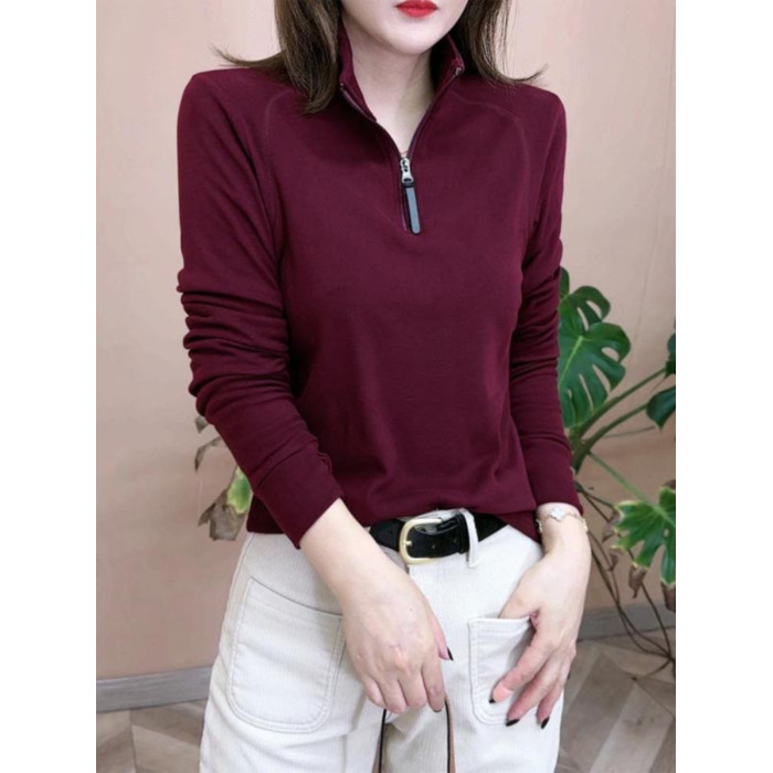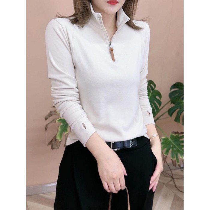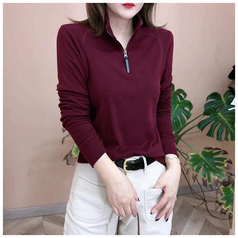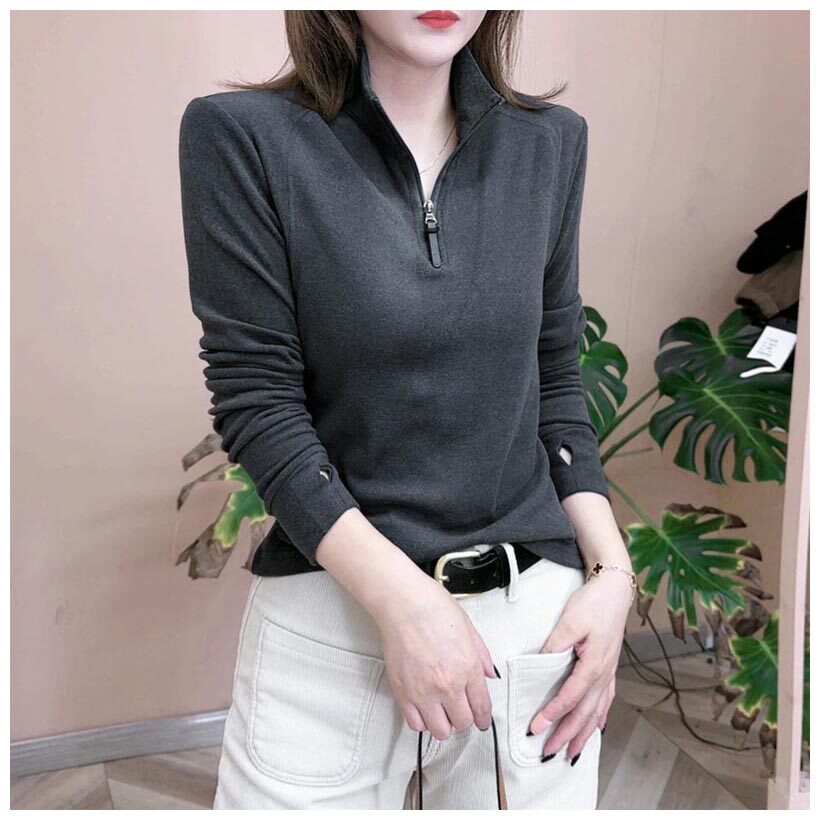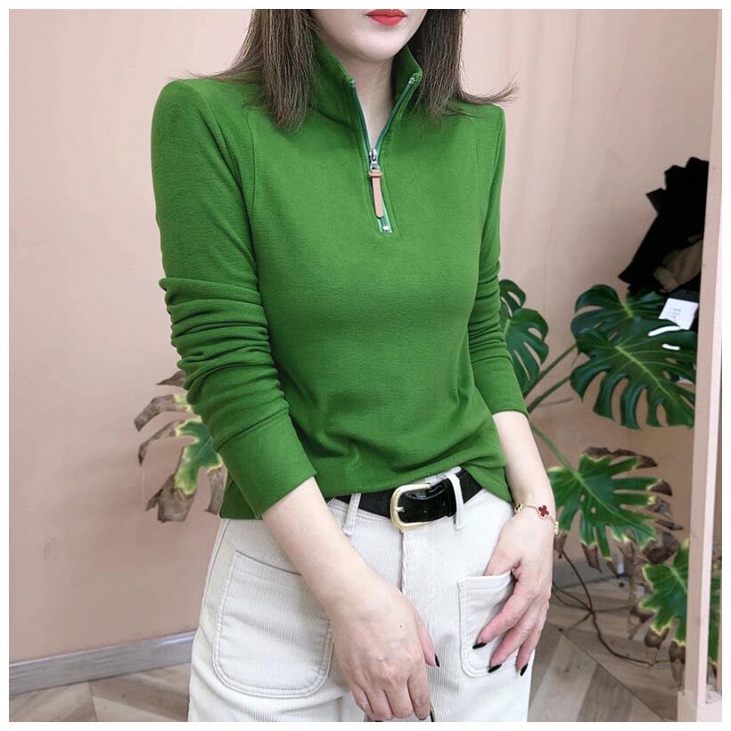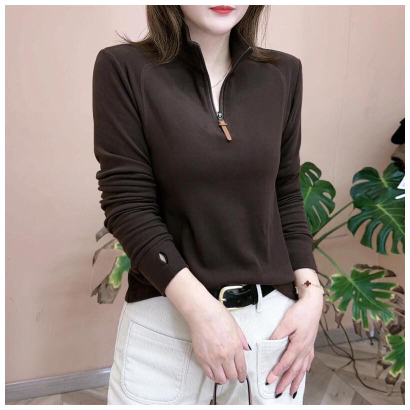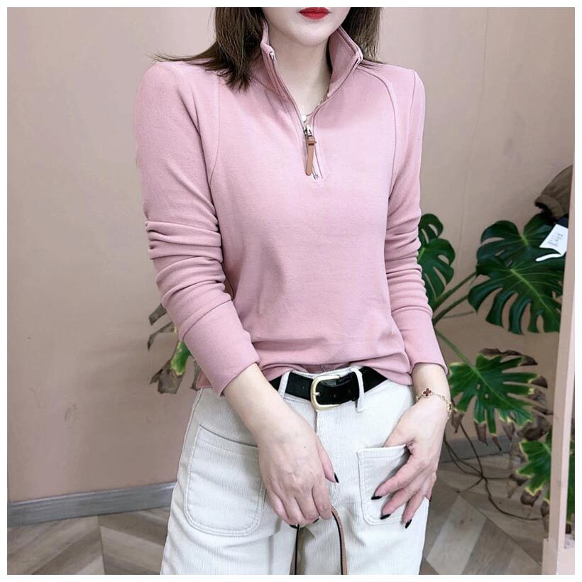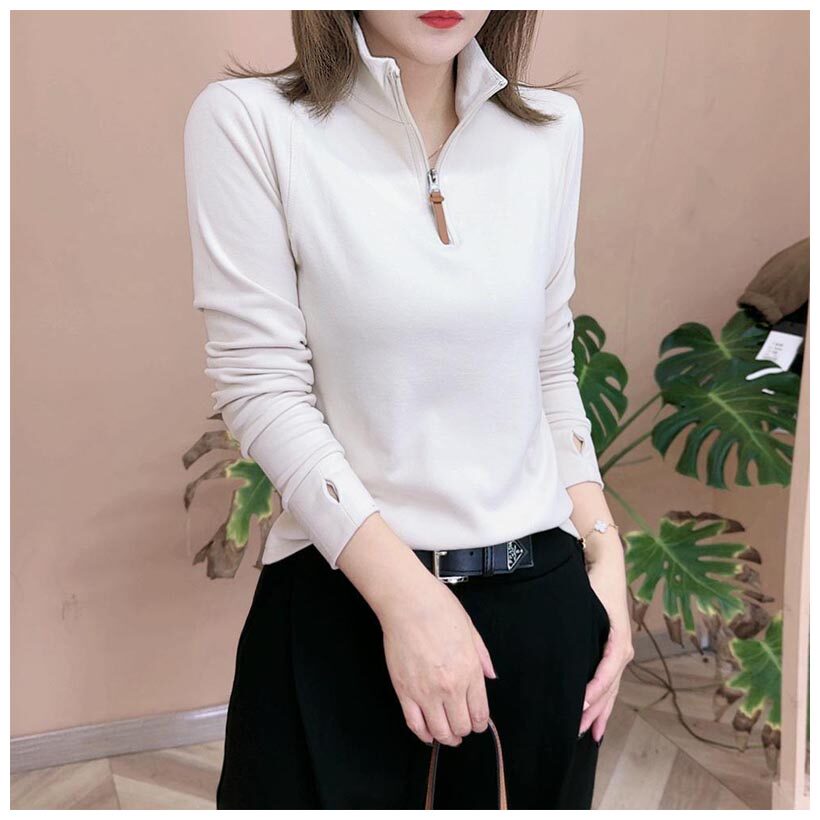 2025秋冬季新品時尚雙面德絨打底衫長袖T恤純色立領女士減齡上衣