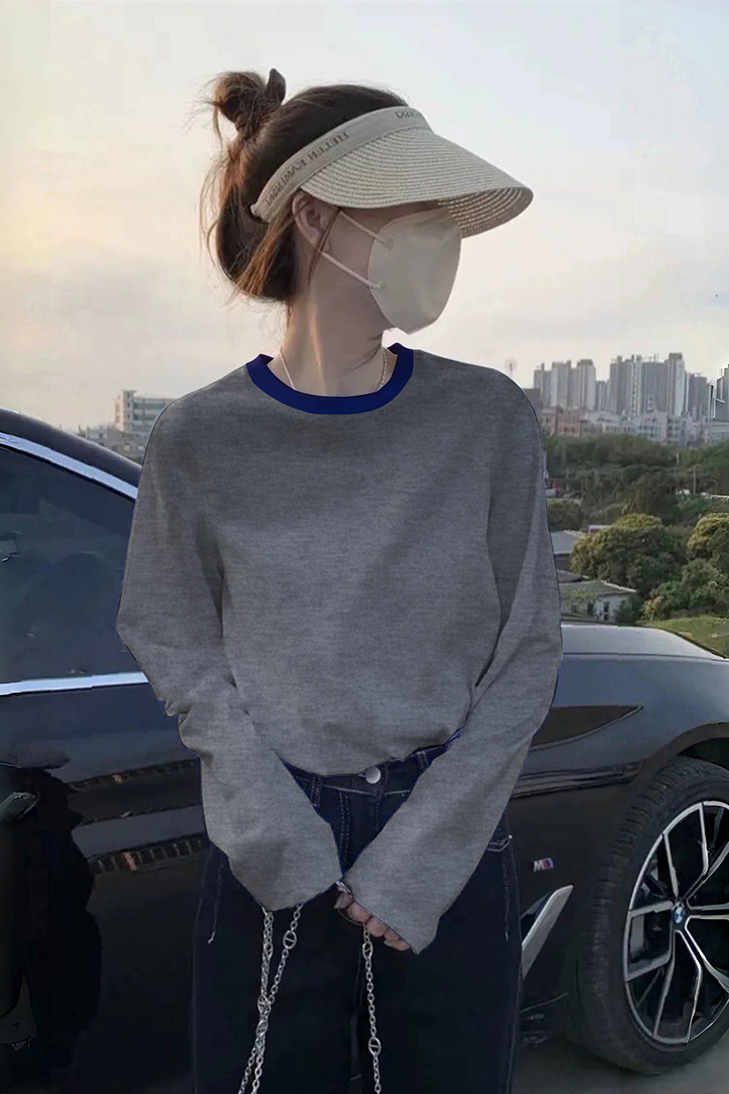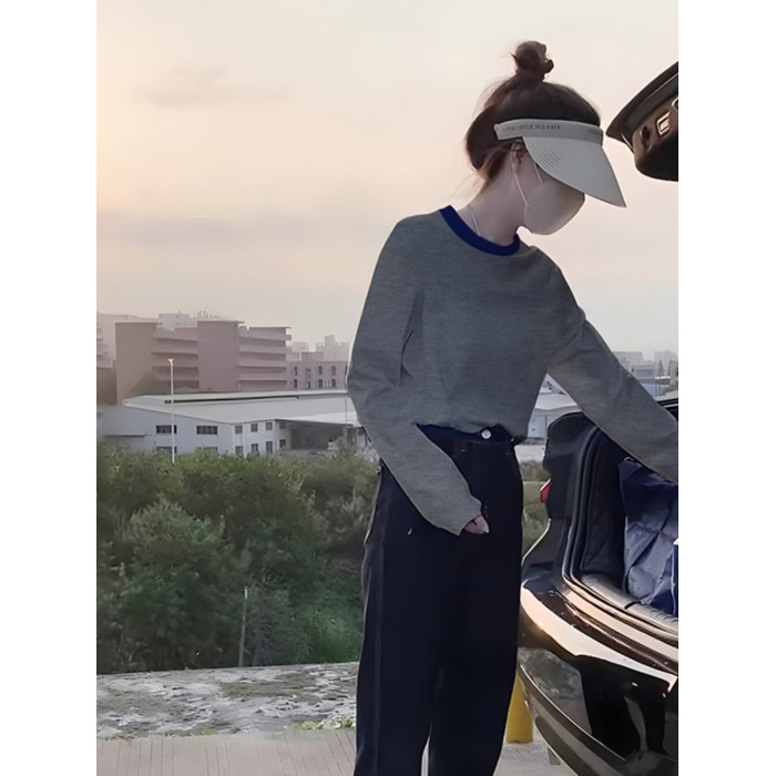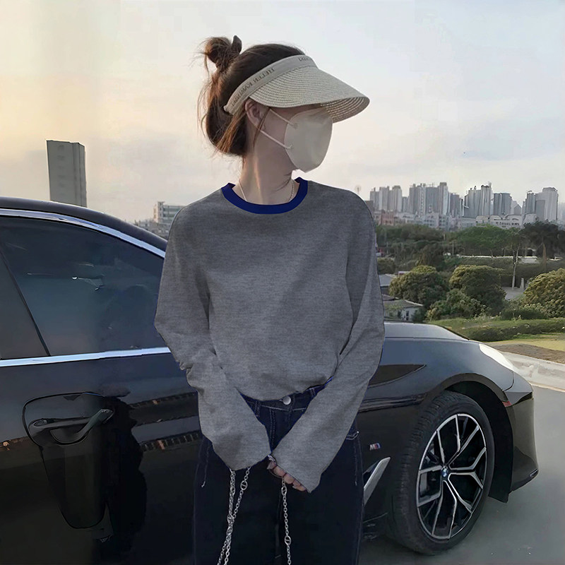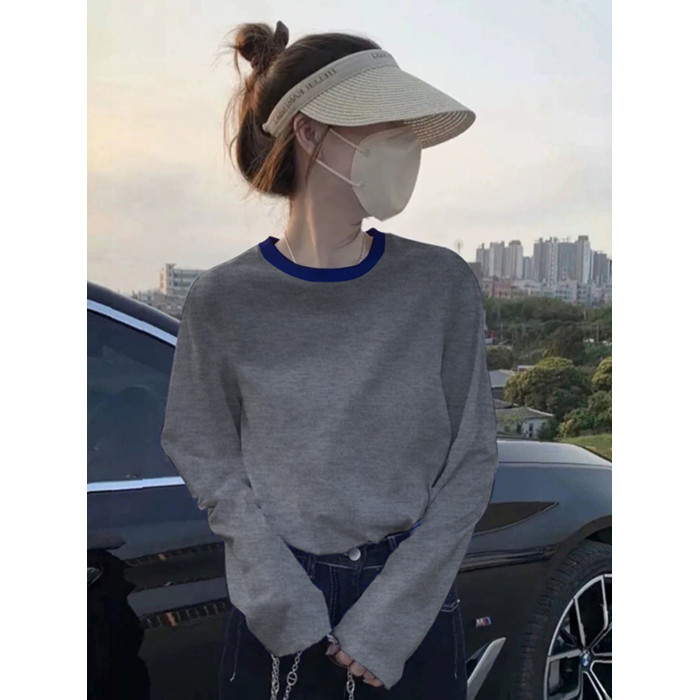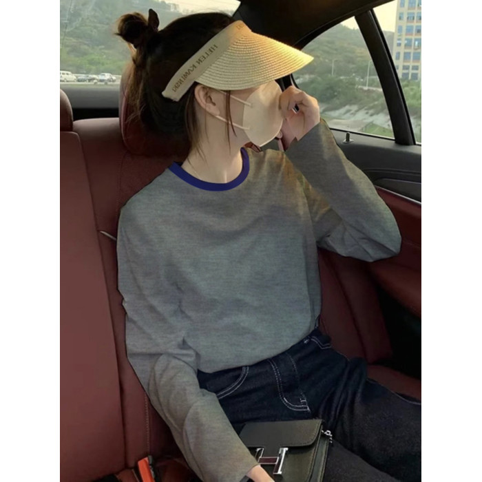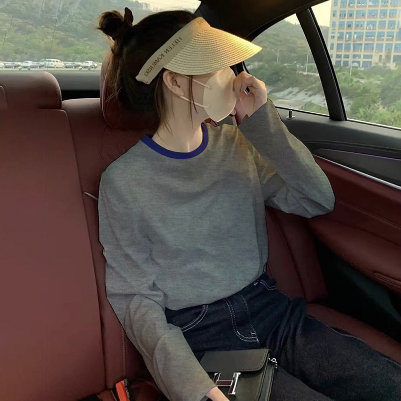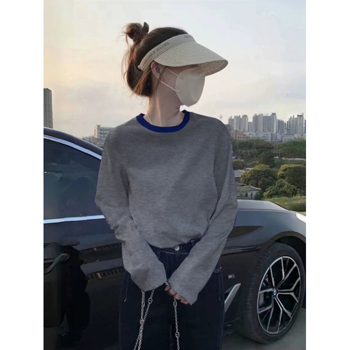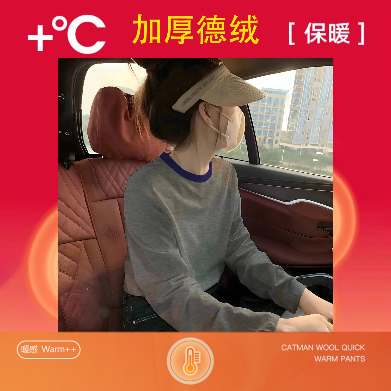 純棉t恤灰色打底衫內搭女秋季冬裝加厚德絨新款寬松減齡長袖上衣