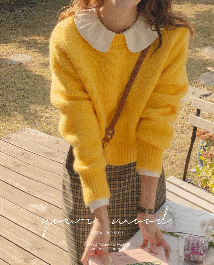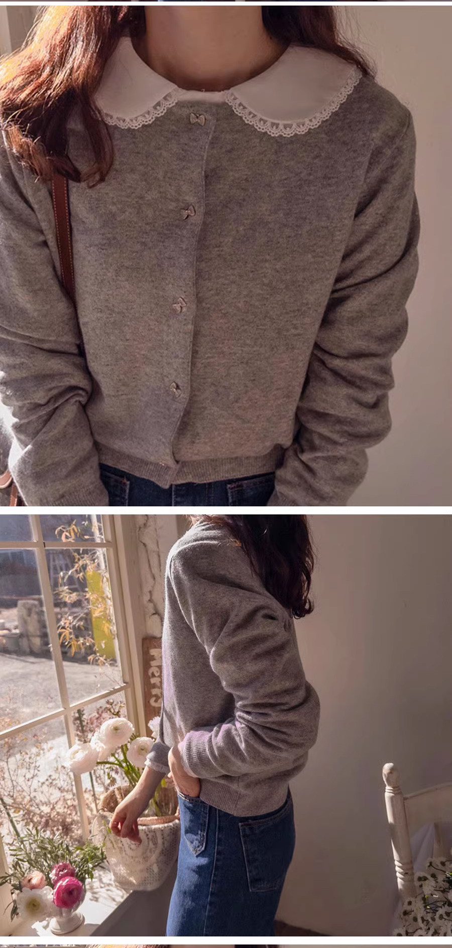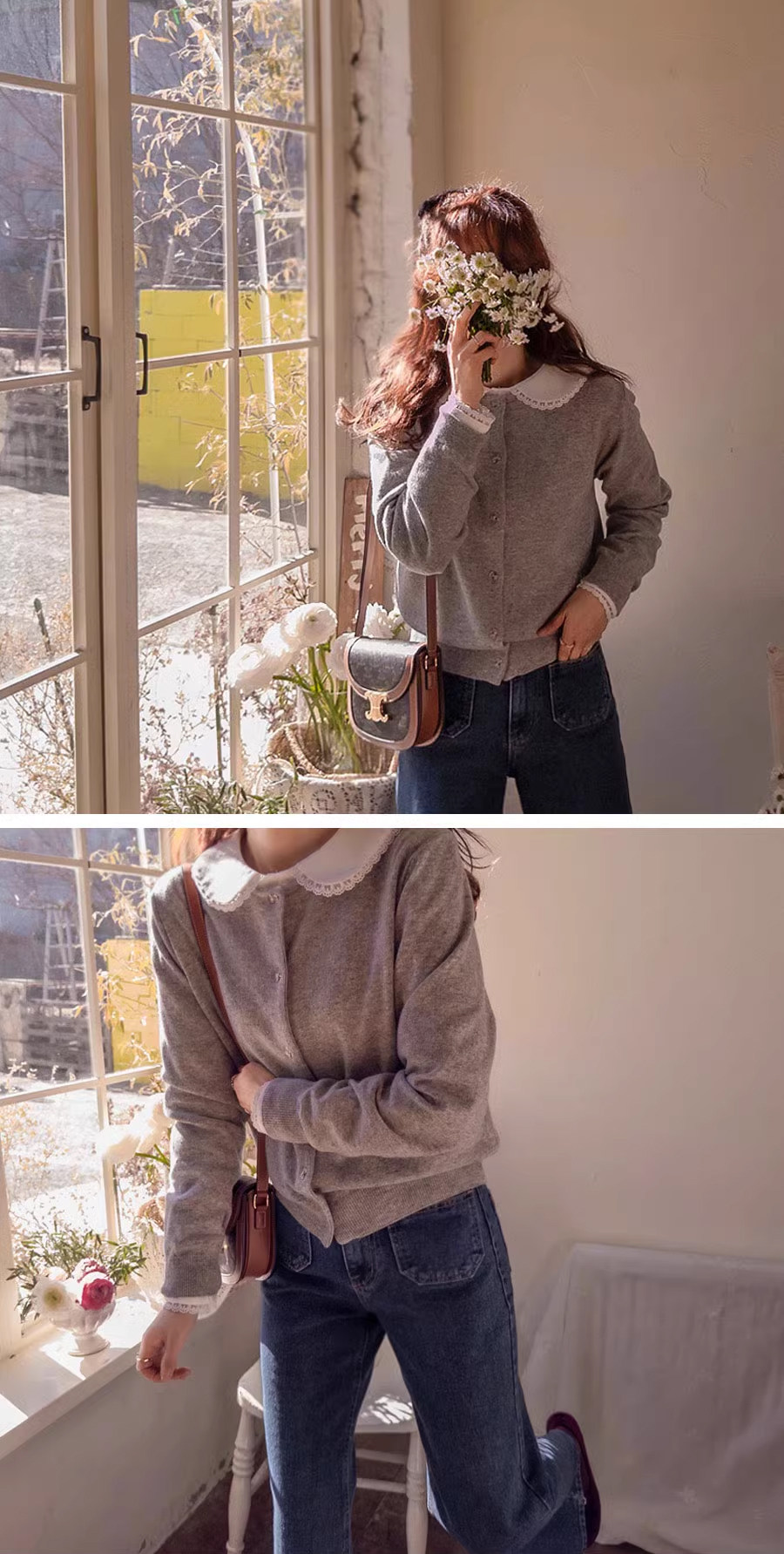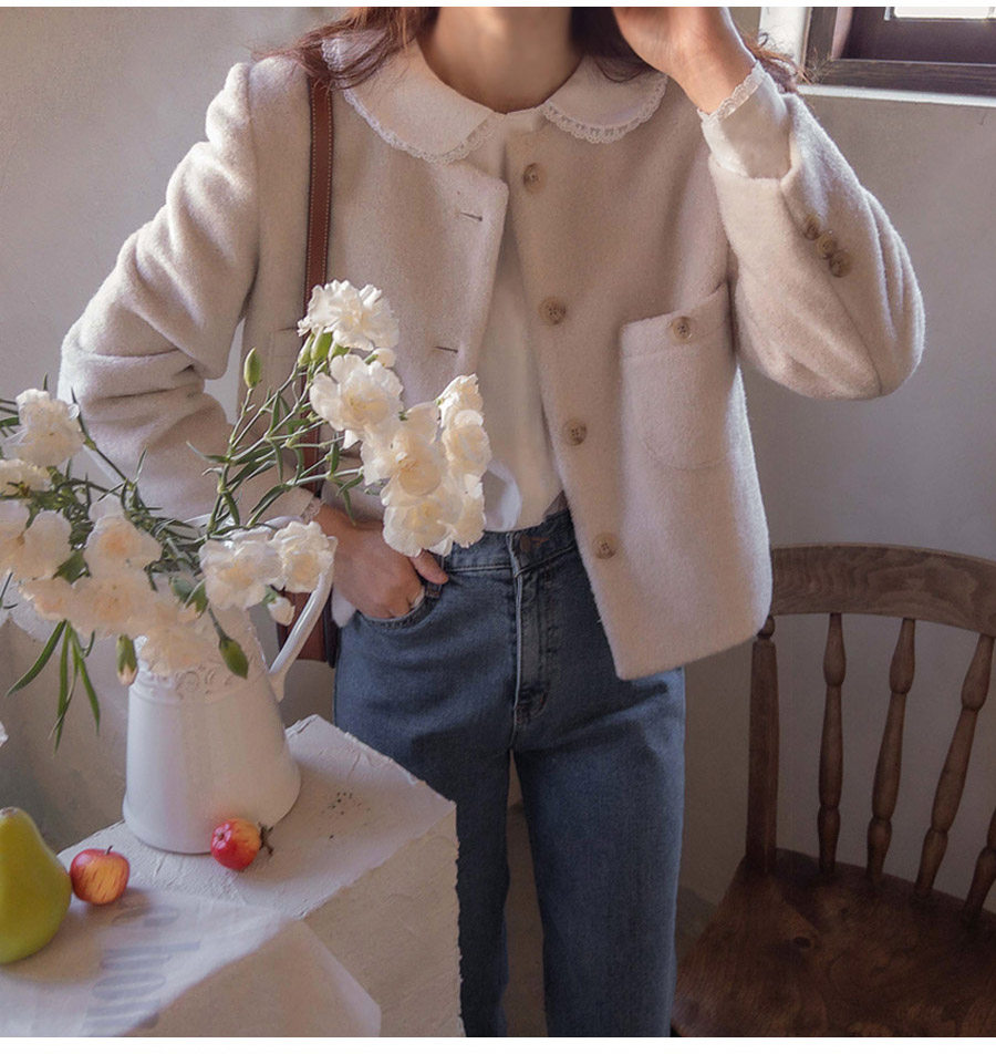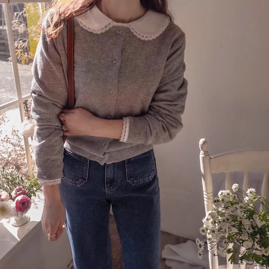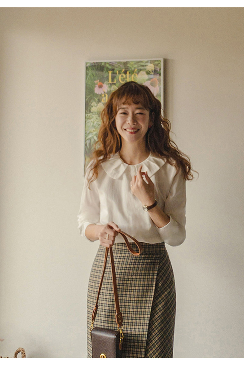 純棉蕾絲花邊拼接翻領娃娃領長袖打底衫T恤女上衣寬松襯衫白色潮