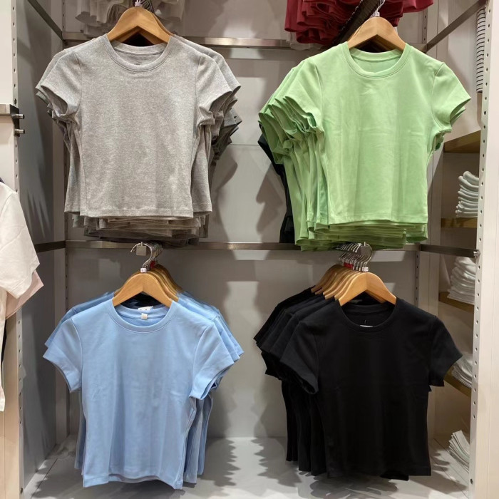 日單2024夏季款bm上衣辣妹t恤女裝圓領短袖T恤高腰修身打底465760