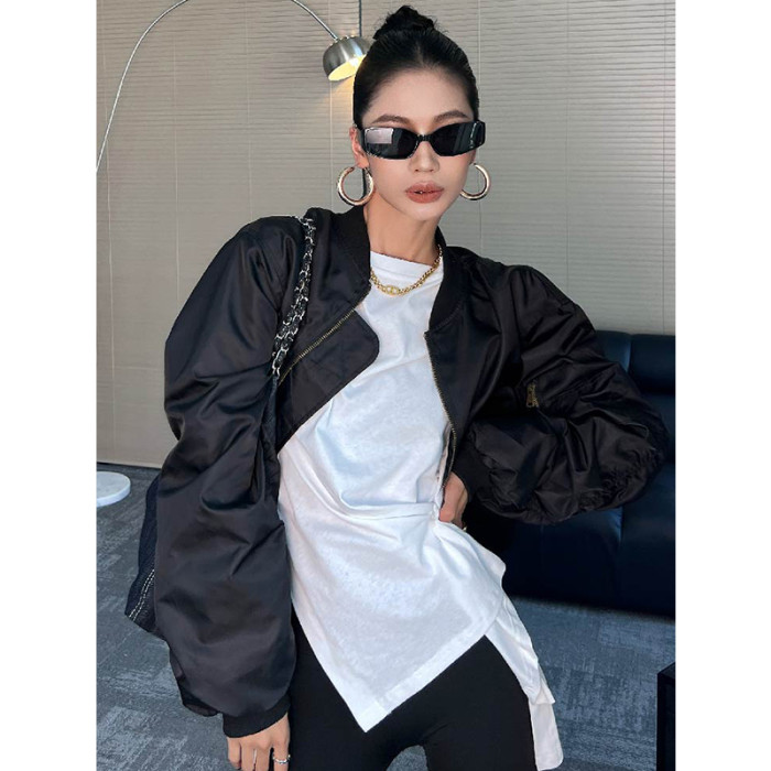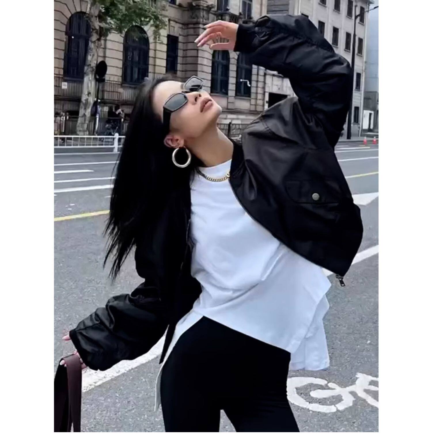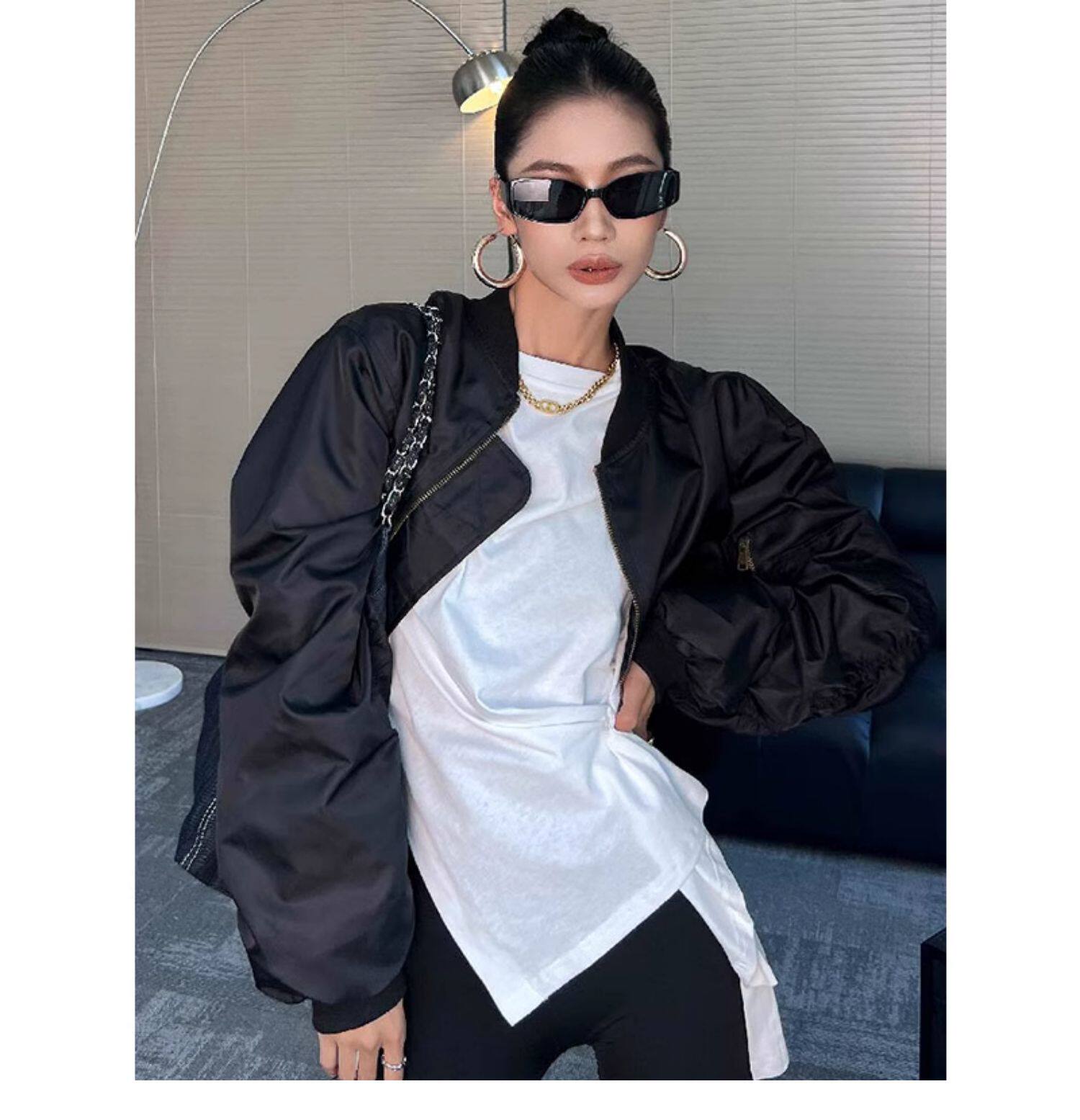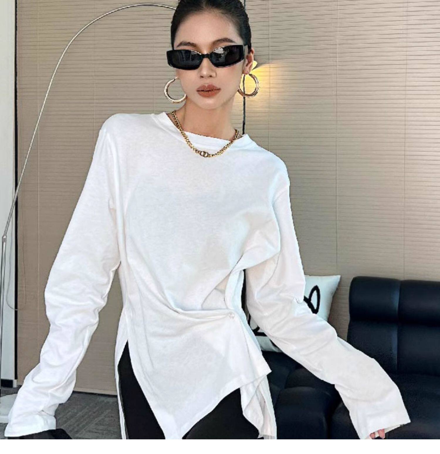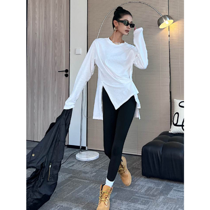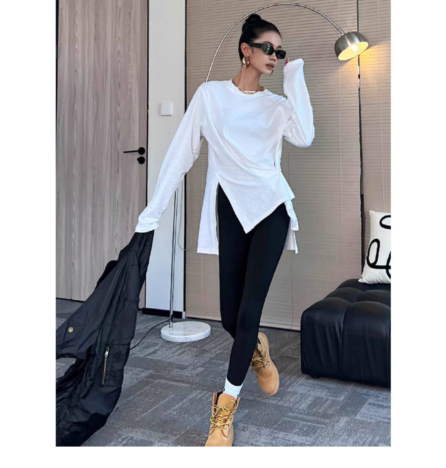 白色內搭t恤女裝2025早秋新款圓領不規則修身收腰開叉上衣打底衫