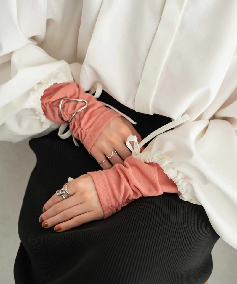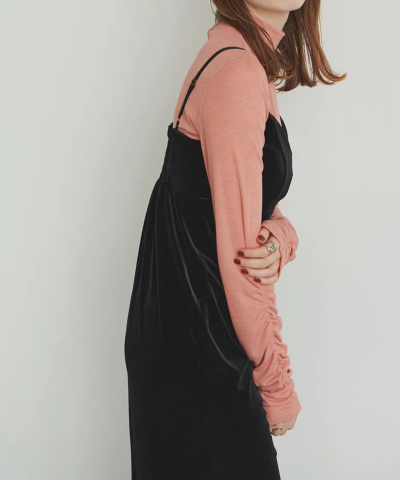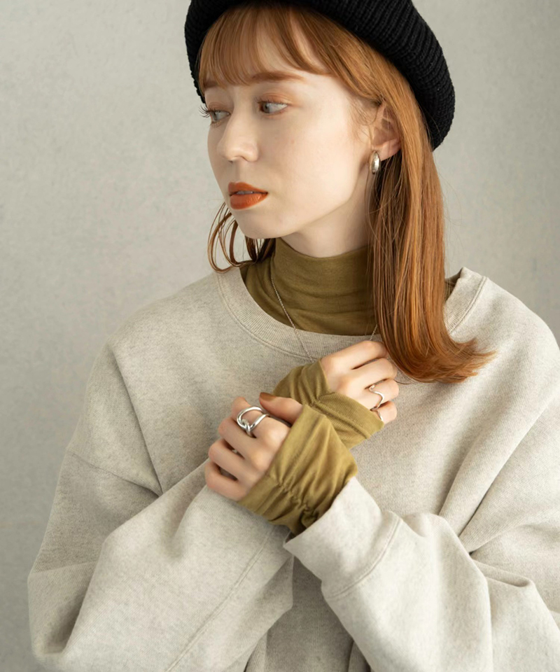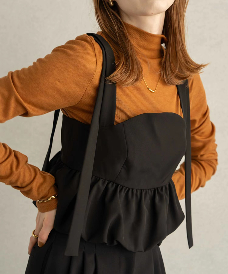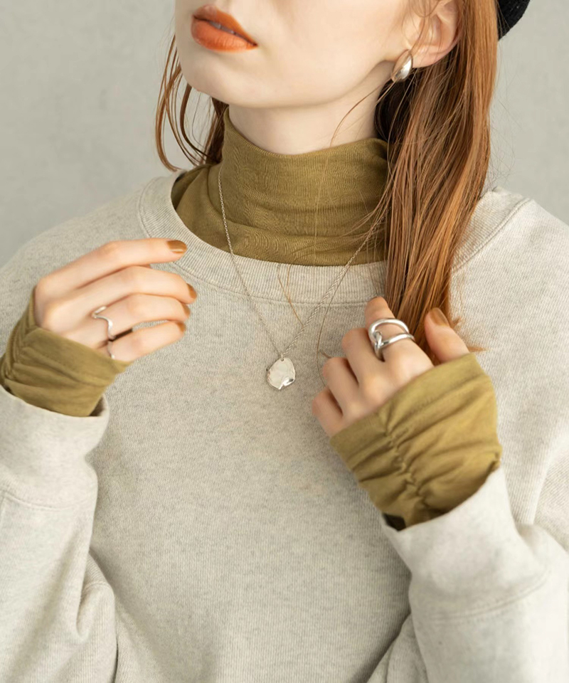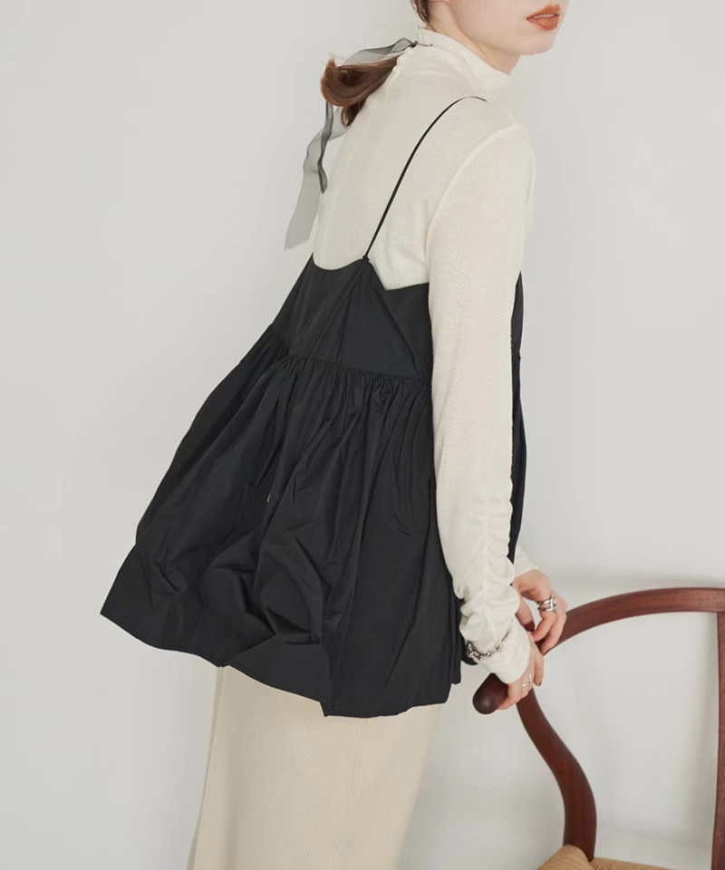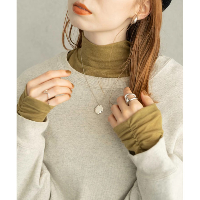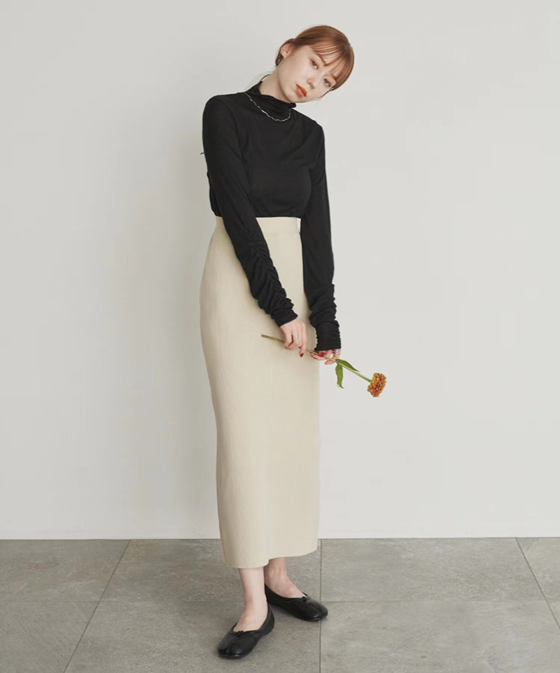 hin秋季新款薄款打底衫上衣女褶皺堆堆袖半高領上衣T恤女小衫