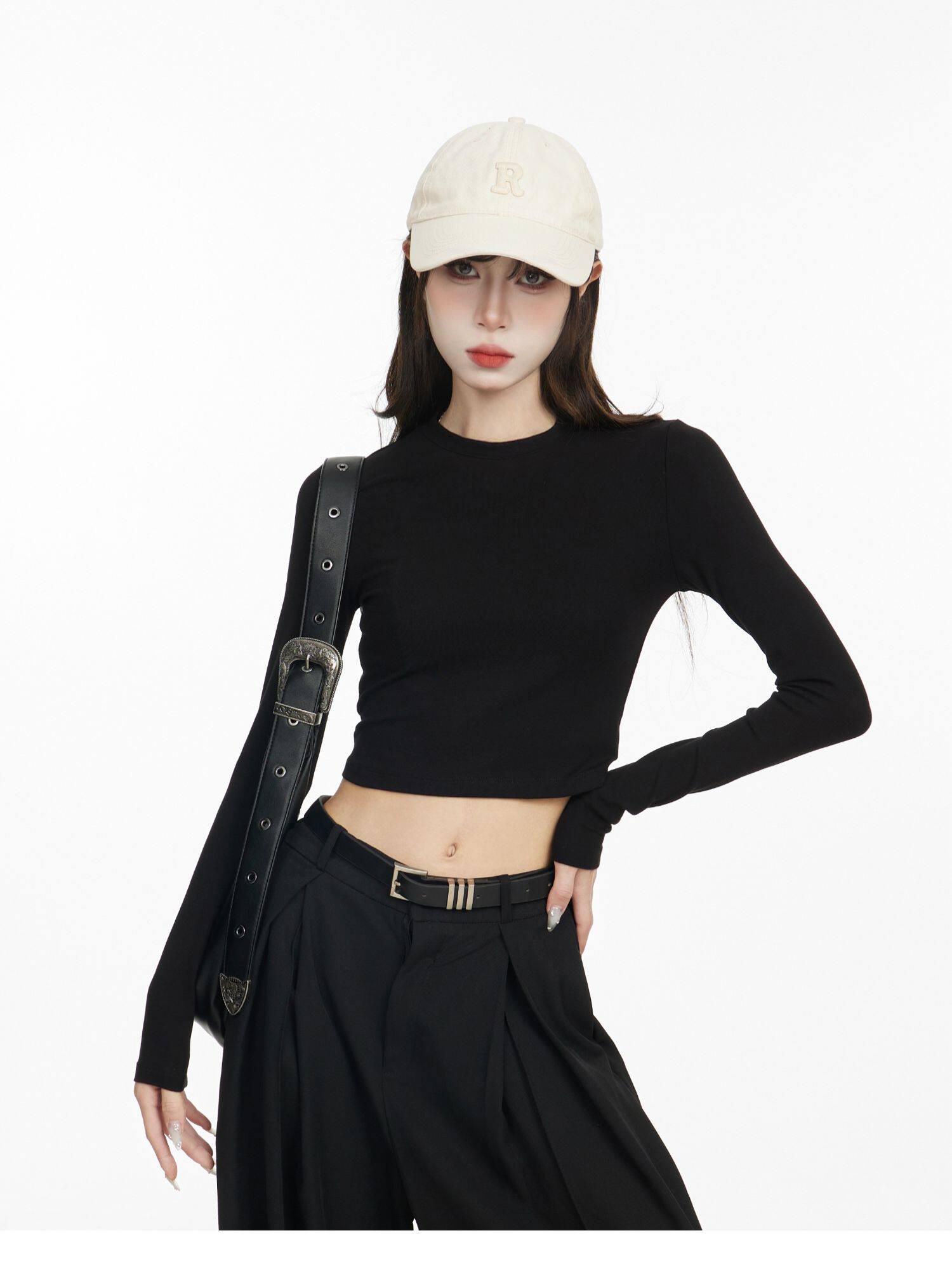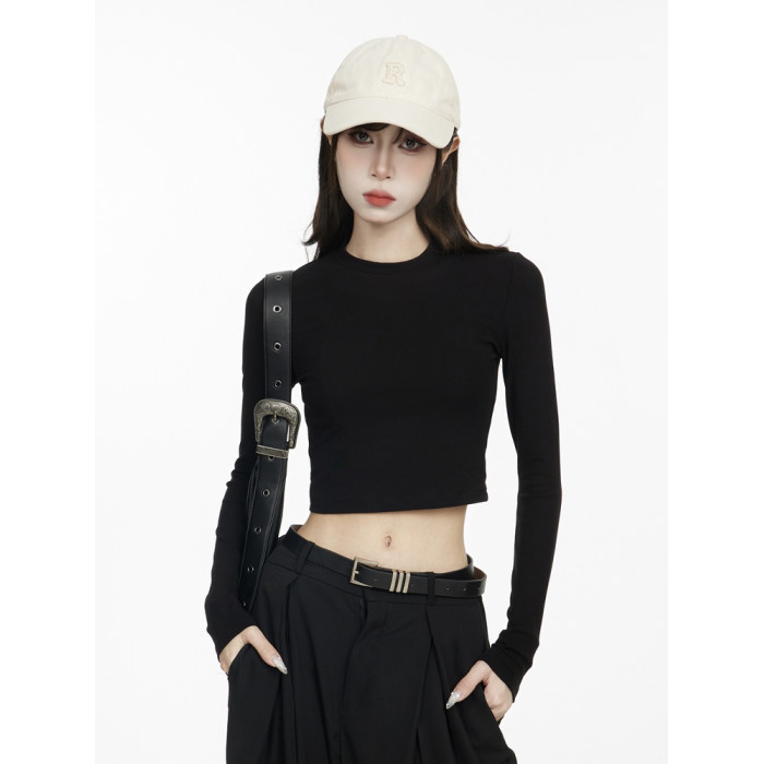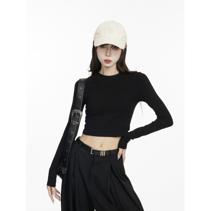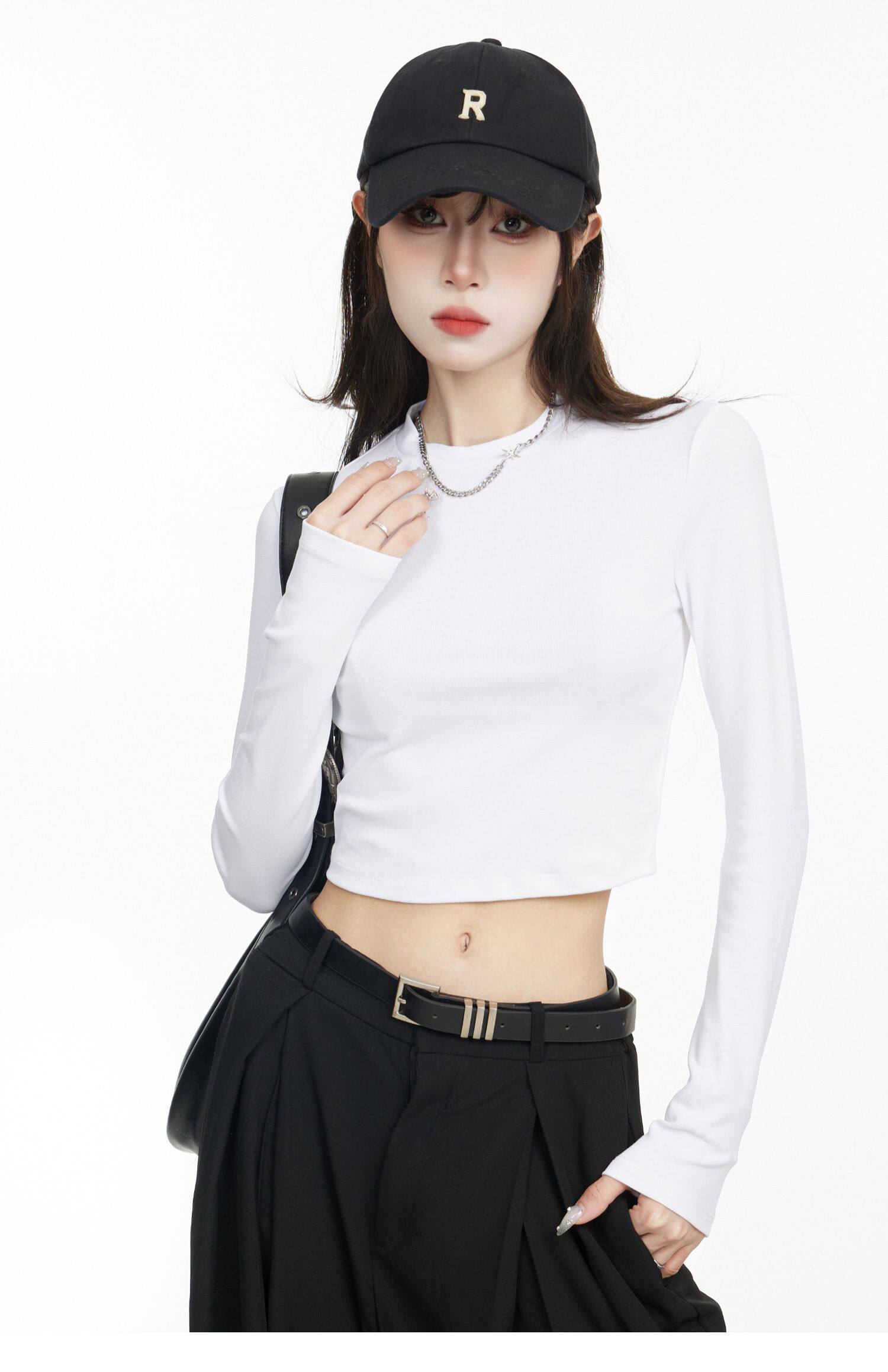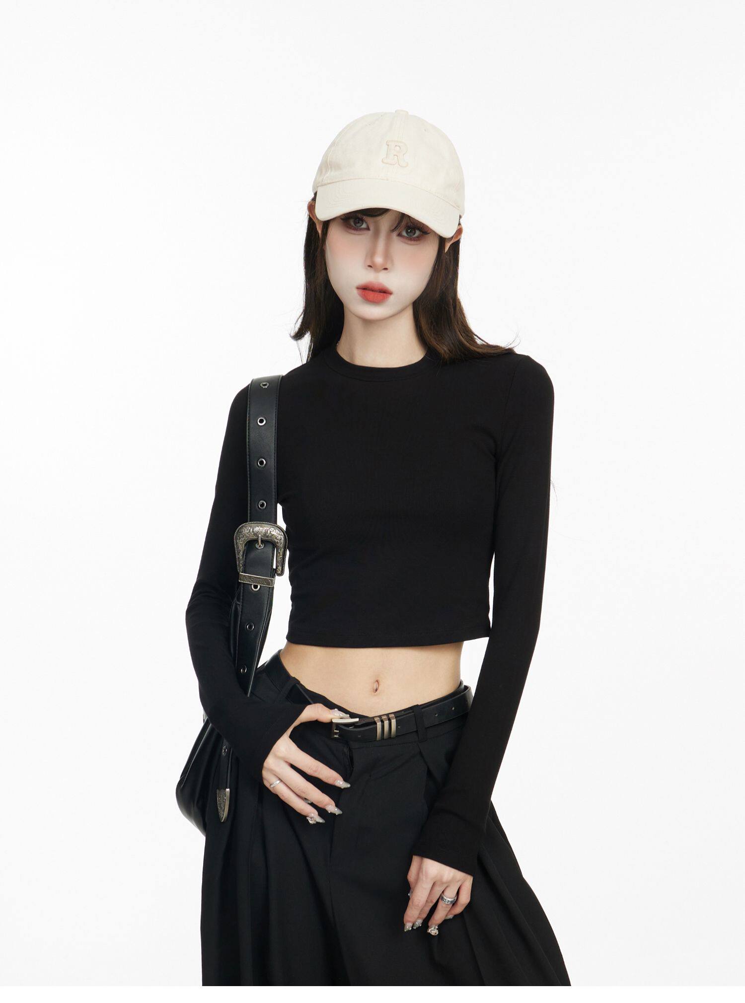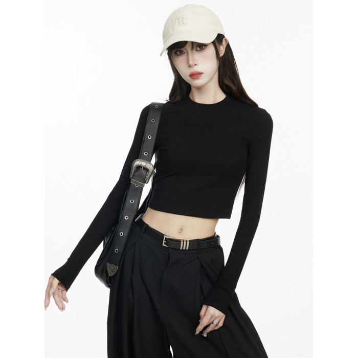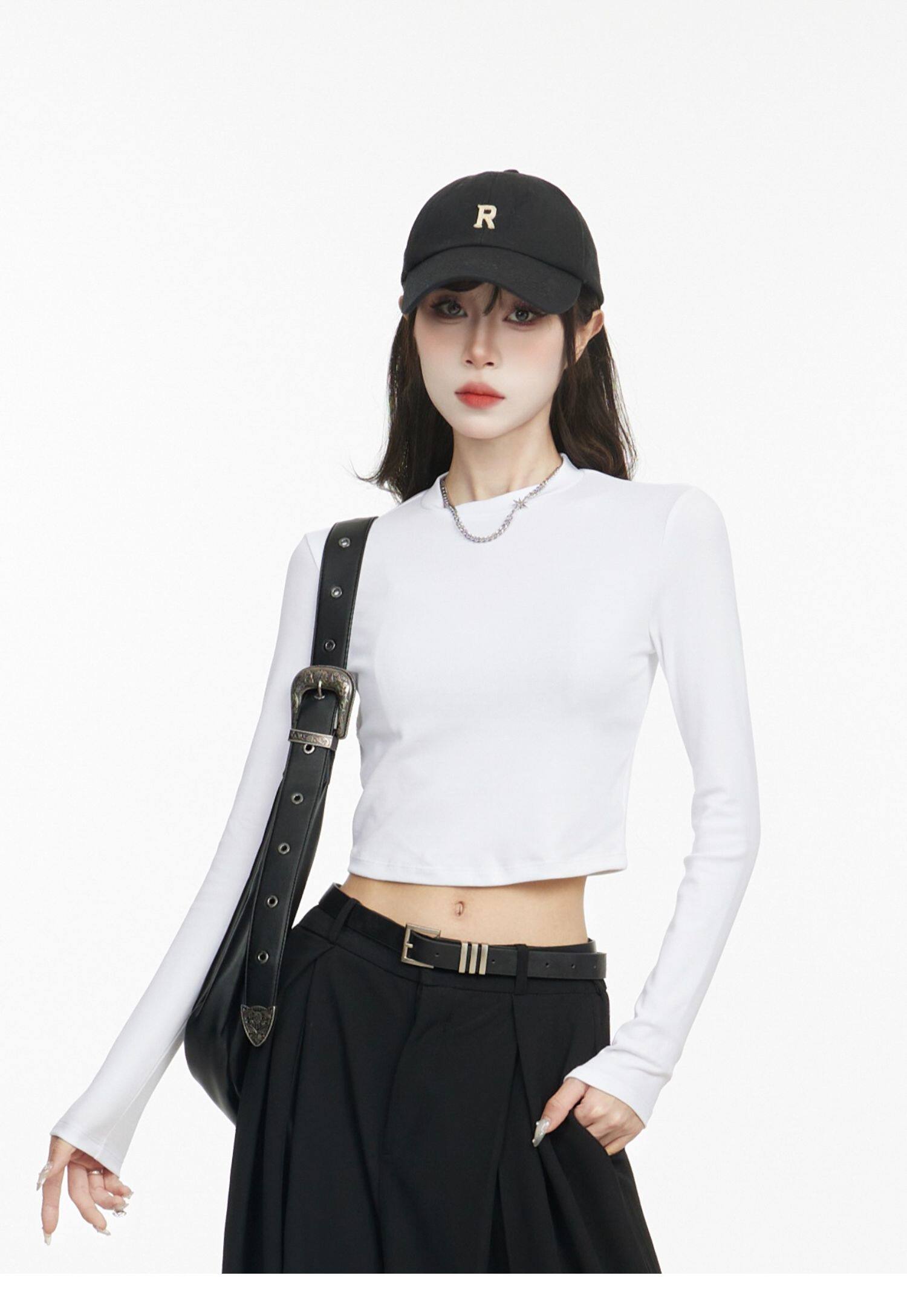 2025韓版新款修身長袖t恤女秋季短款小個子百搭內搭曡穿外穿上衣