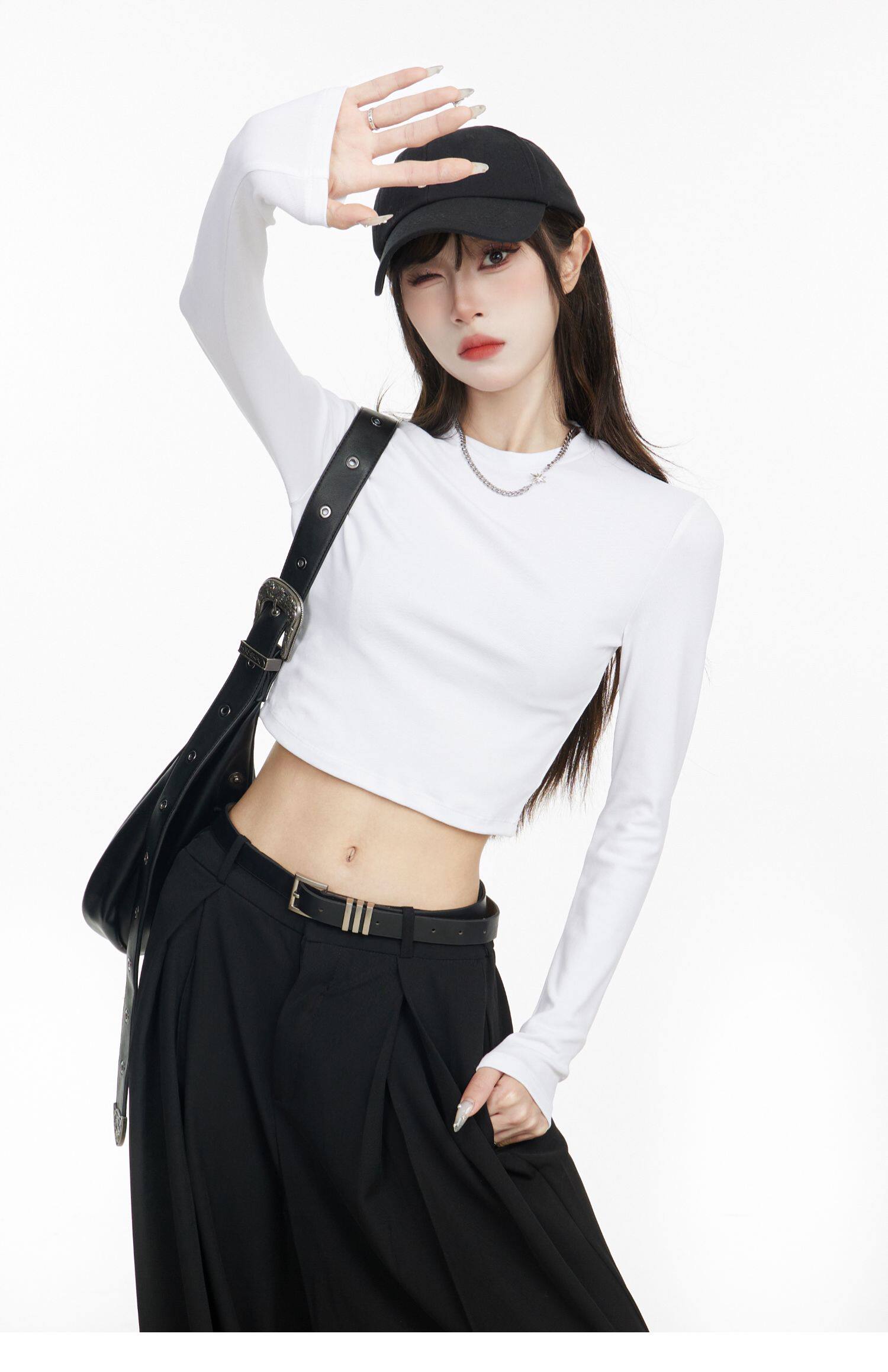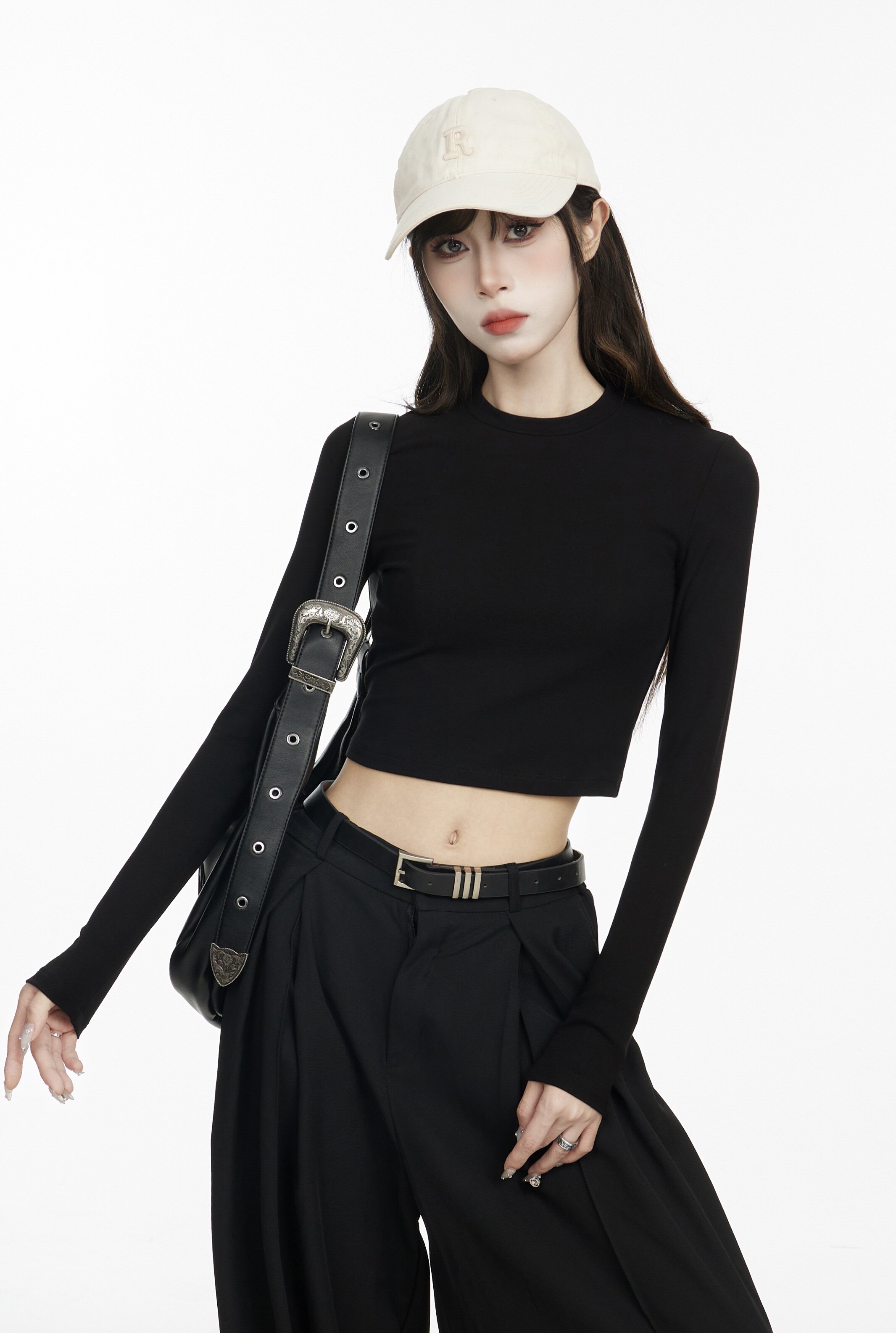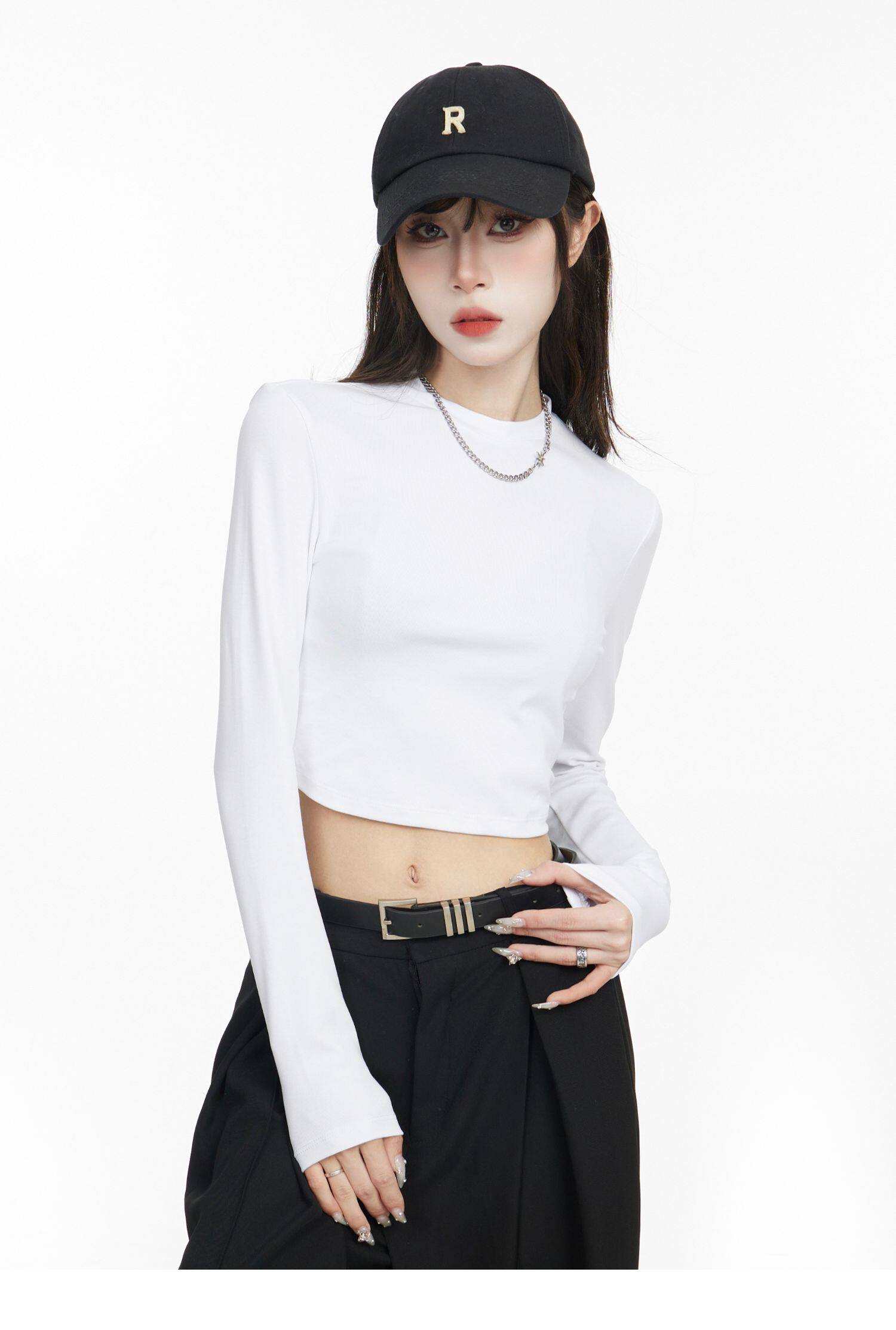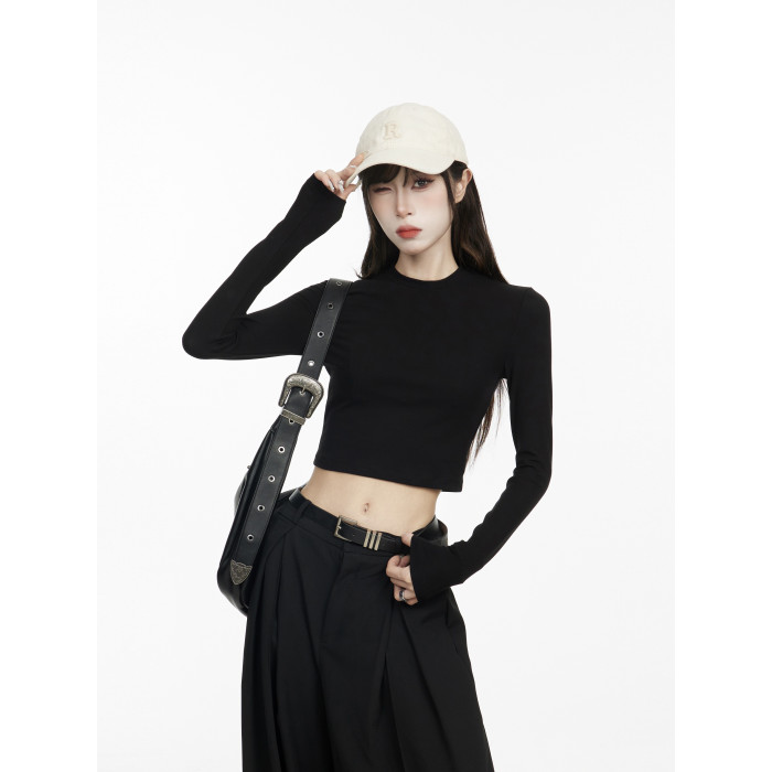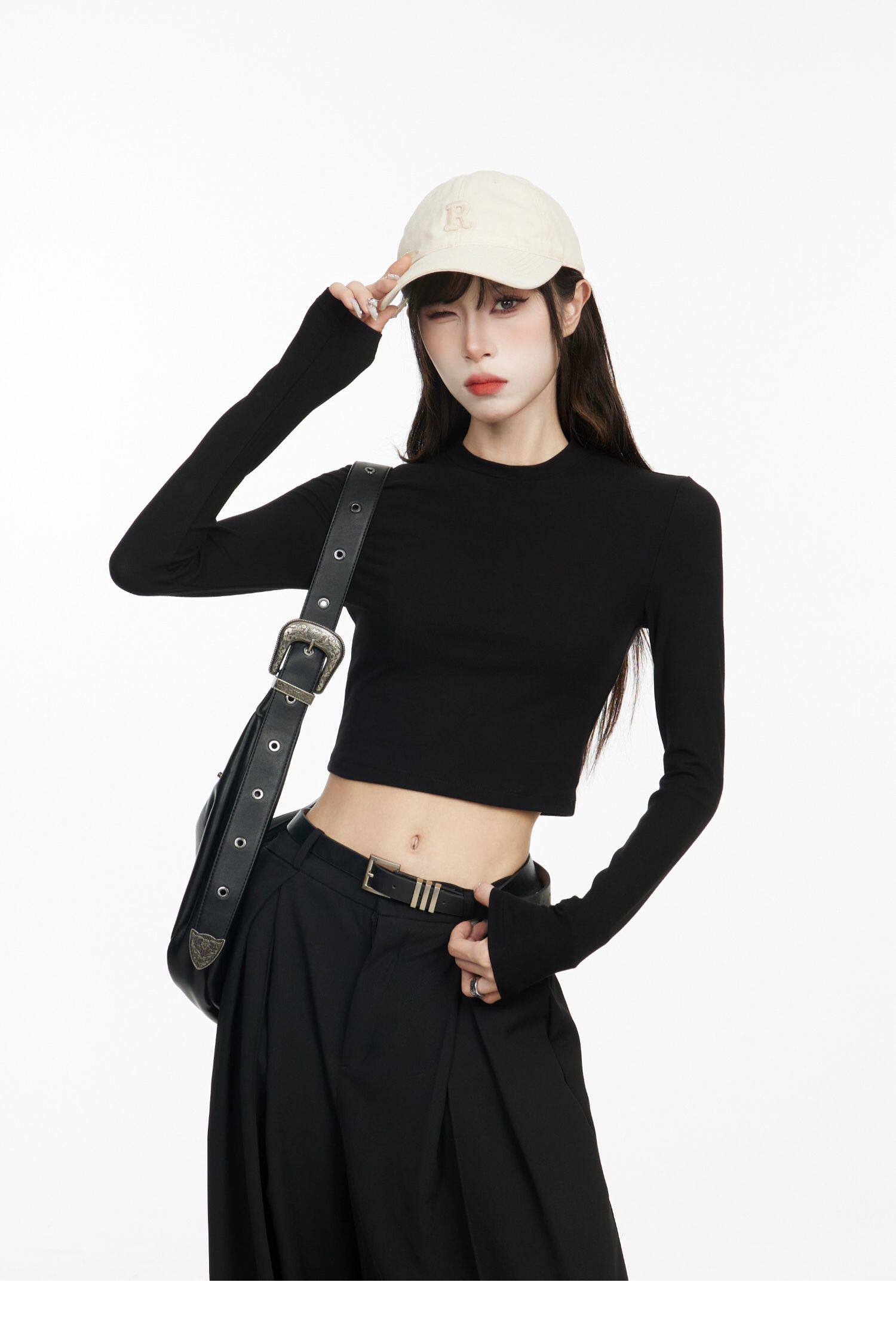 2025韓版新款修身長袖t恤女秋季短款小個子百搭內搭曡穿外穿上衣
