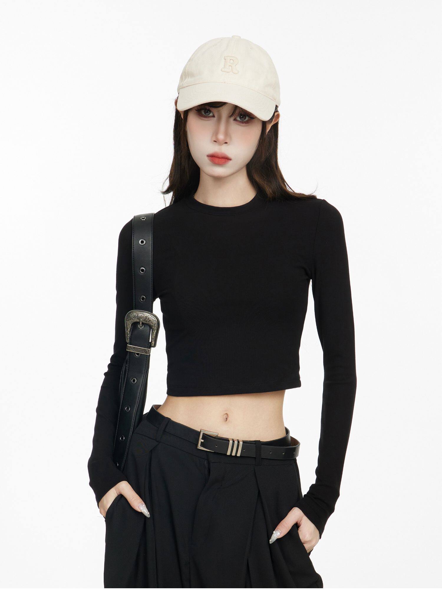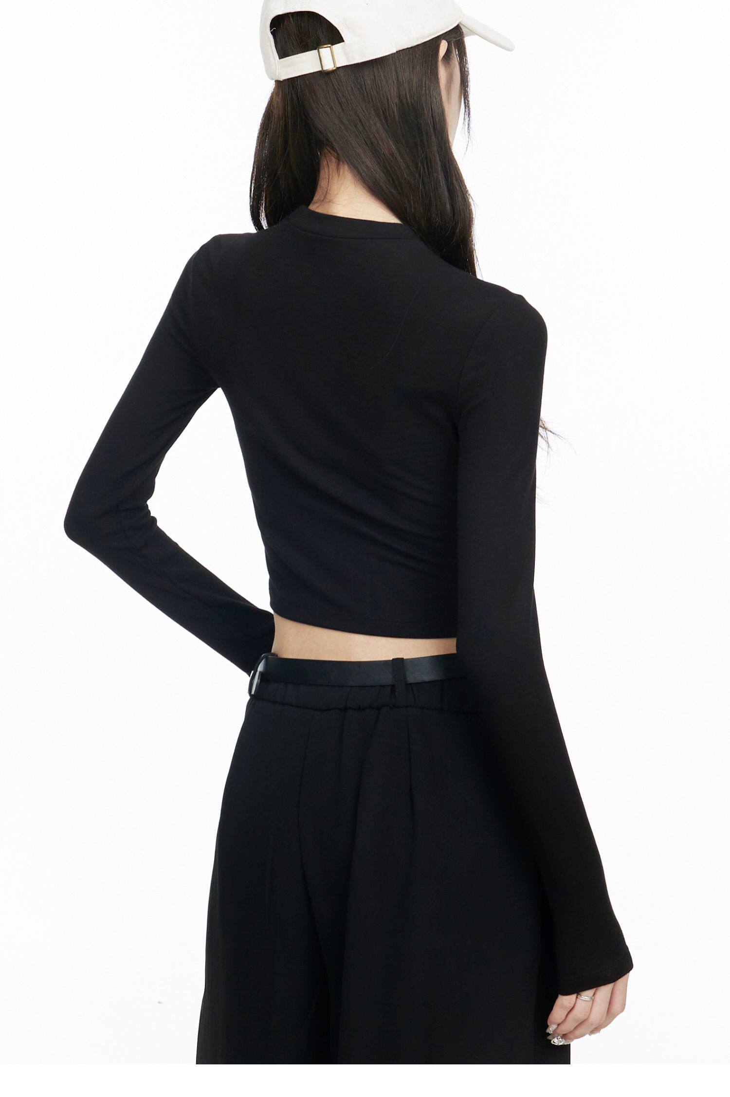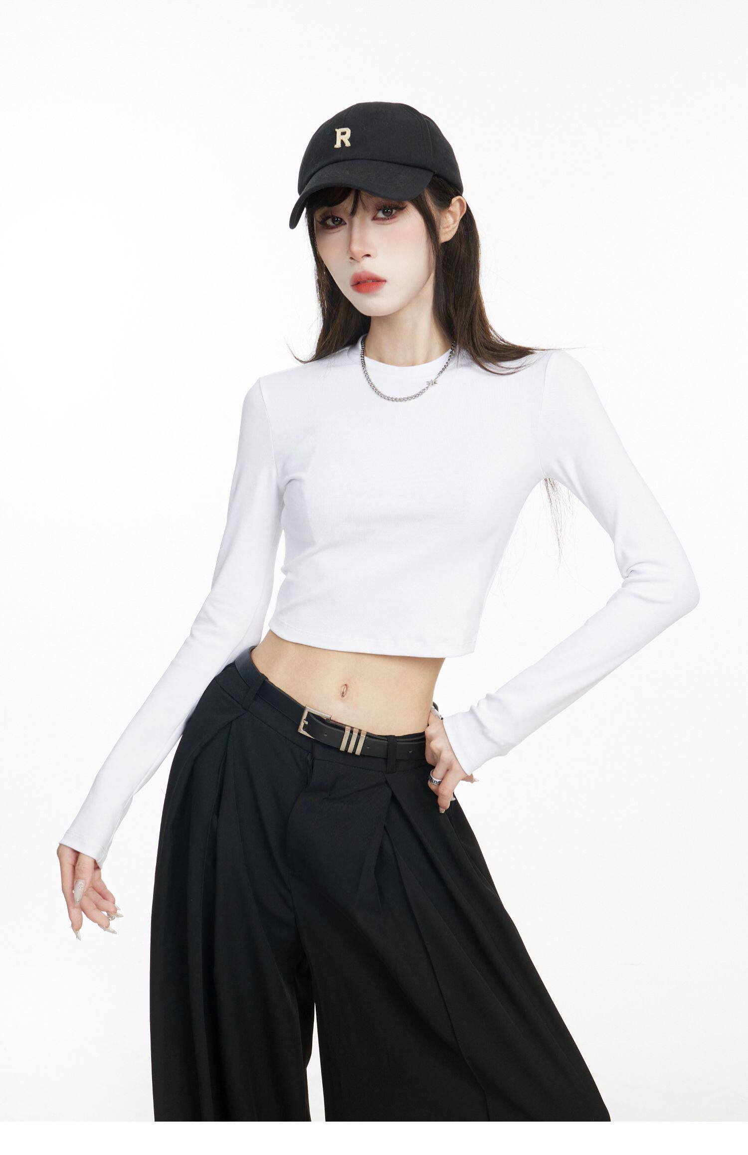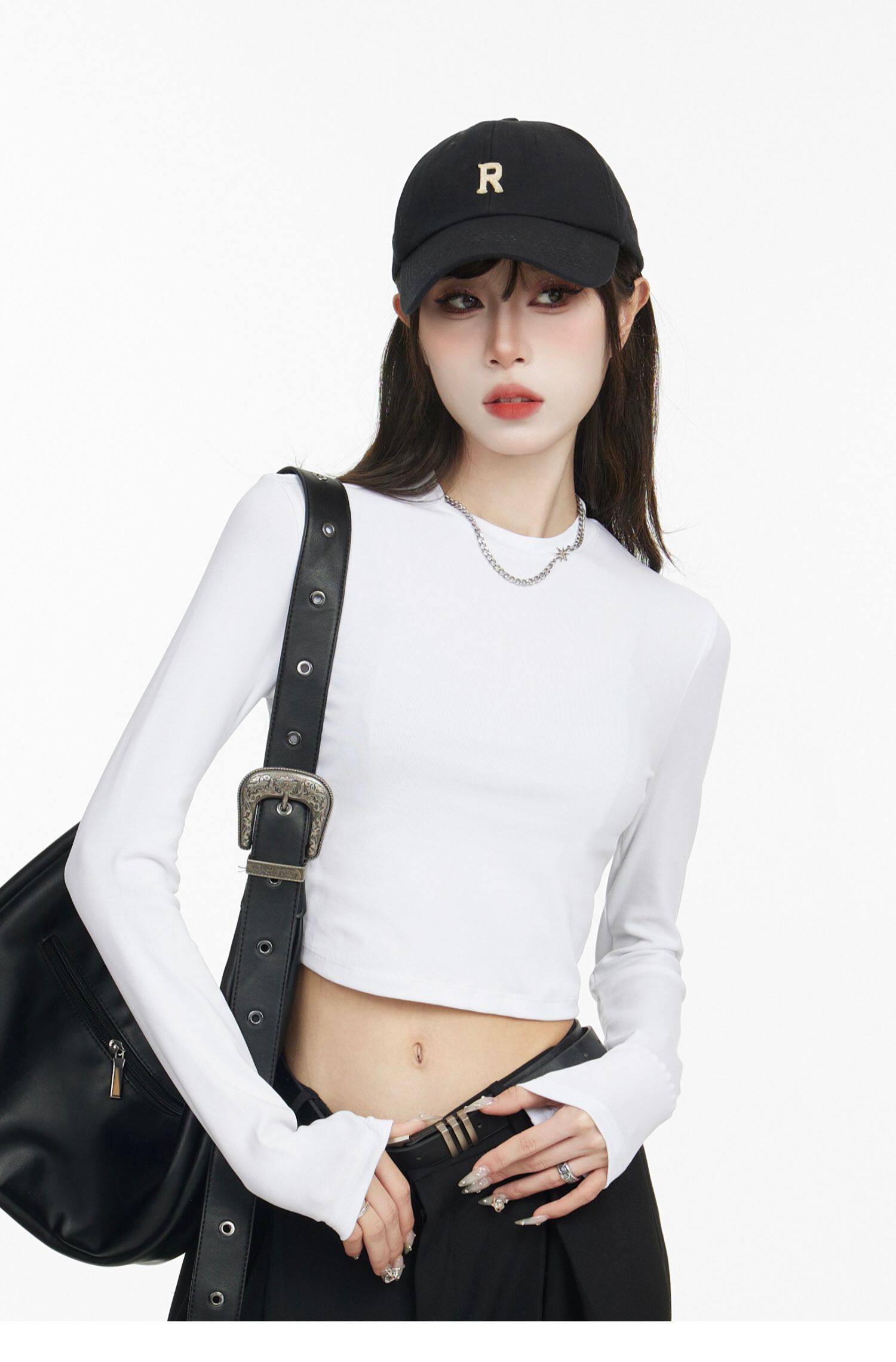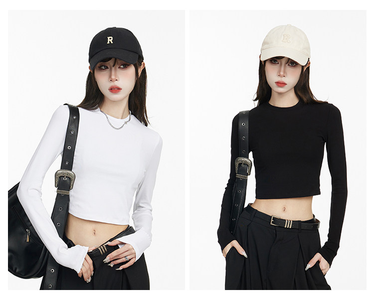 2025韓版新款修身長袖t恤女秋季短款小個子百搭內搭曡穿外穿上衣