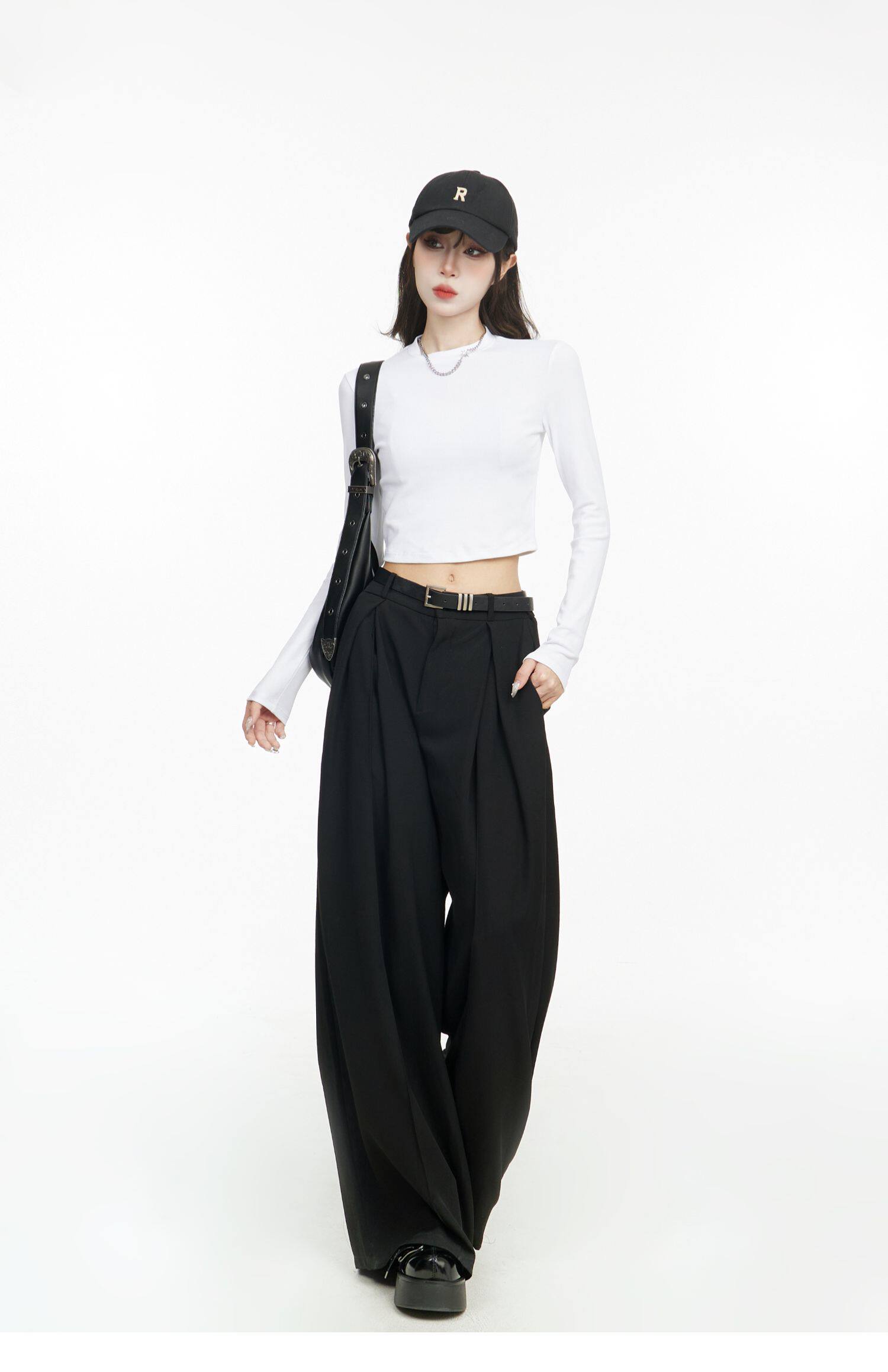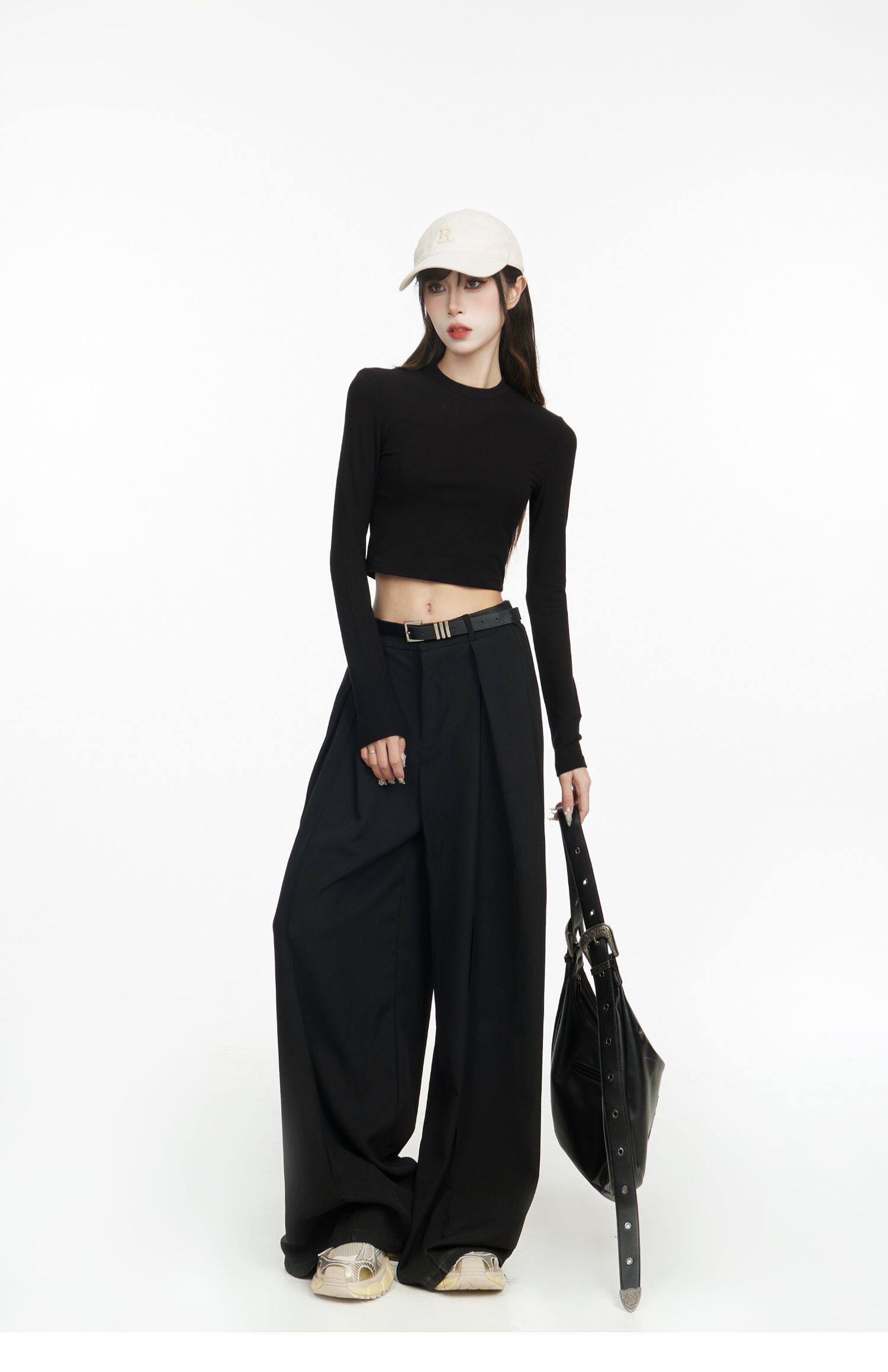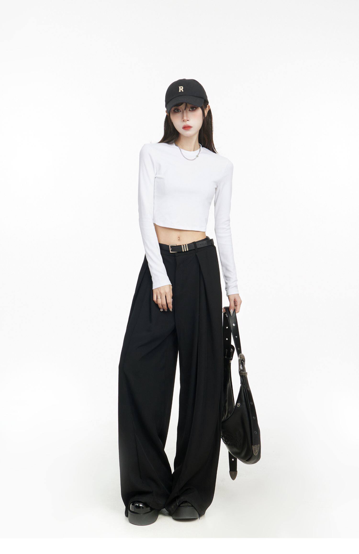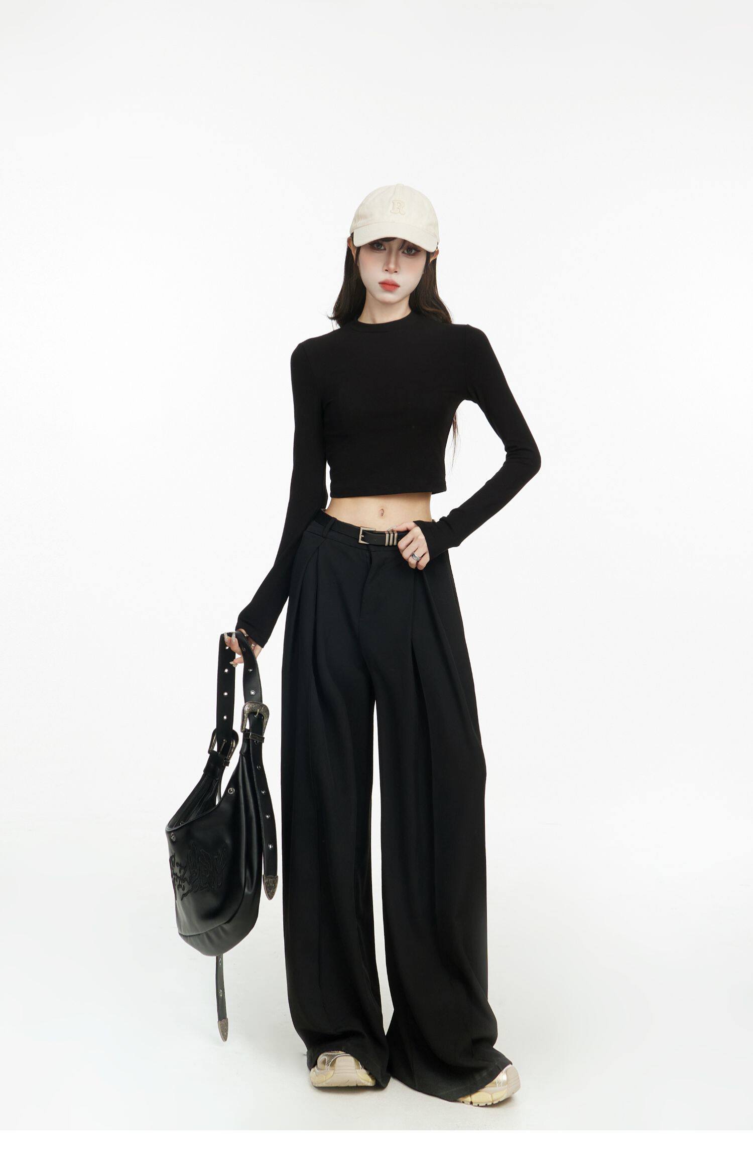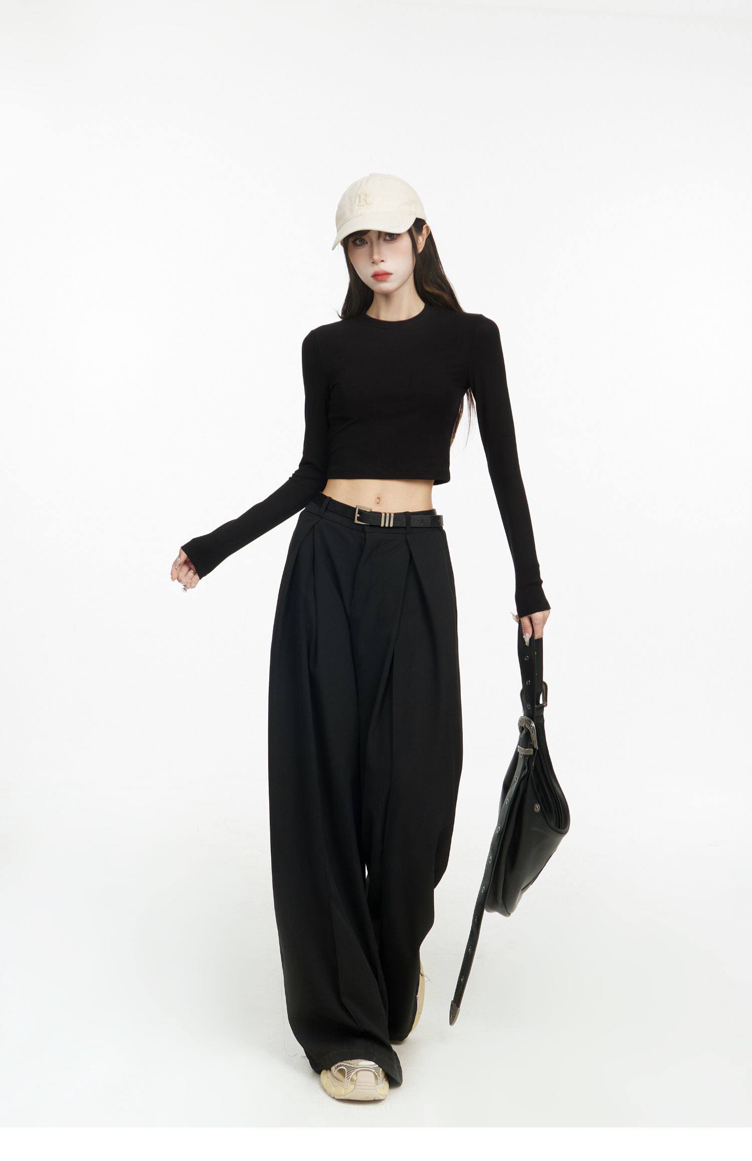 2025韓版新款修身長袖t恤女秋季短款小個子百搭內搭曡穿外穿上衣