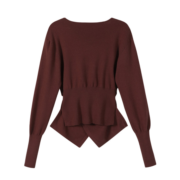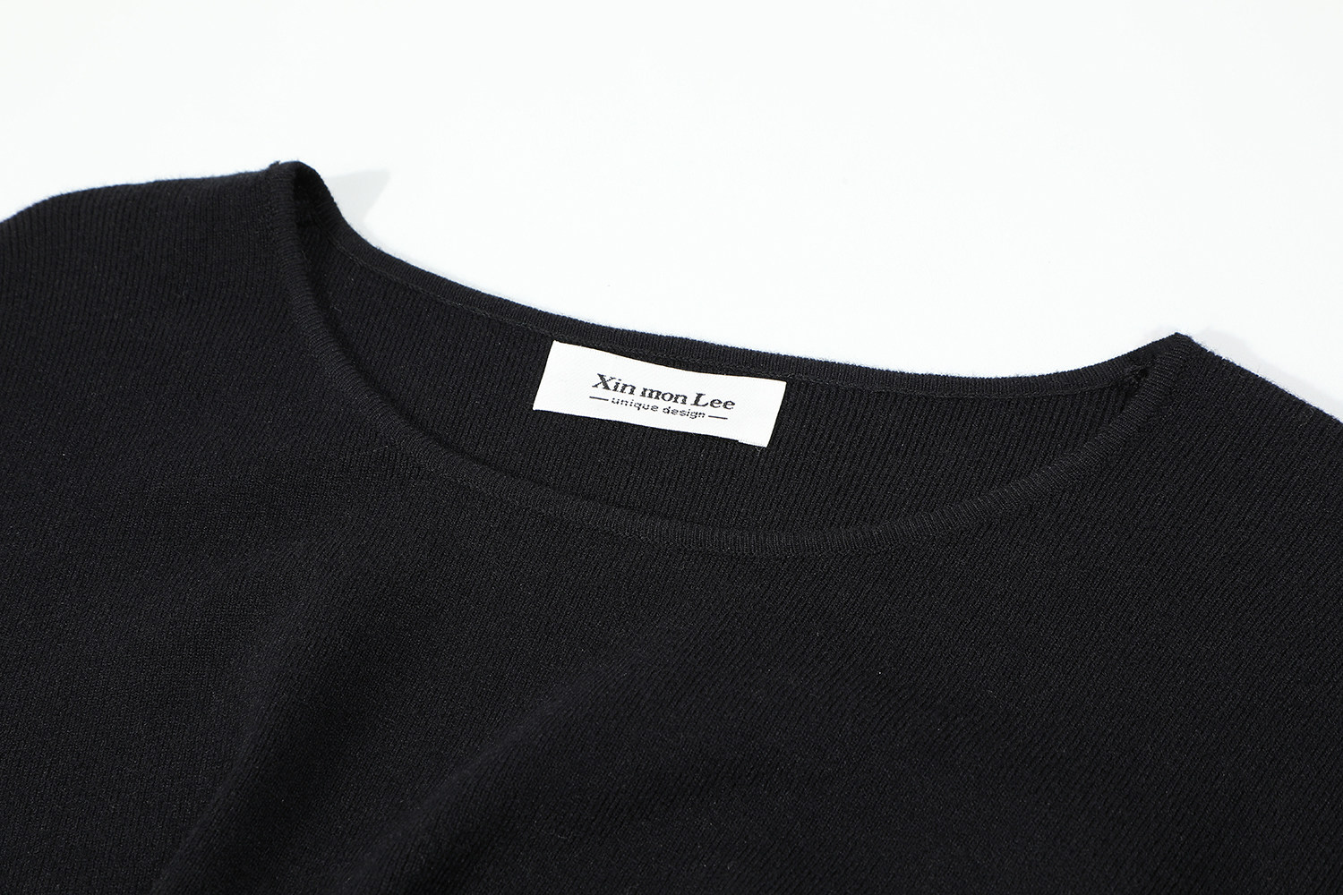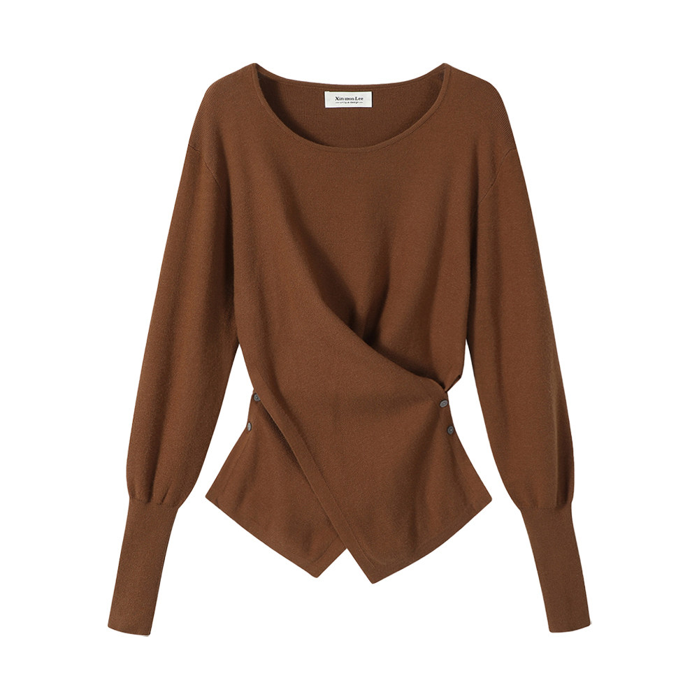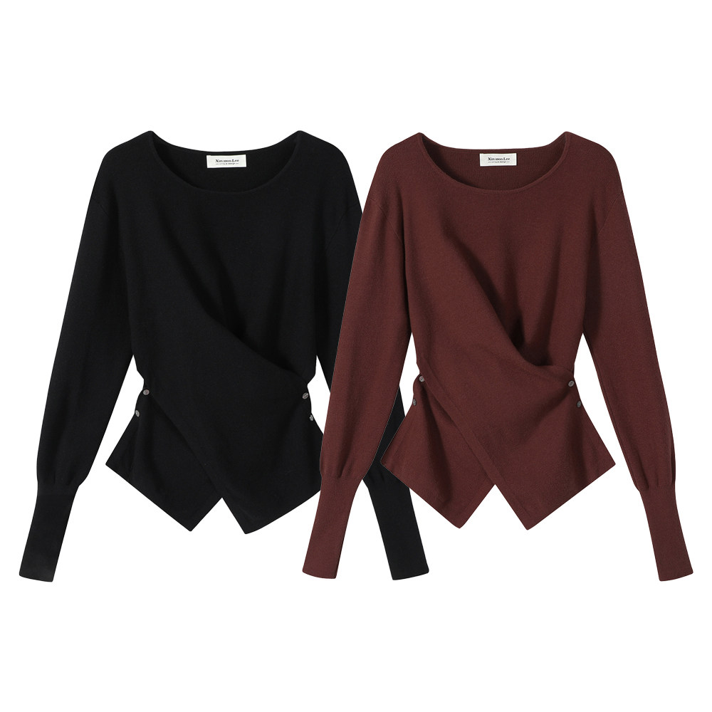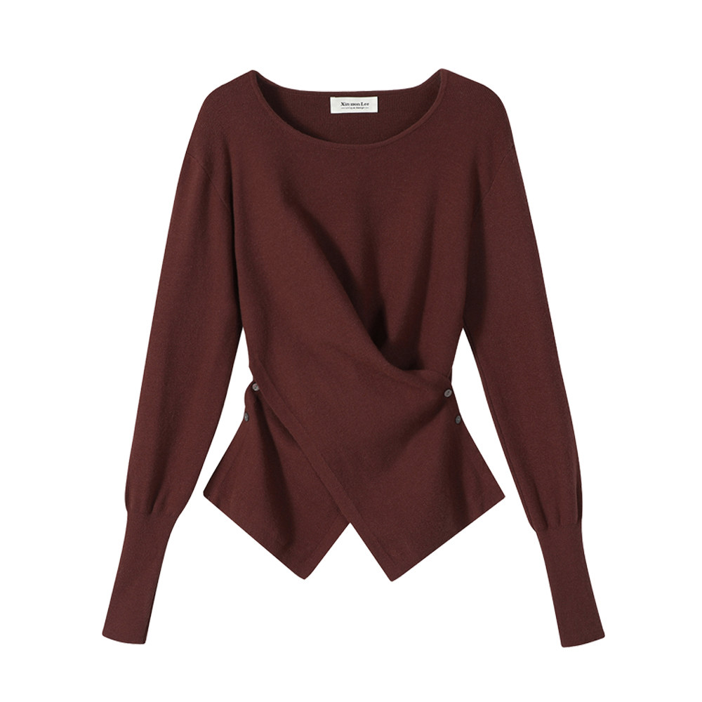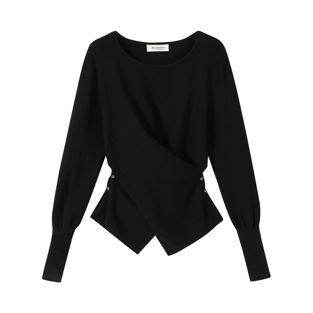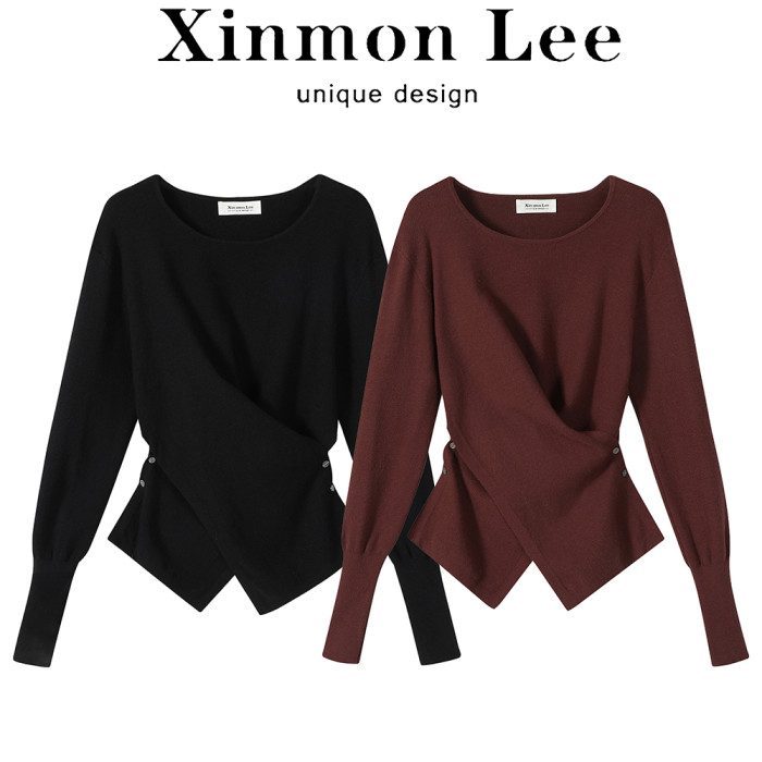 XinmonLee設計感別致獨特交叉釦收腰顯瘦針織衫不規則打底上衣秋