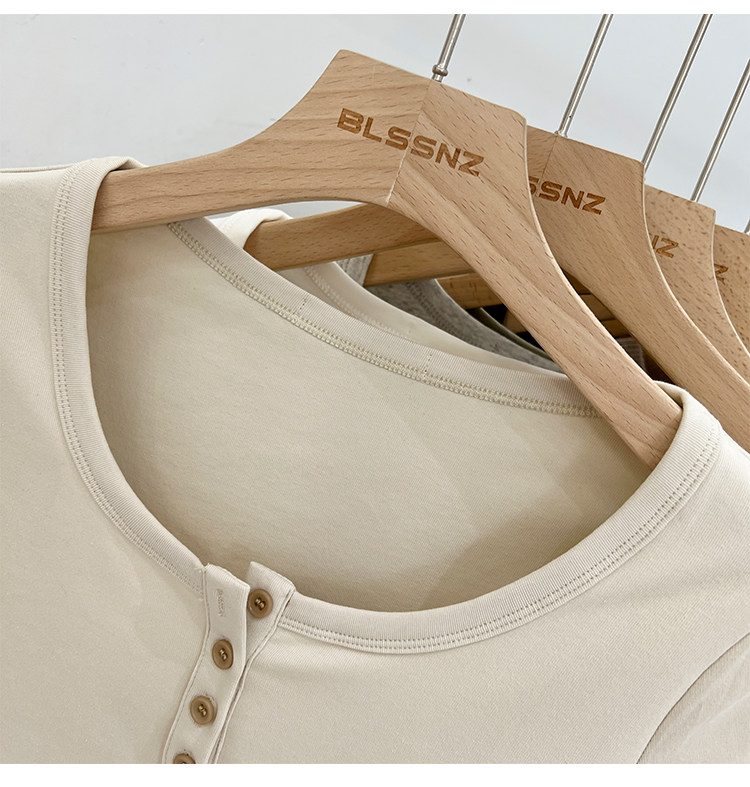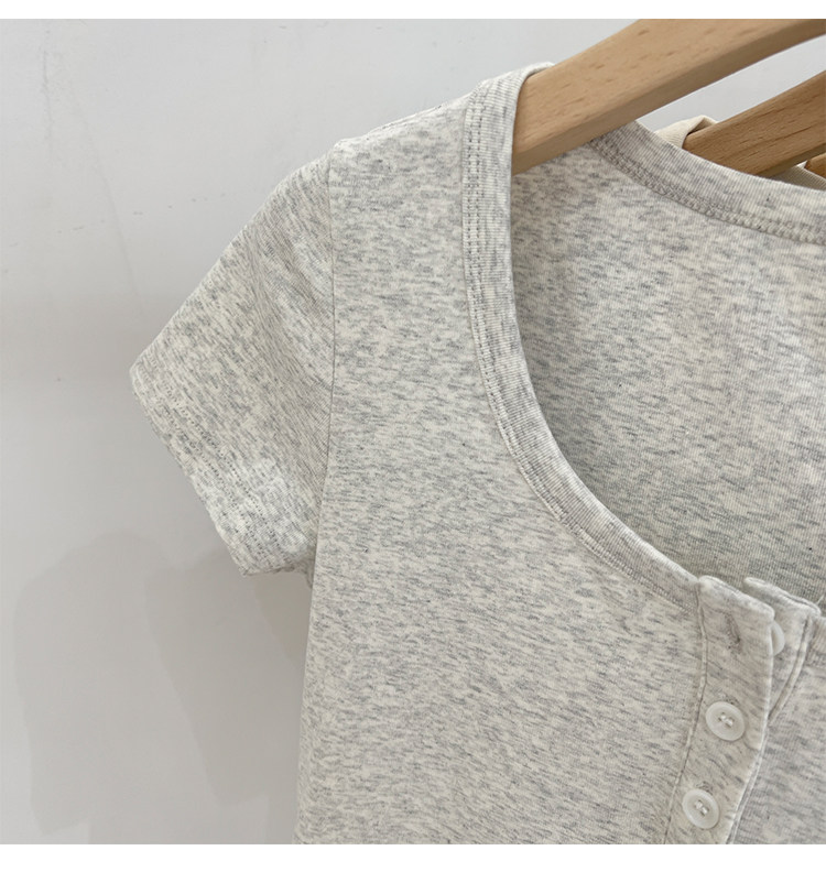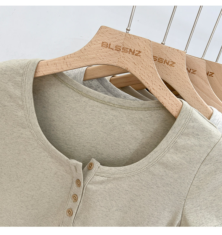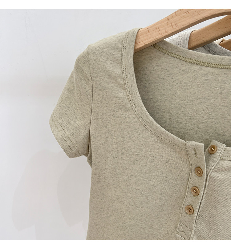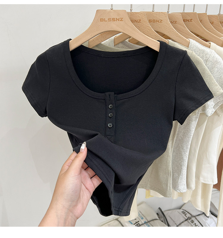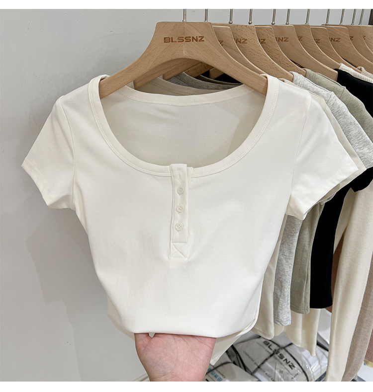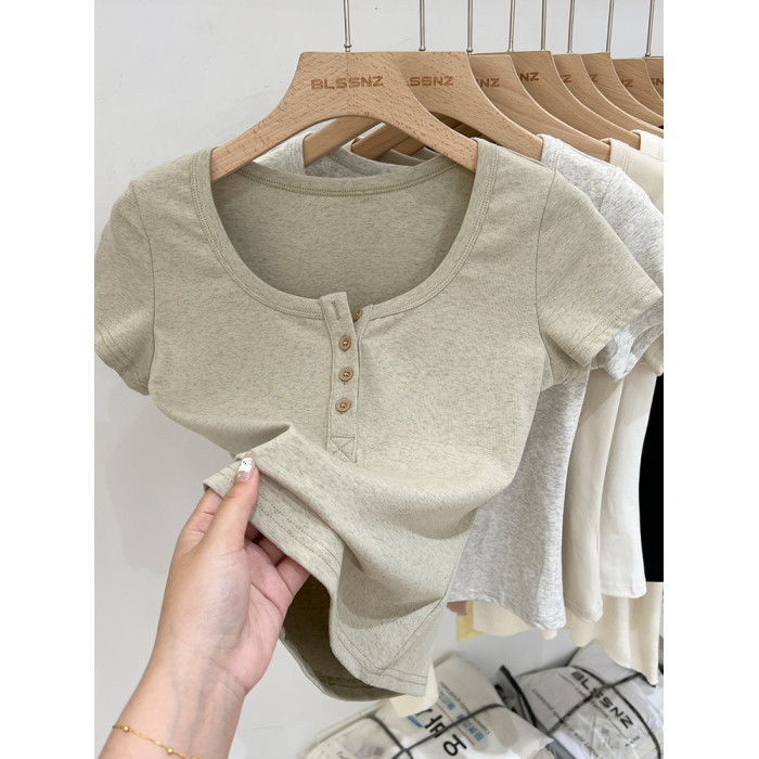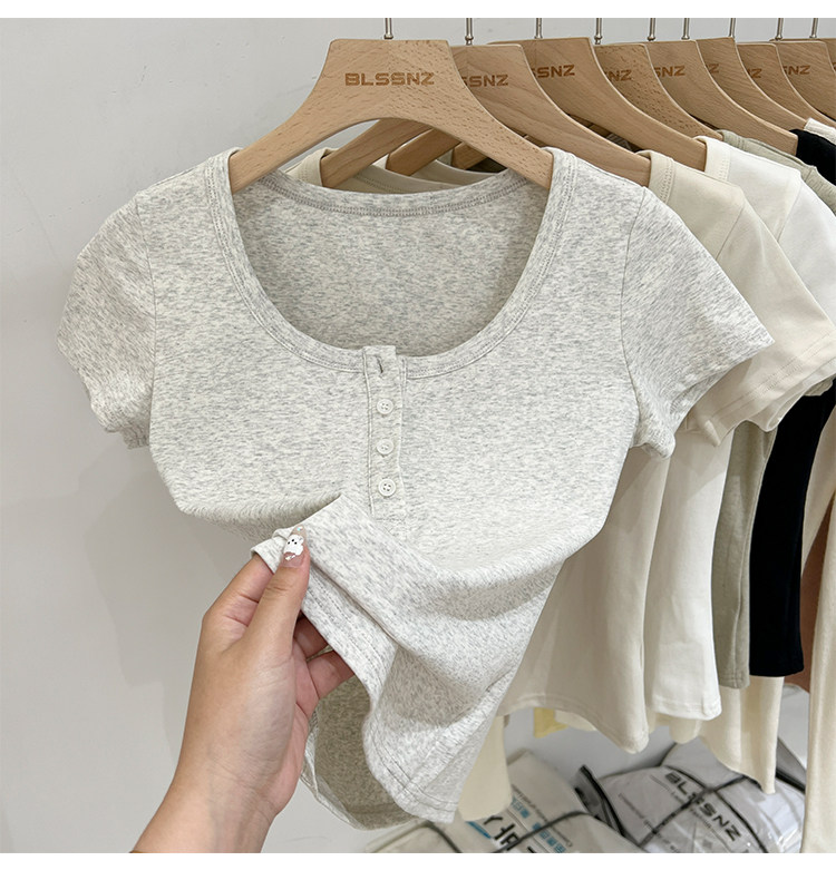 杏色純棉u領正肩短袖t恤女夏季2025新款純色修身短款上衣半袖體恤