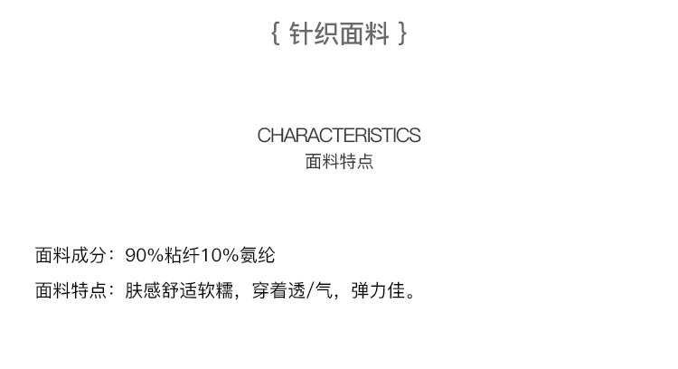 材質成分 粘膠纖維(粘纖)90% 聚氨酯彈性纖維(氨綸)10%