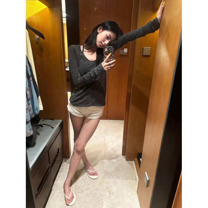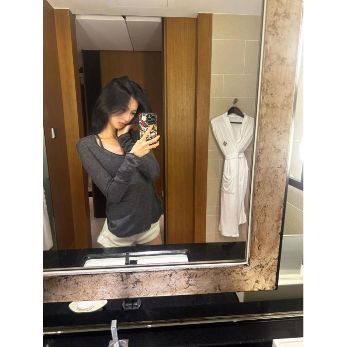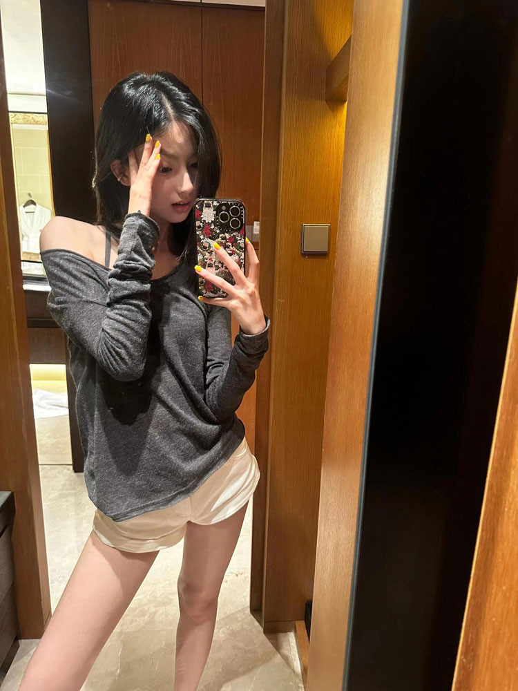 純欲辣妹大領口長袖t恤女夏季2025新款防曬衣罩衫高級松弛感上衣