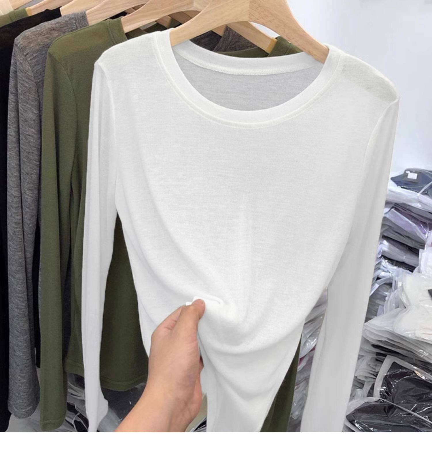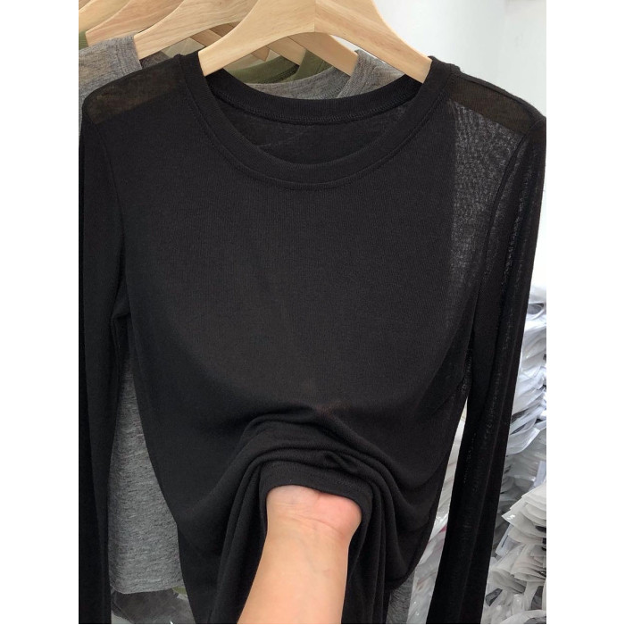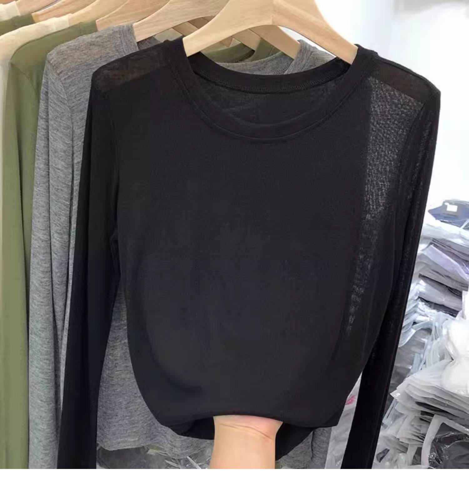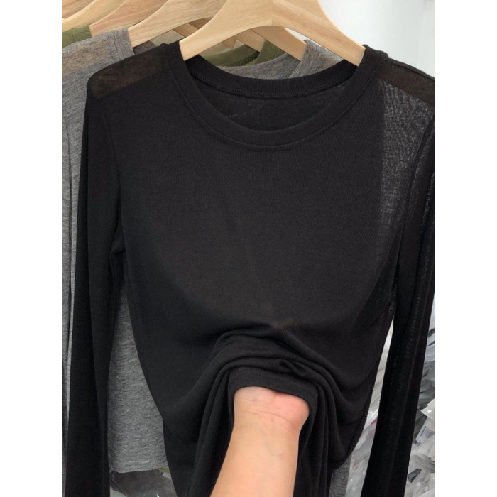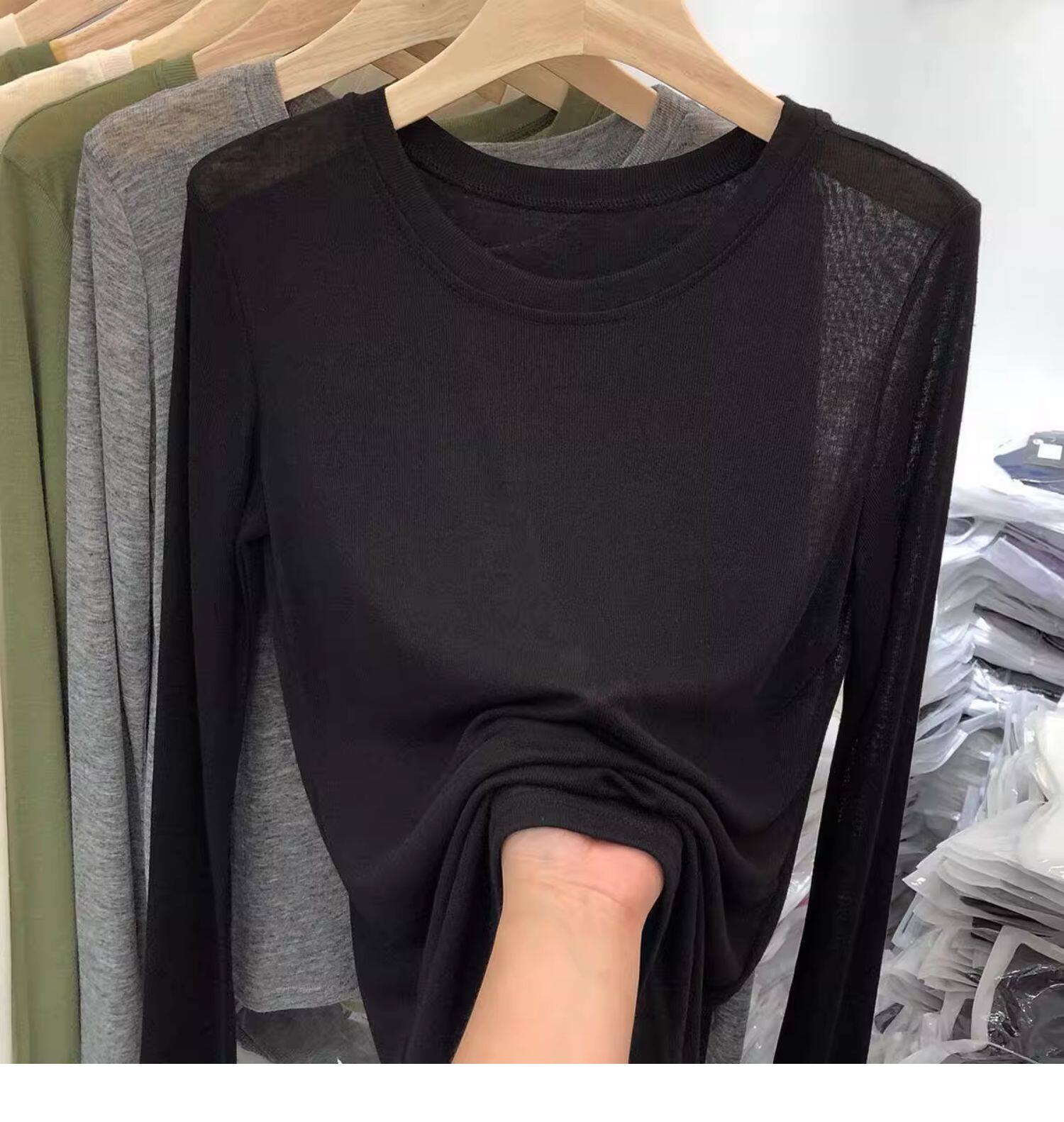 薄款正肩黑色長袖t恤女打底衫2025秋季面膜內搭純色防曬罩衫上衣