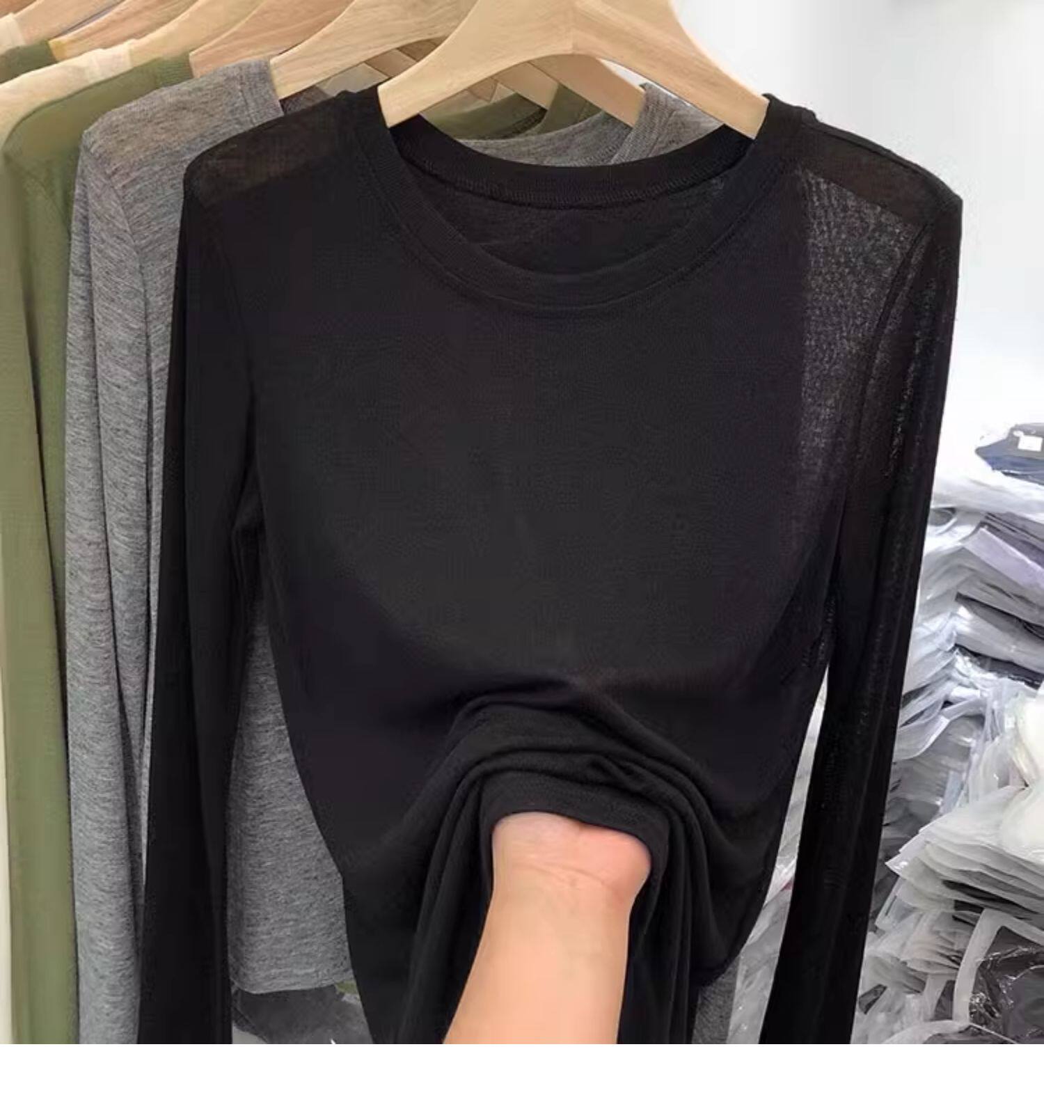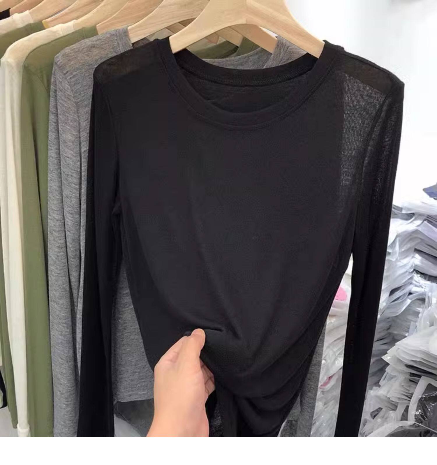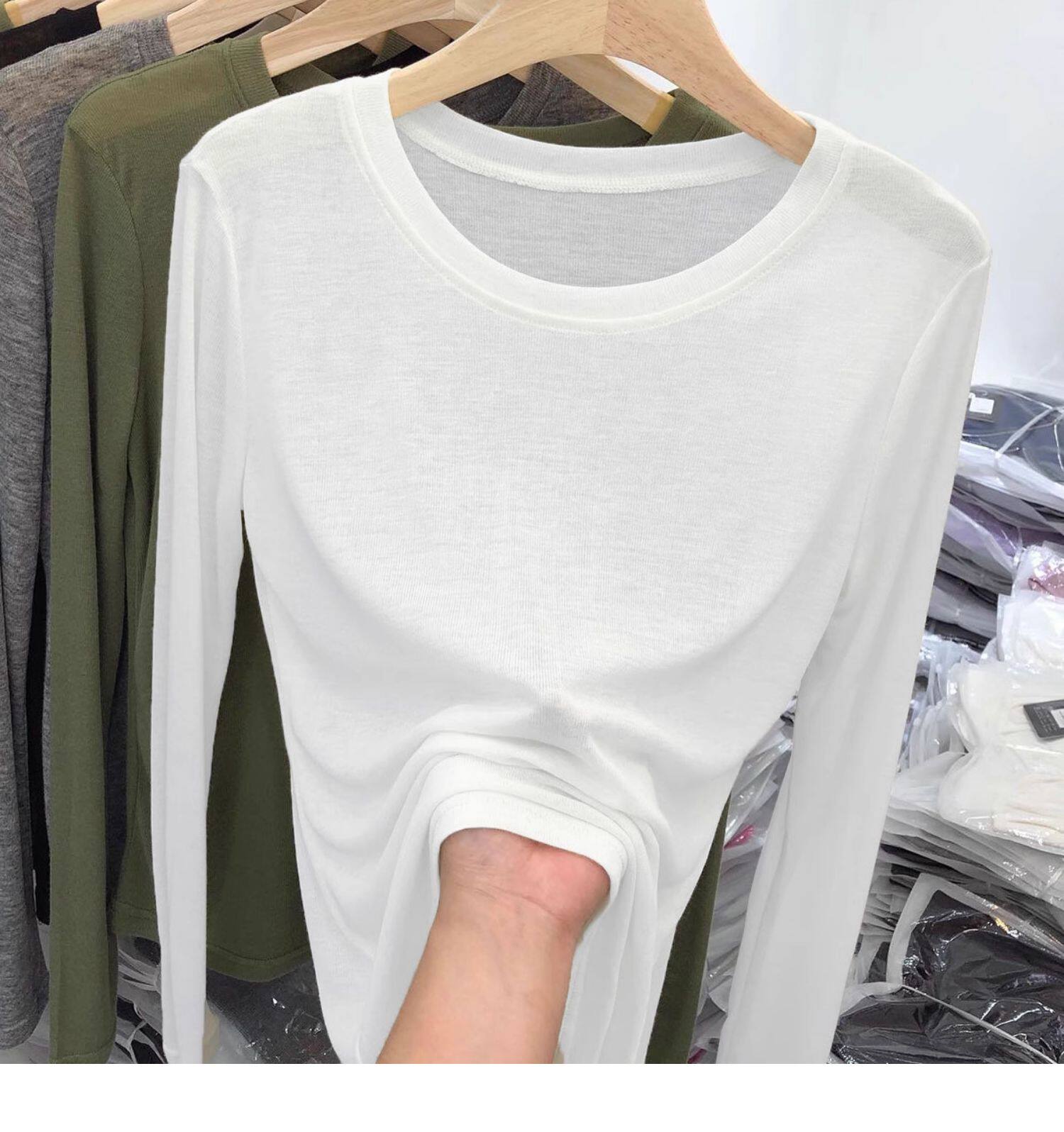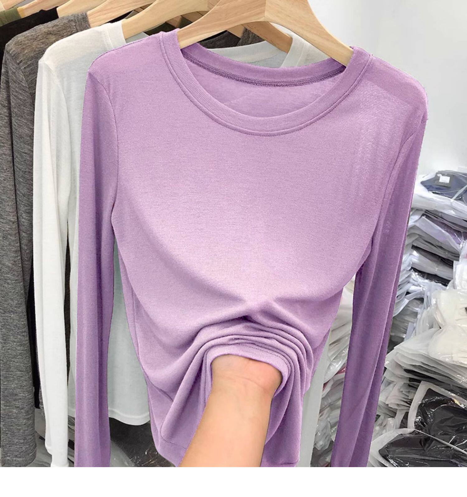 薄款正肩黑色長袖t恤女打底衫2025秋季面膜內搭純色防曬罩衫上衣