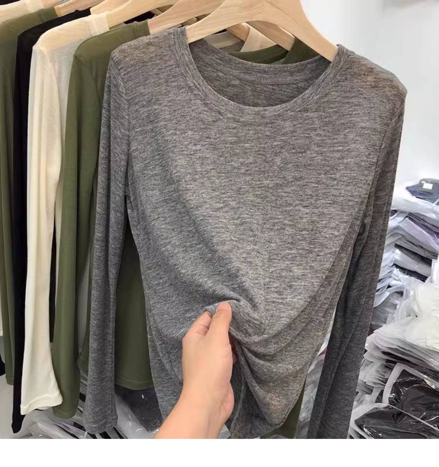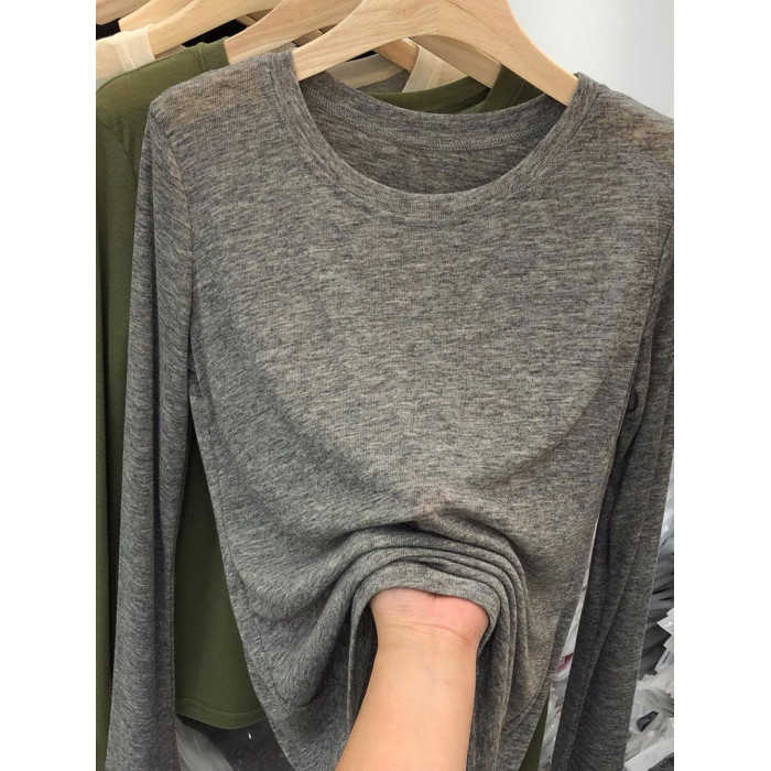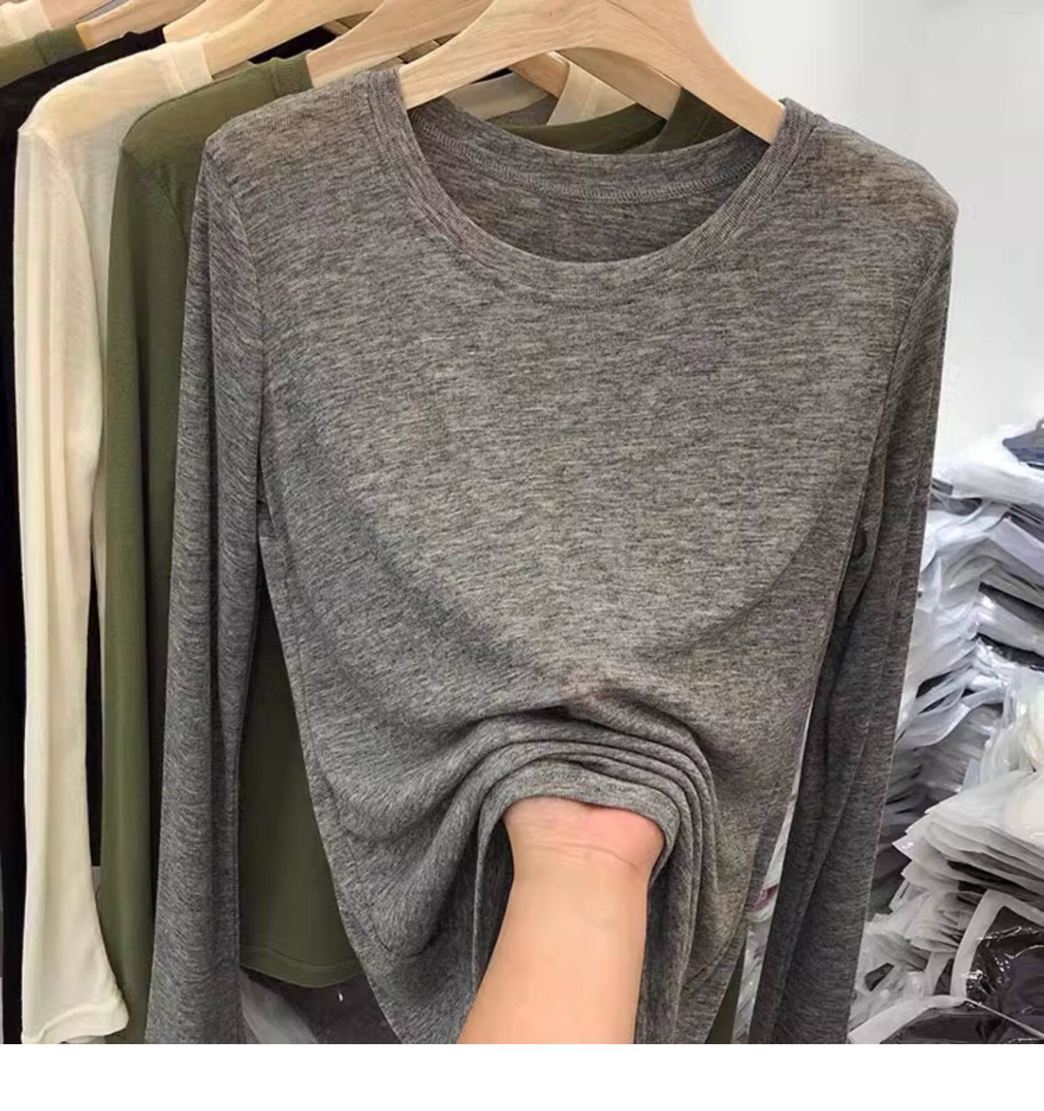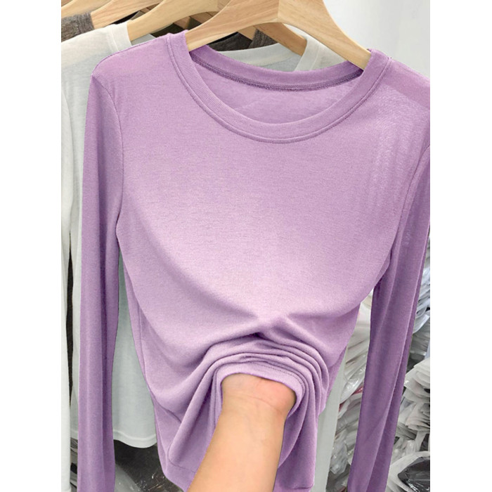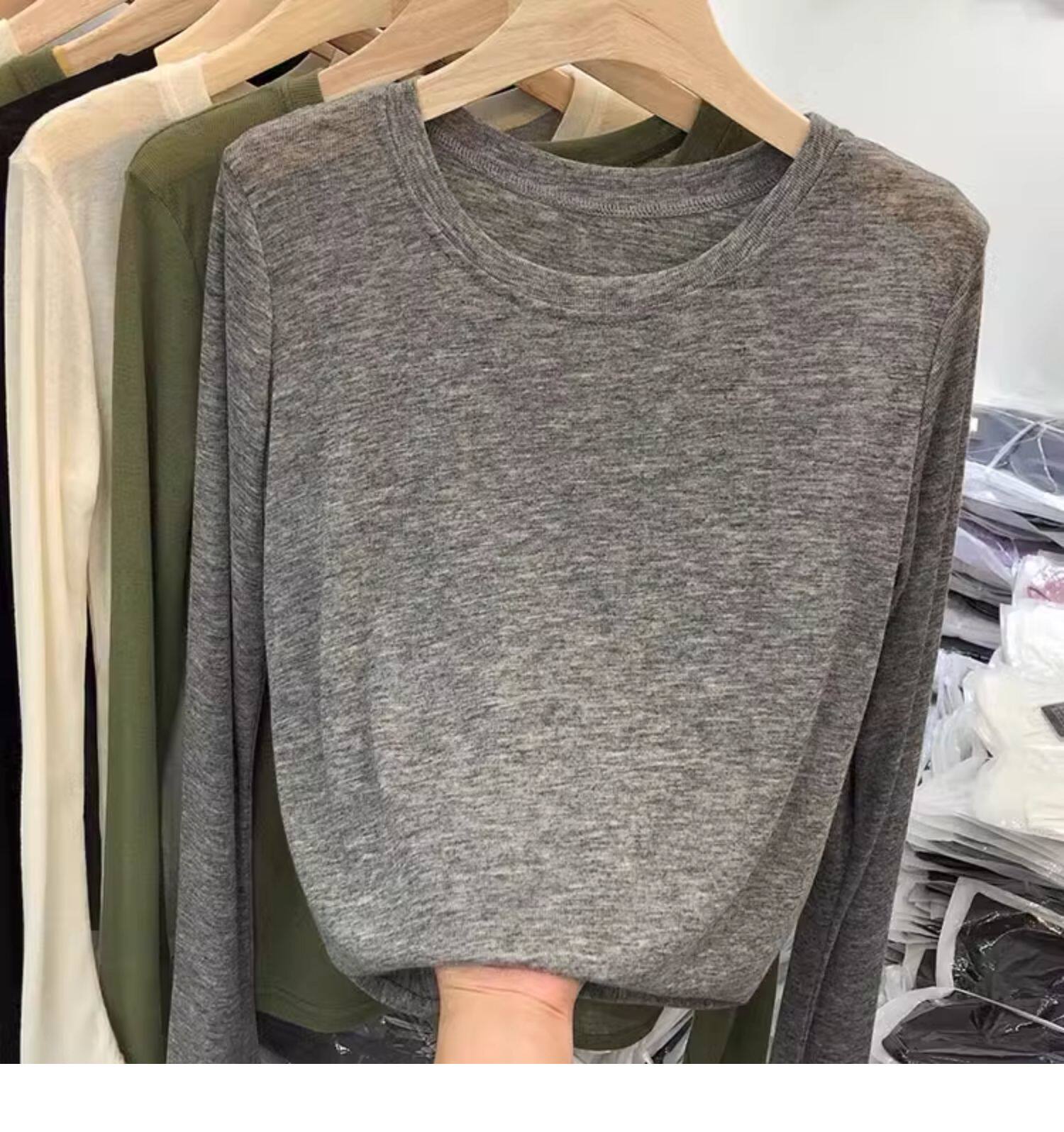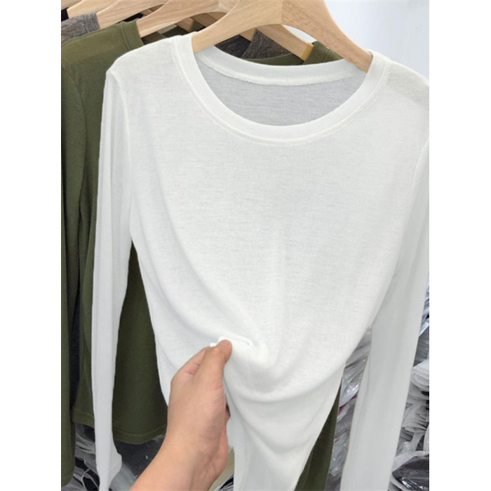 薄款正肩黑色長袖t恤女打底衫2025秋季面膜內搭純色防曬罩衫上衣