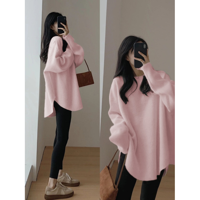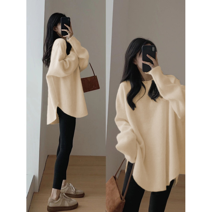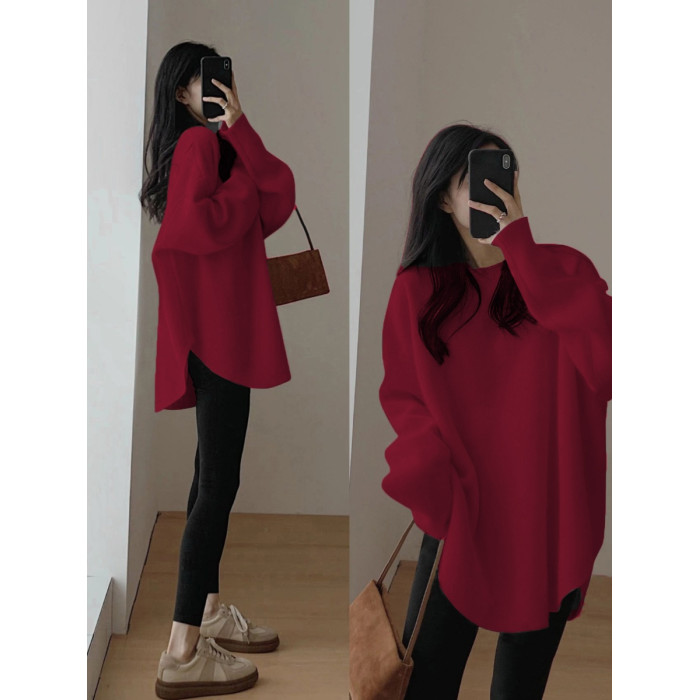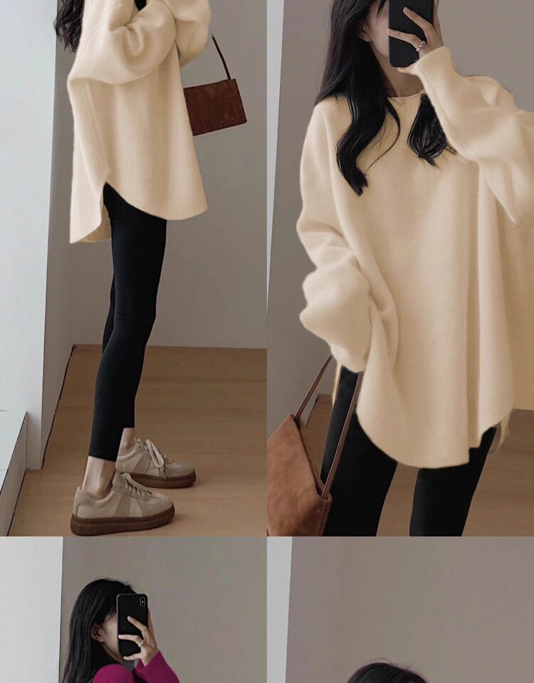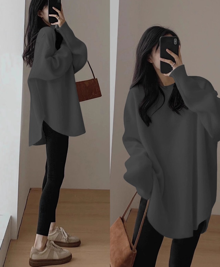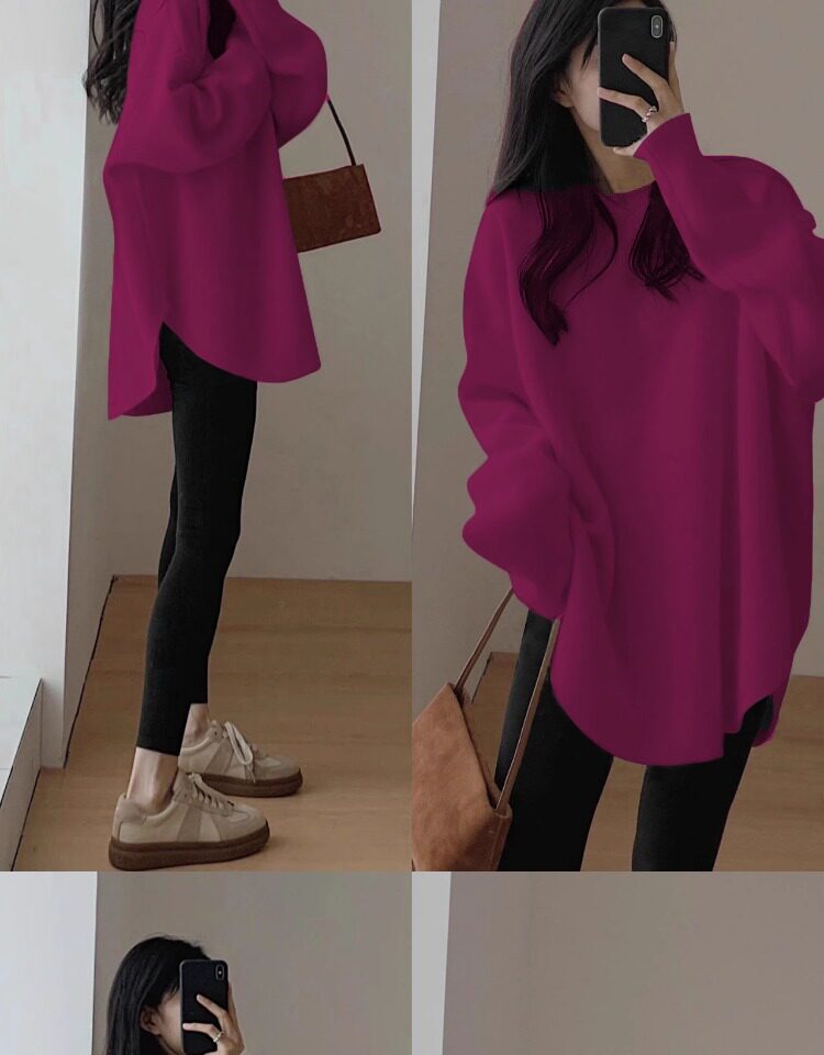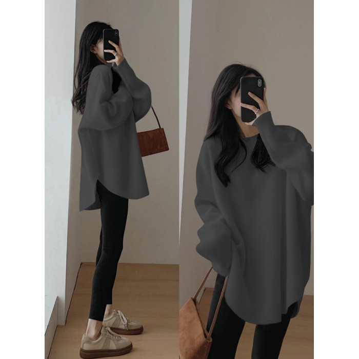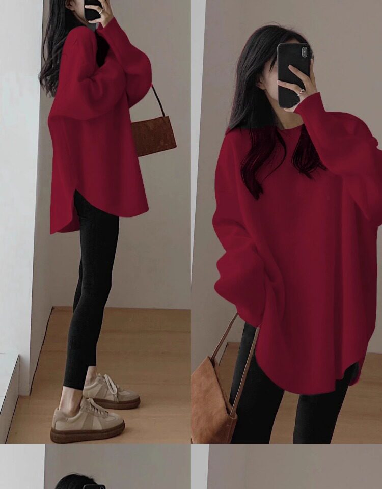 德絨加厚磨毛長袖打底衫女春秋冬季內搭中長款包臀遮屁股T恤上衣