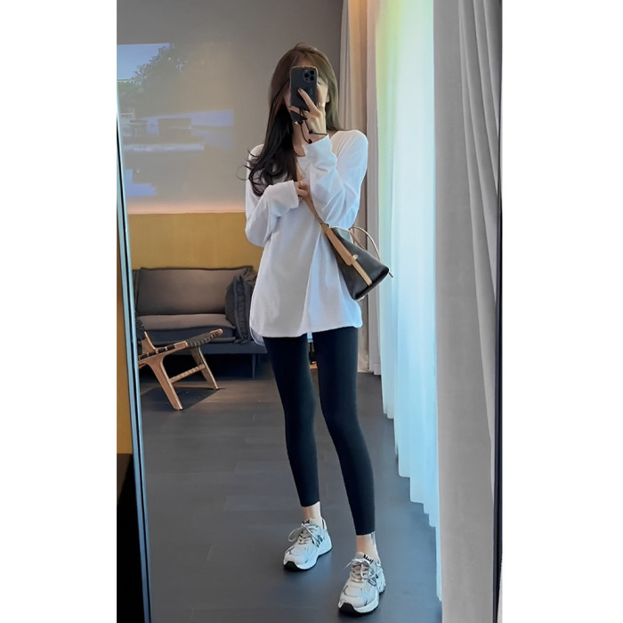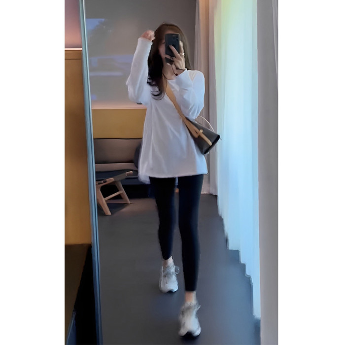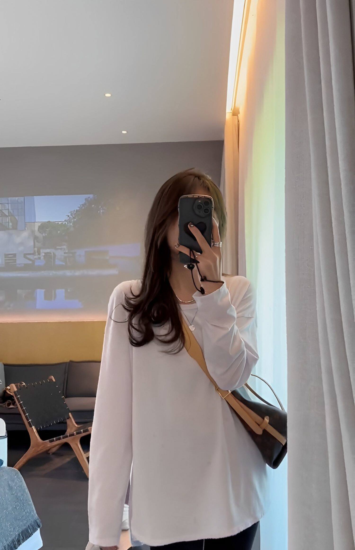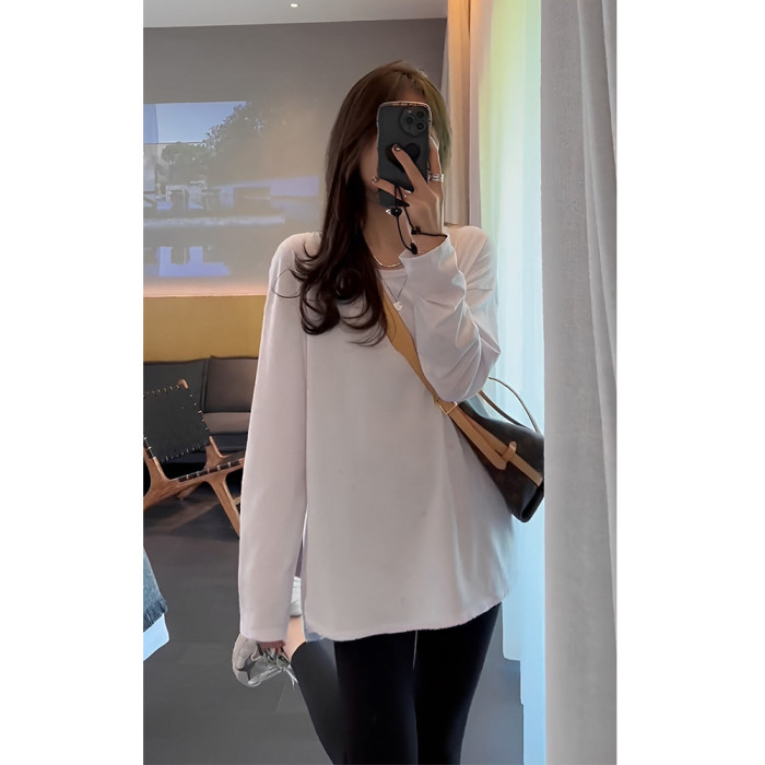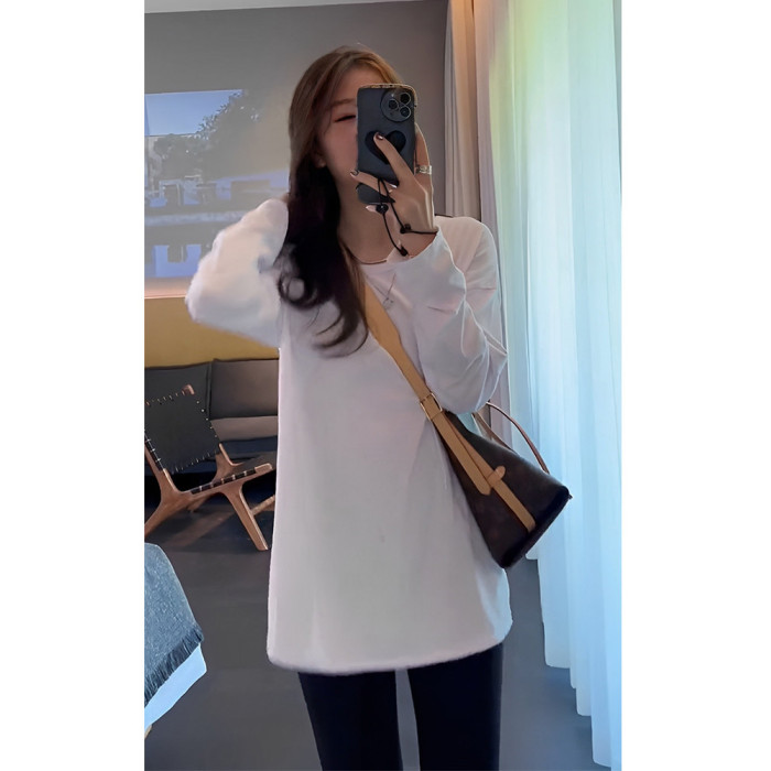 白色中長款打底衫女內搭德絨2025年春秋冬季上衣寬松純棉長袖t恤