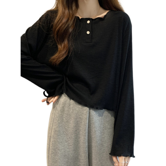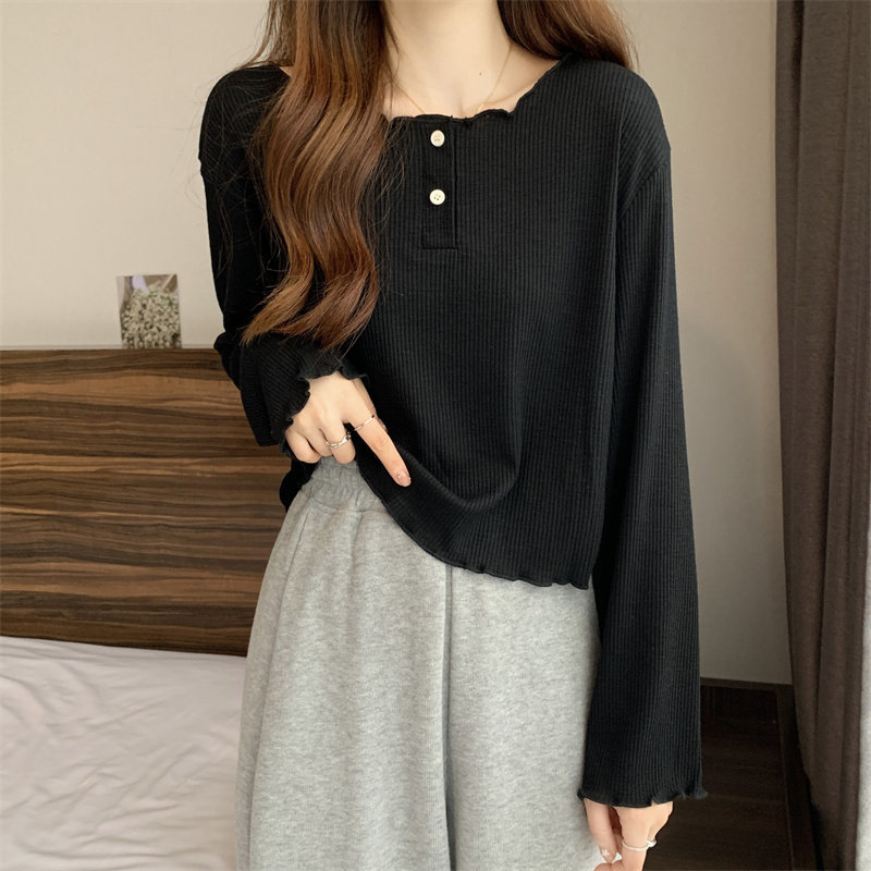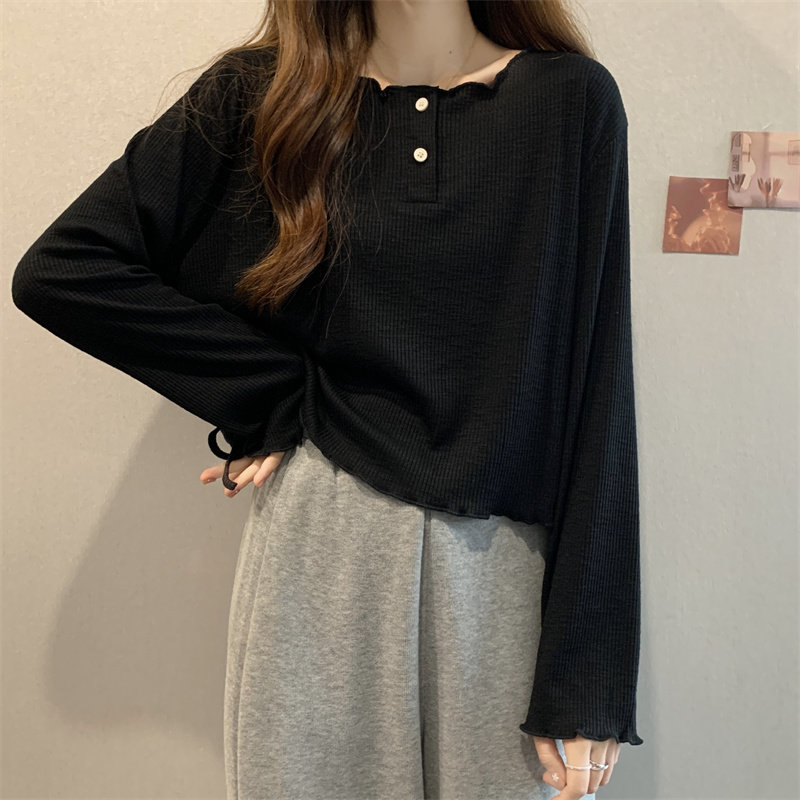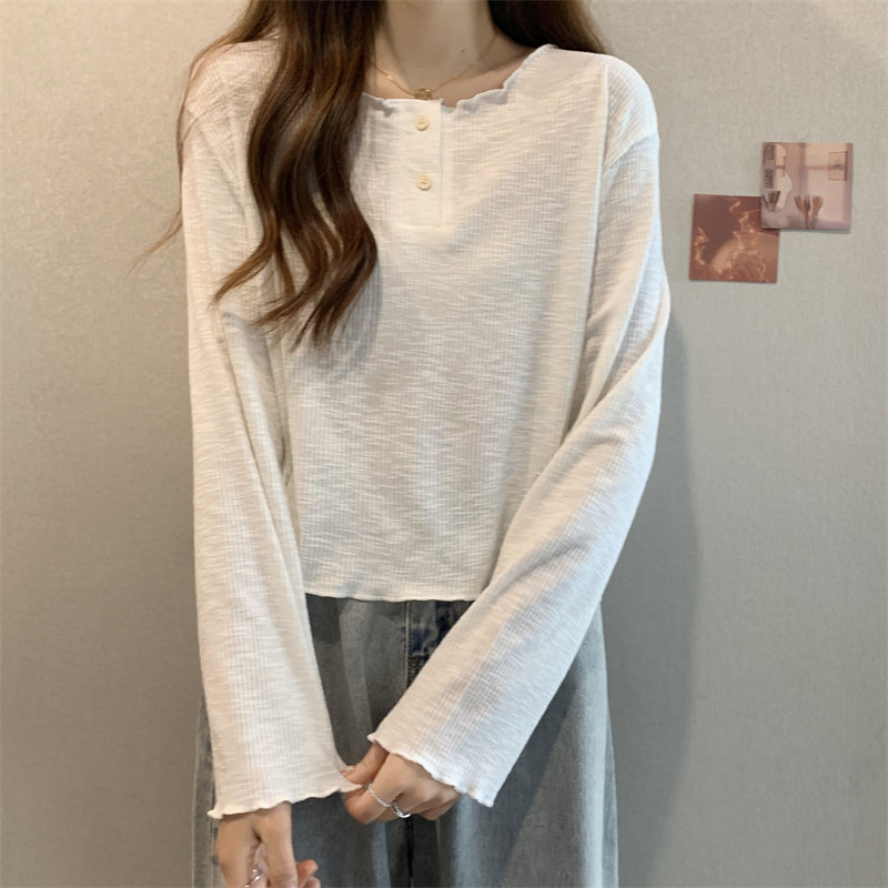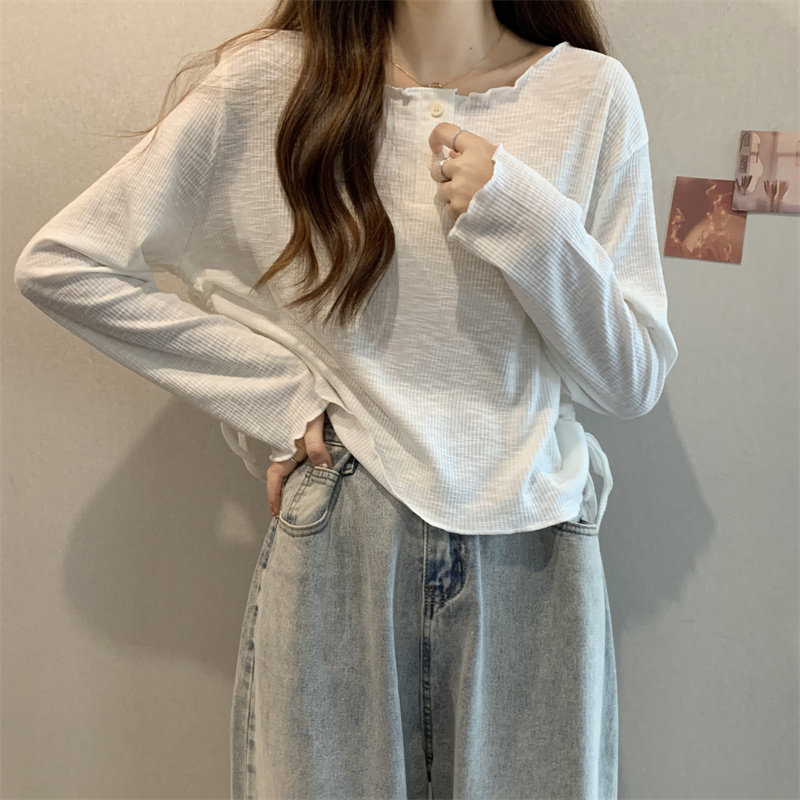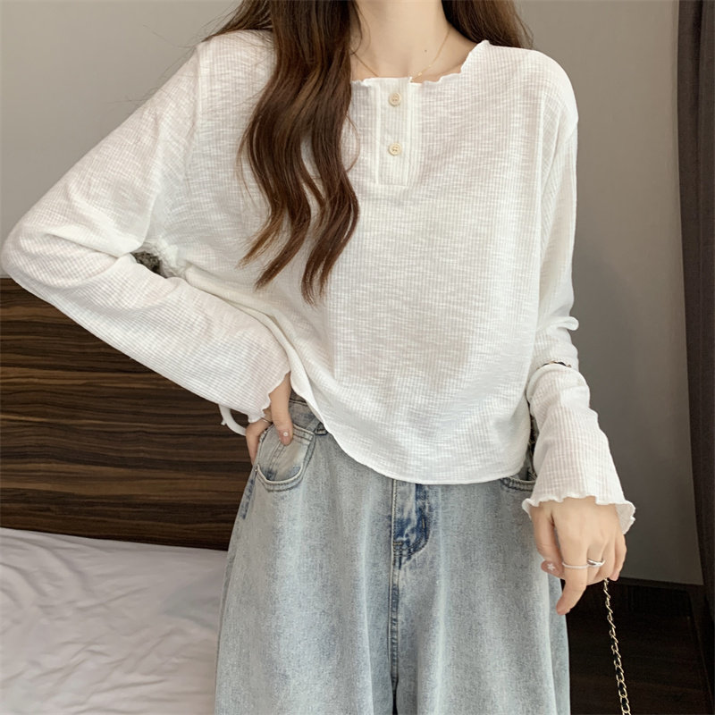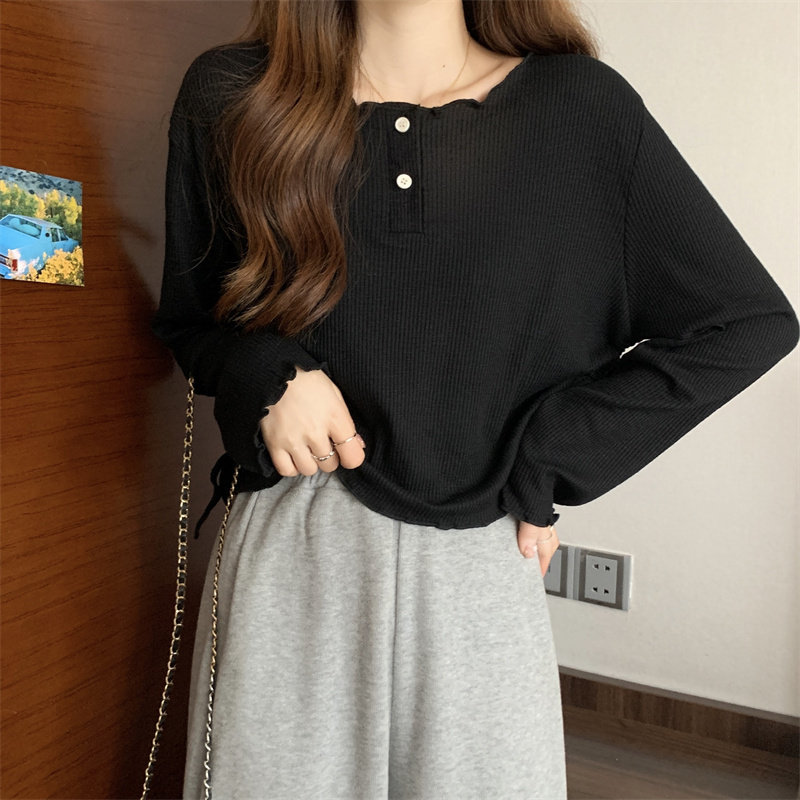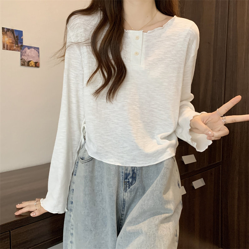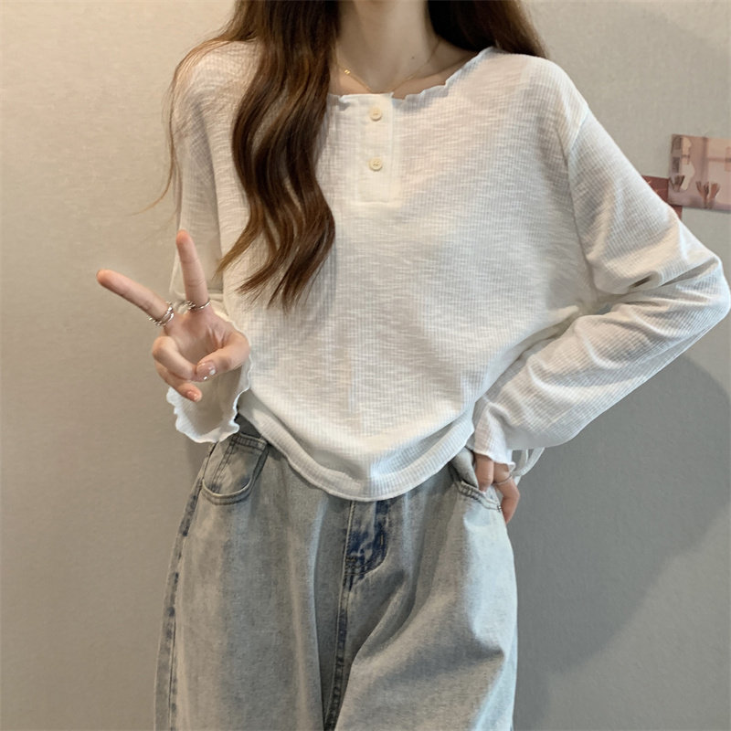 韓版圓領不規則系帶長袖T恤女2024新款早秋大碼胖mm小衆別致上衣
