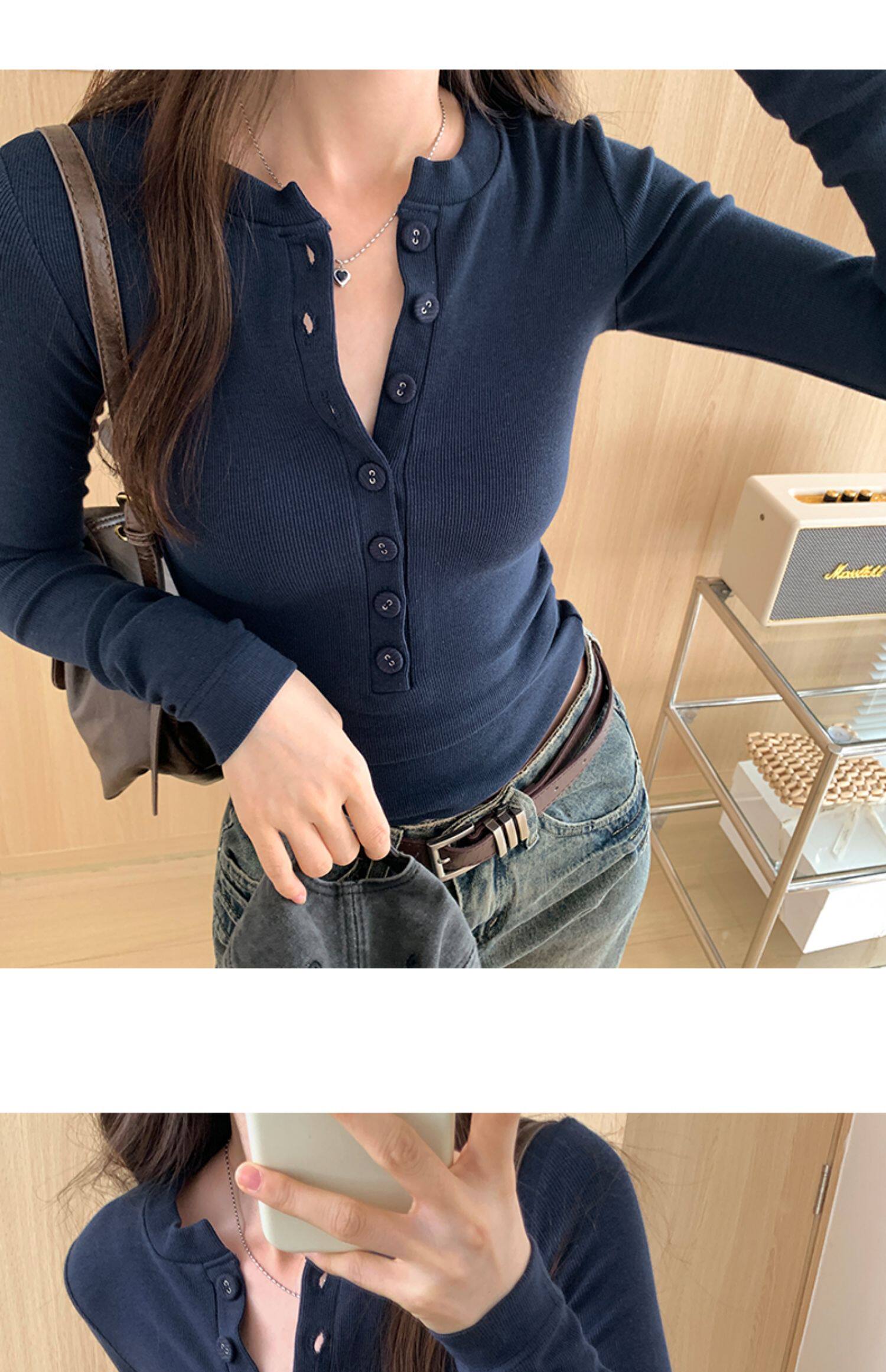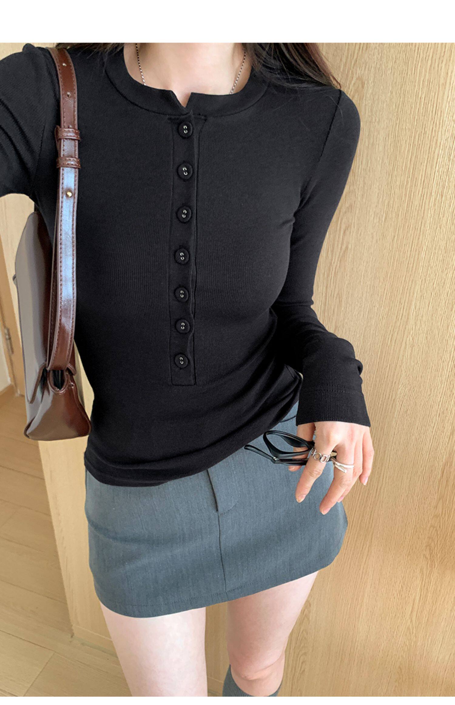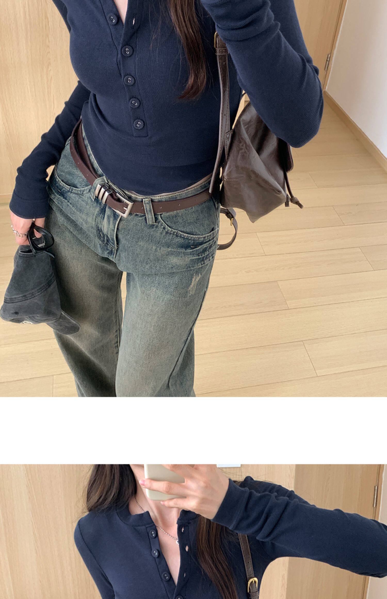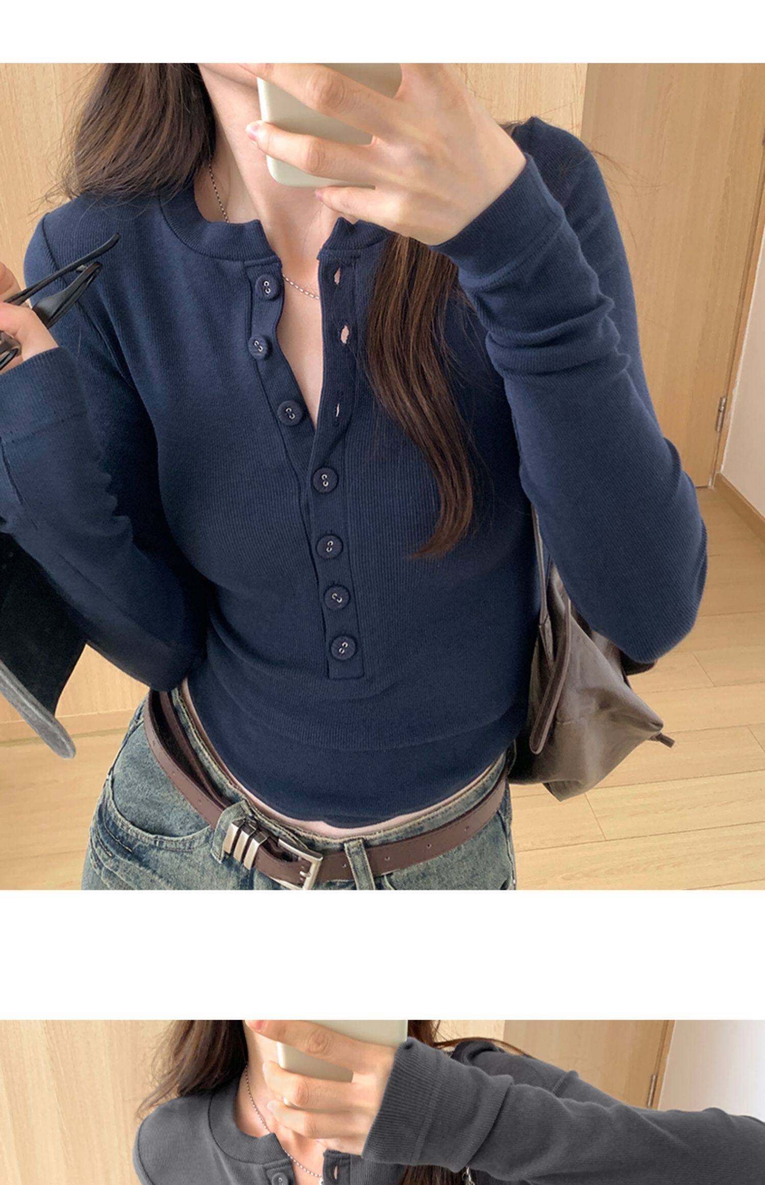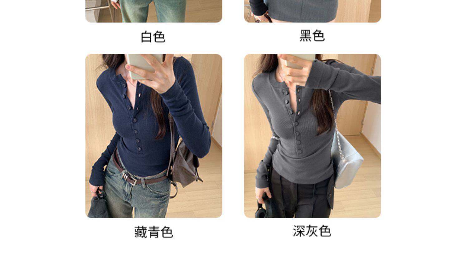 亨利領藏藍色加絨長袖內搭打底衫女秋冬修身緊身chic好看穿搭上衣
