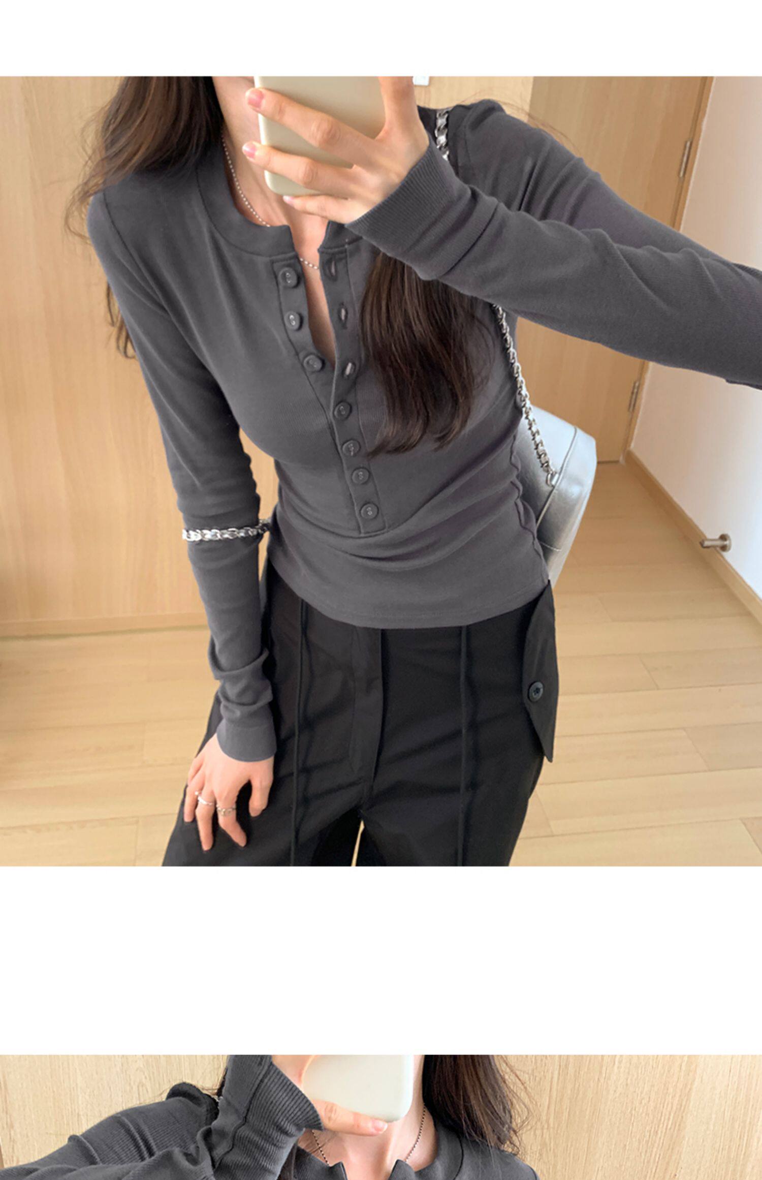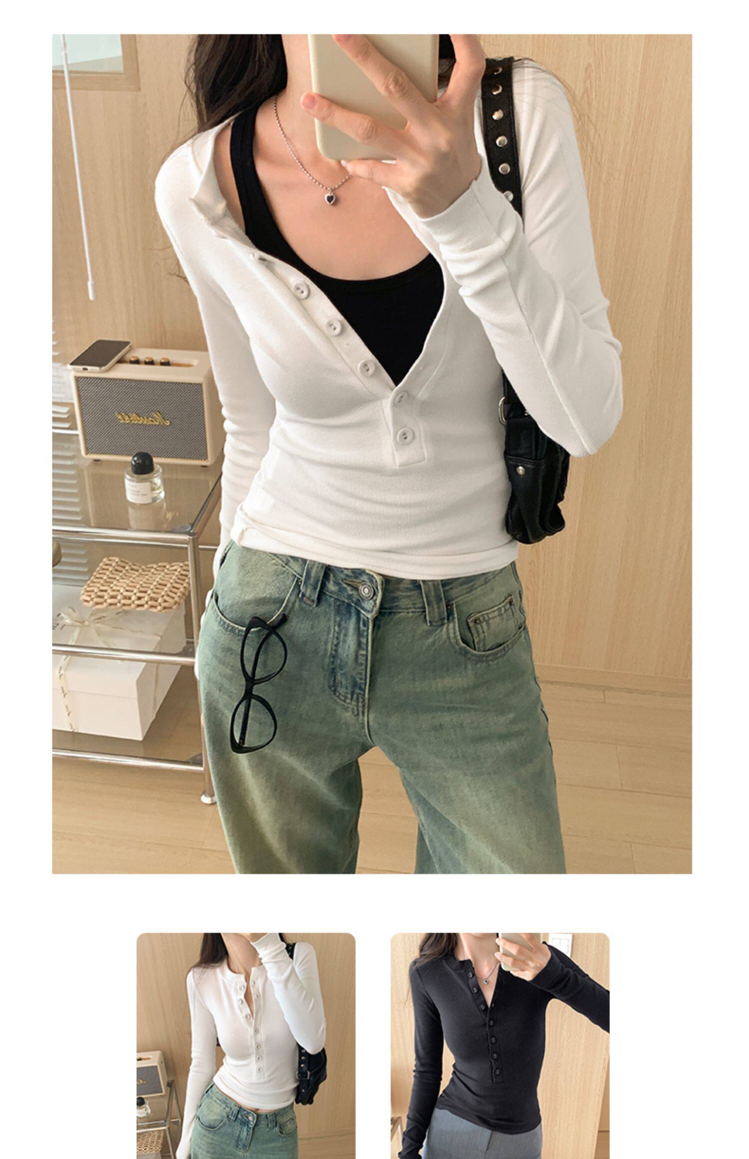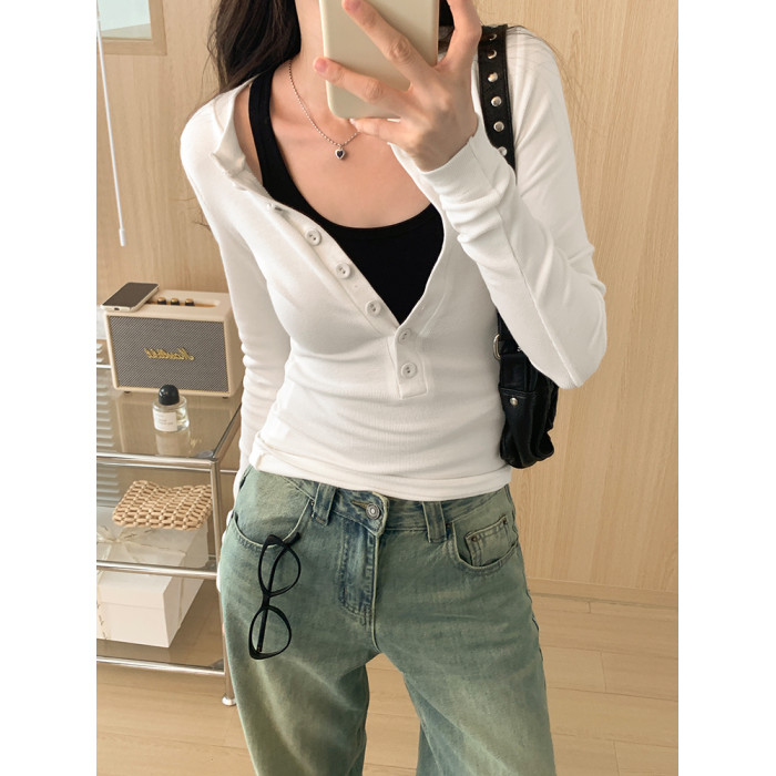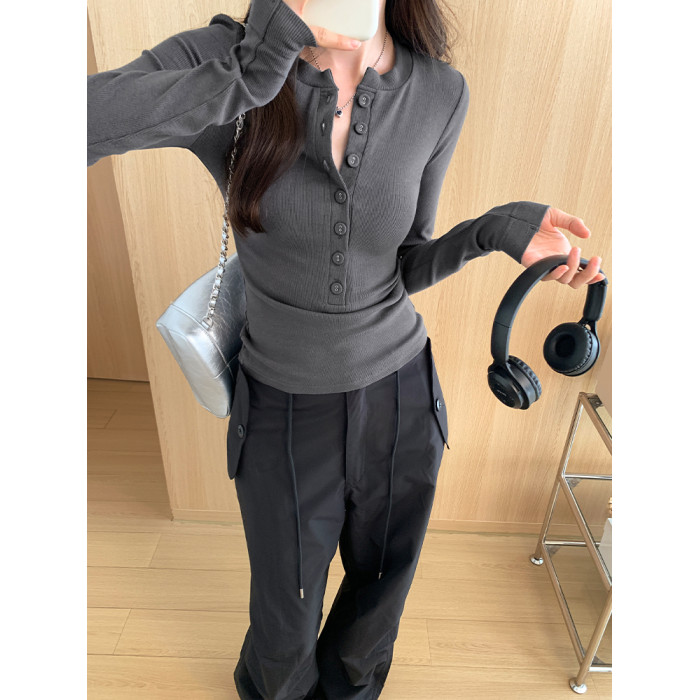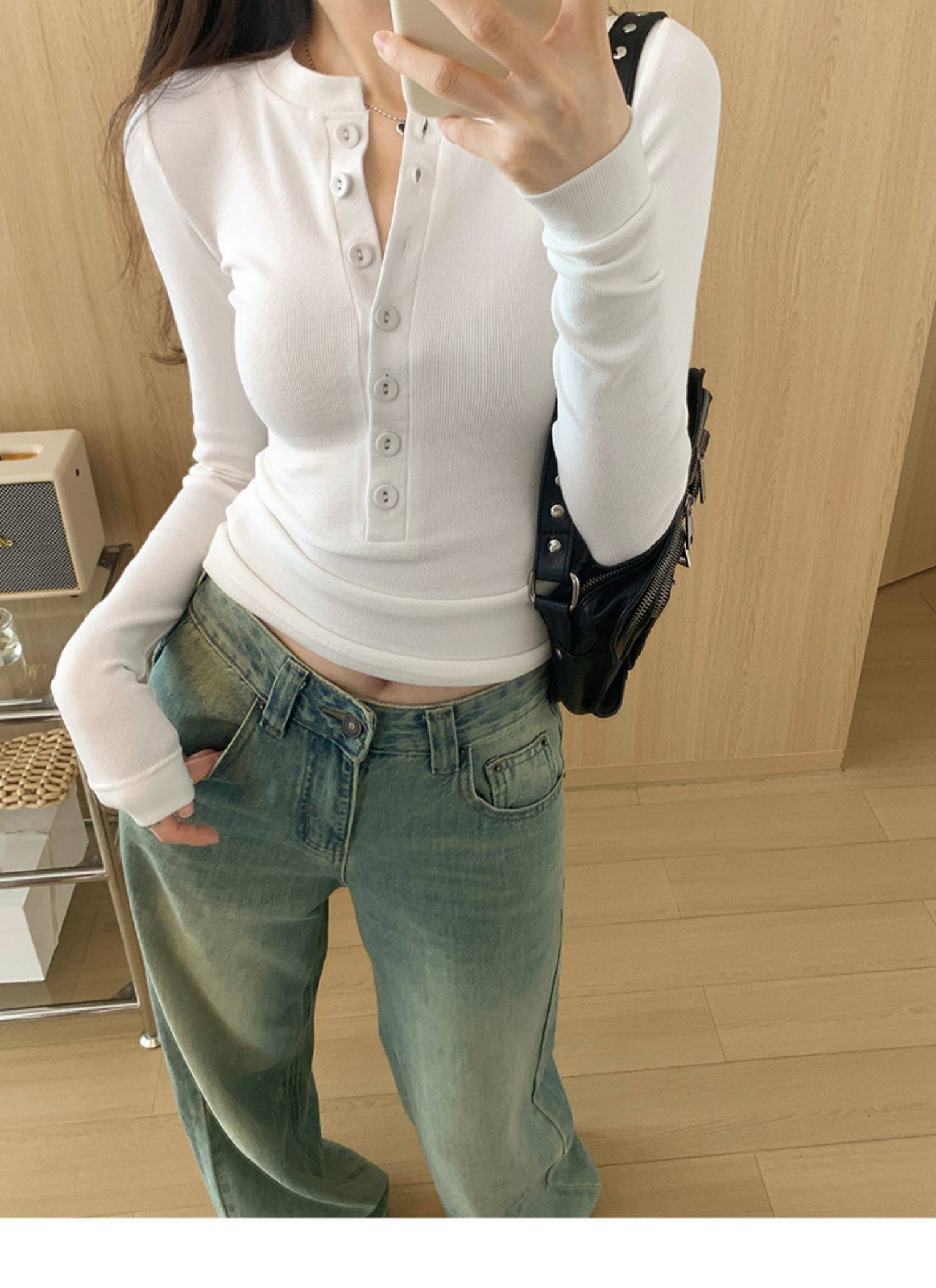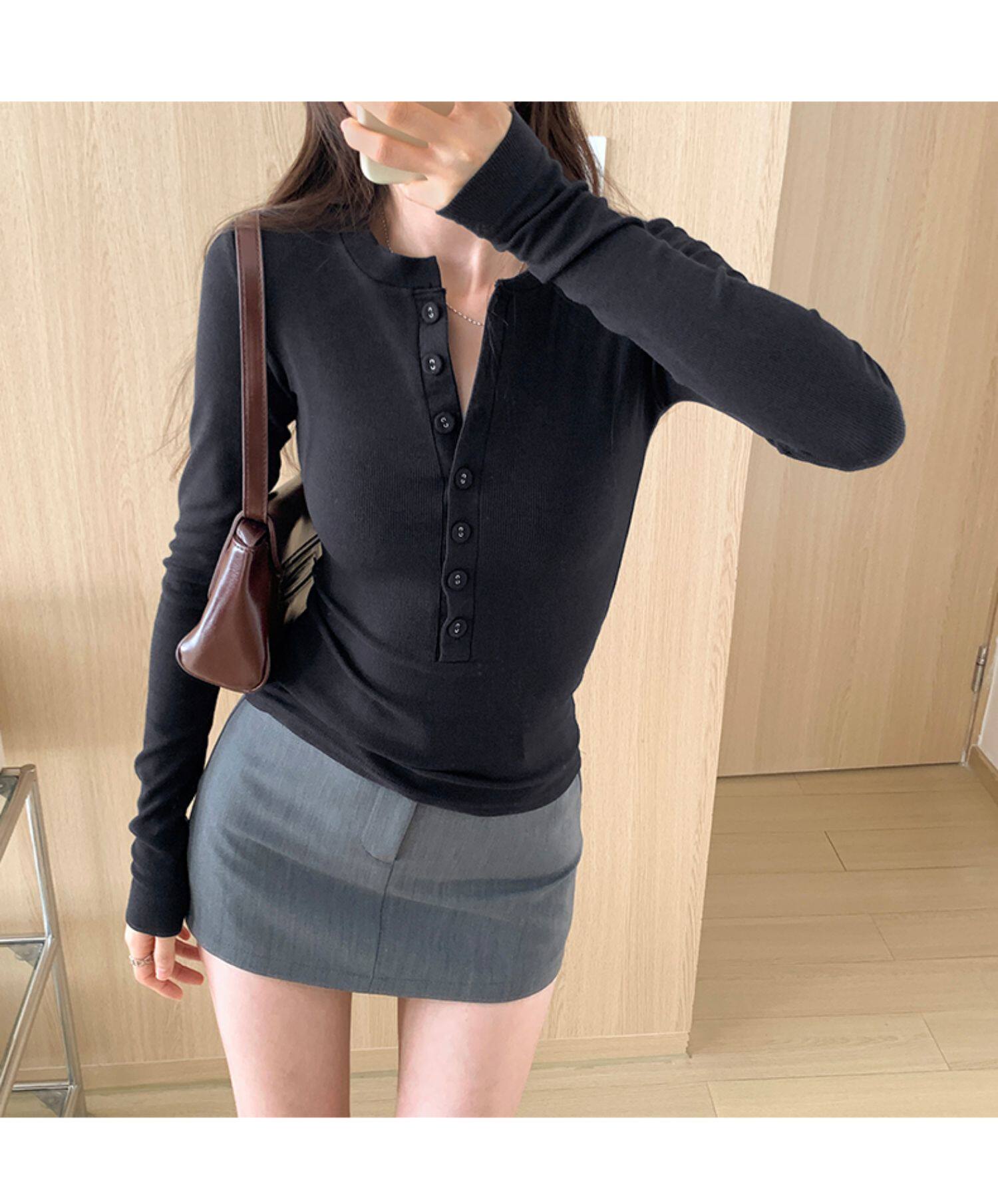 亨利領藏藍色加絨長袖內搭打底衫女秋冬修身緊身chic好看穿搭上衣