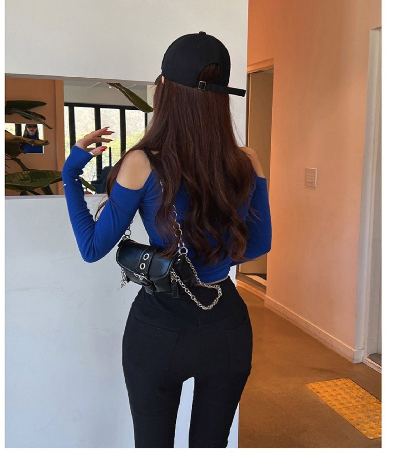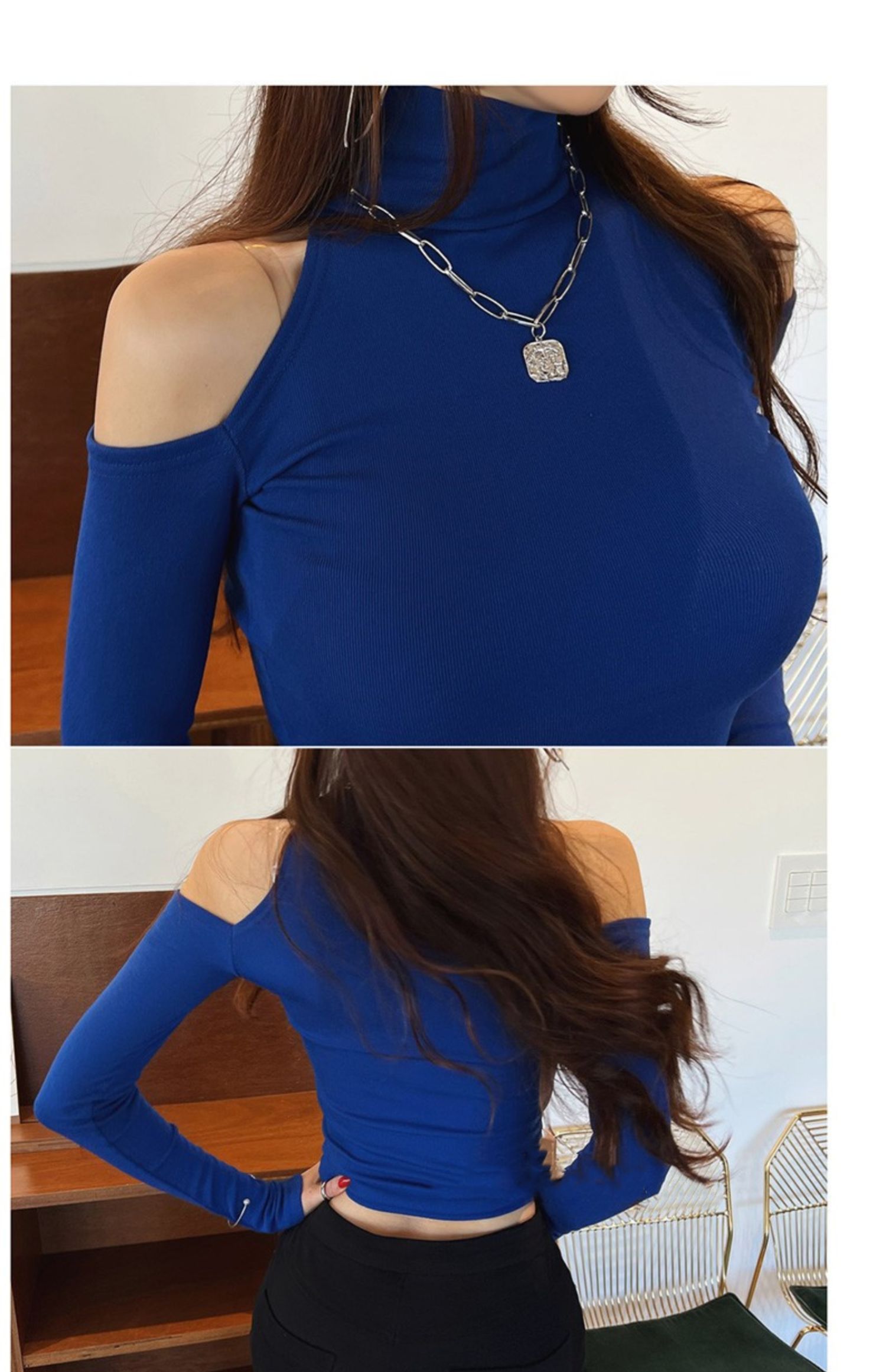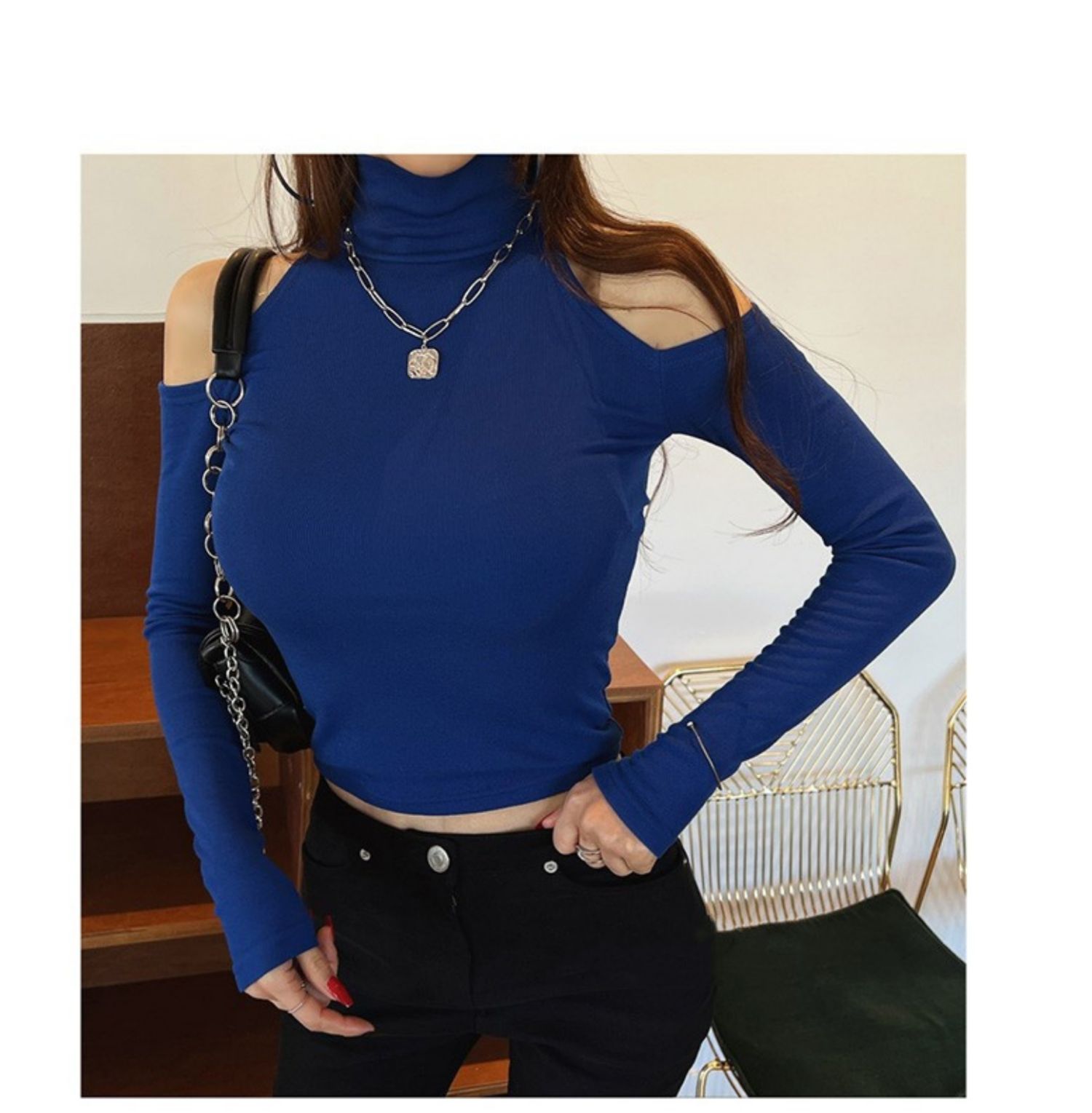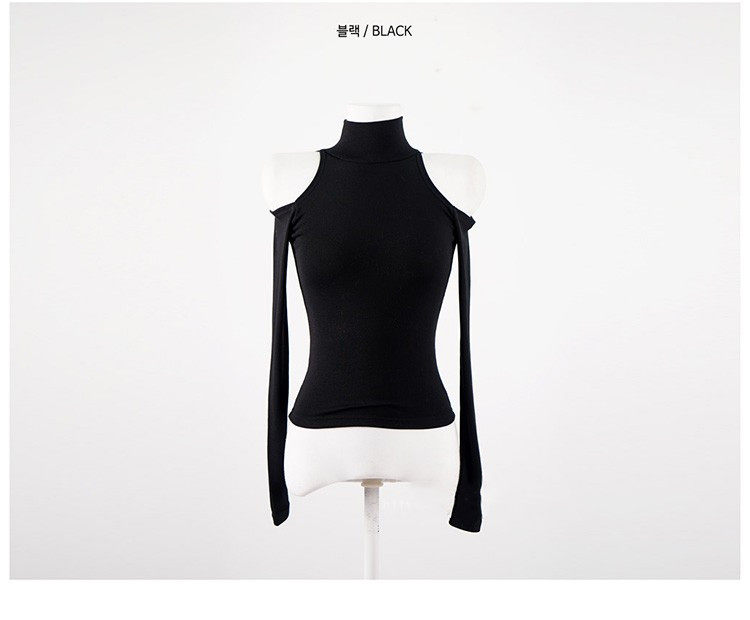 辣妹高領露肩長袖T恤女秋設計感小衆內搭打底衫短款性感緊身上衣