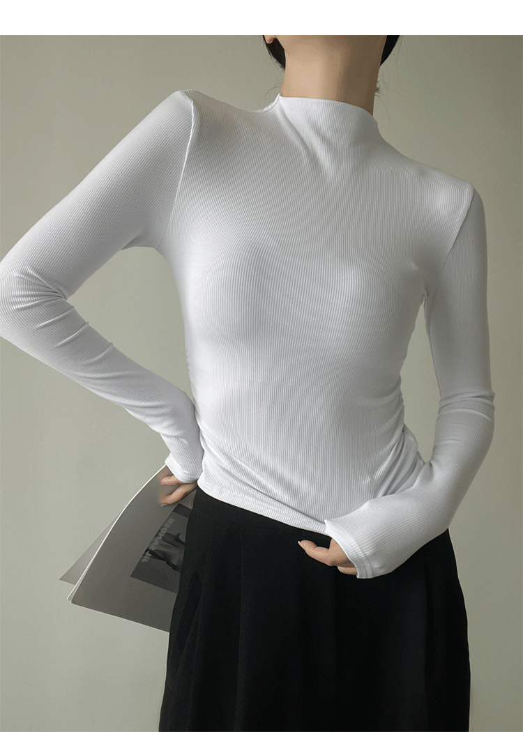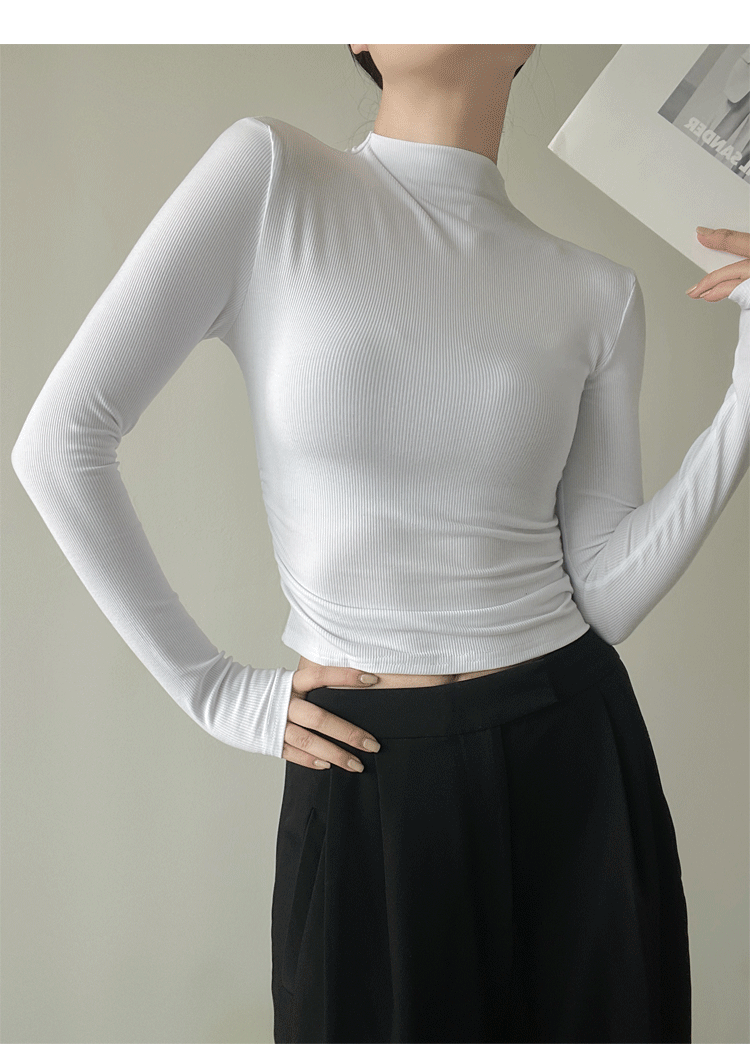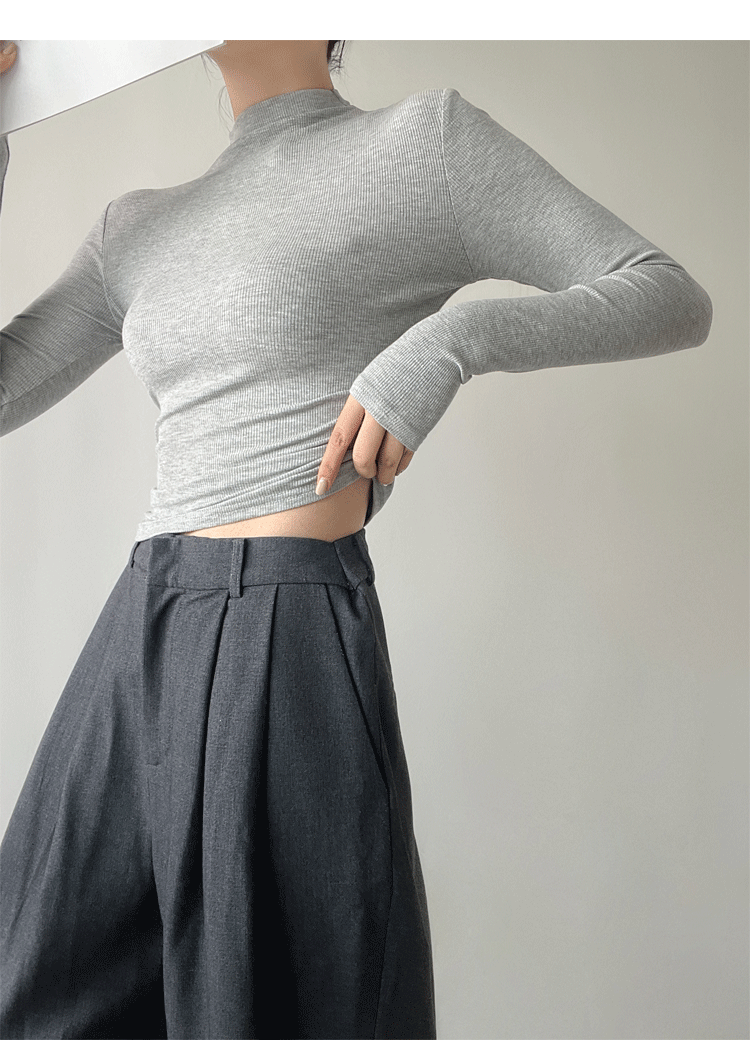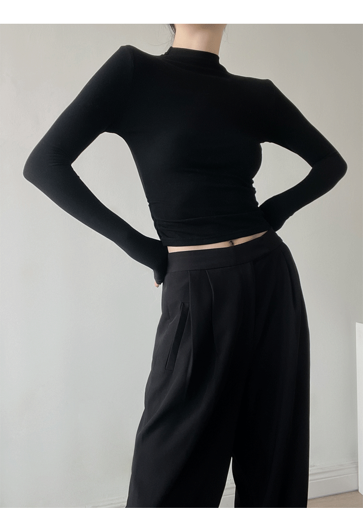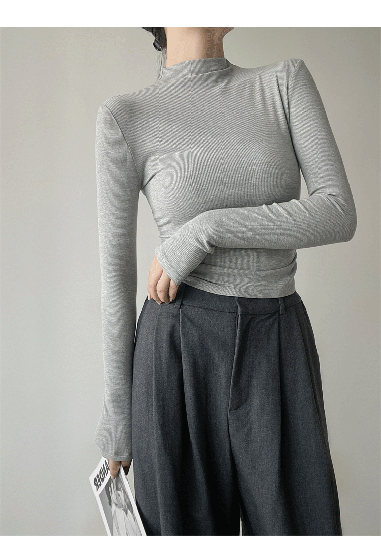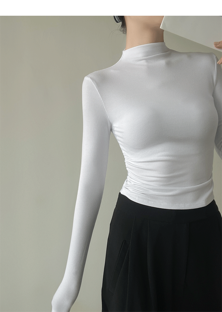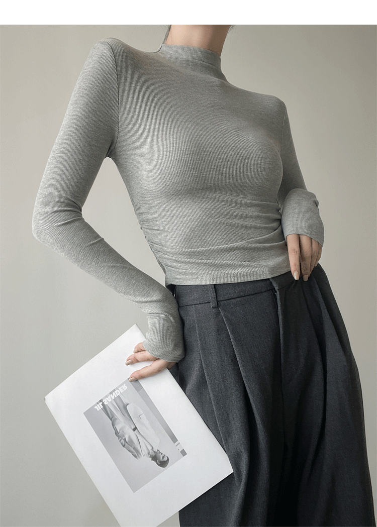 港味chic半高領打底衫冬長袖T恤女春秋修身短款褶皺獨特別致上衣
